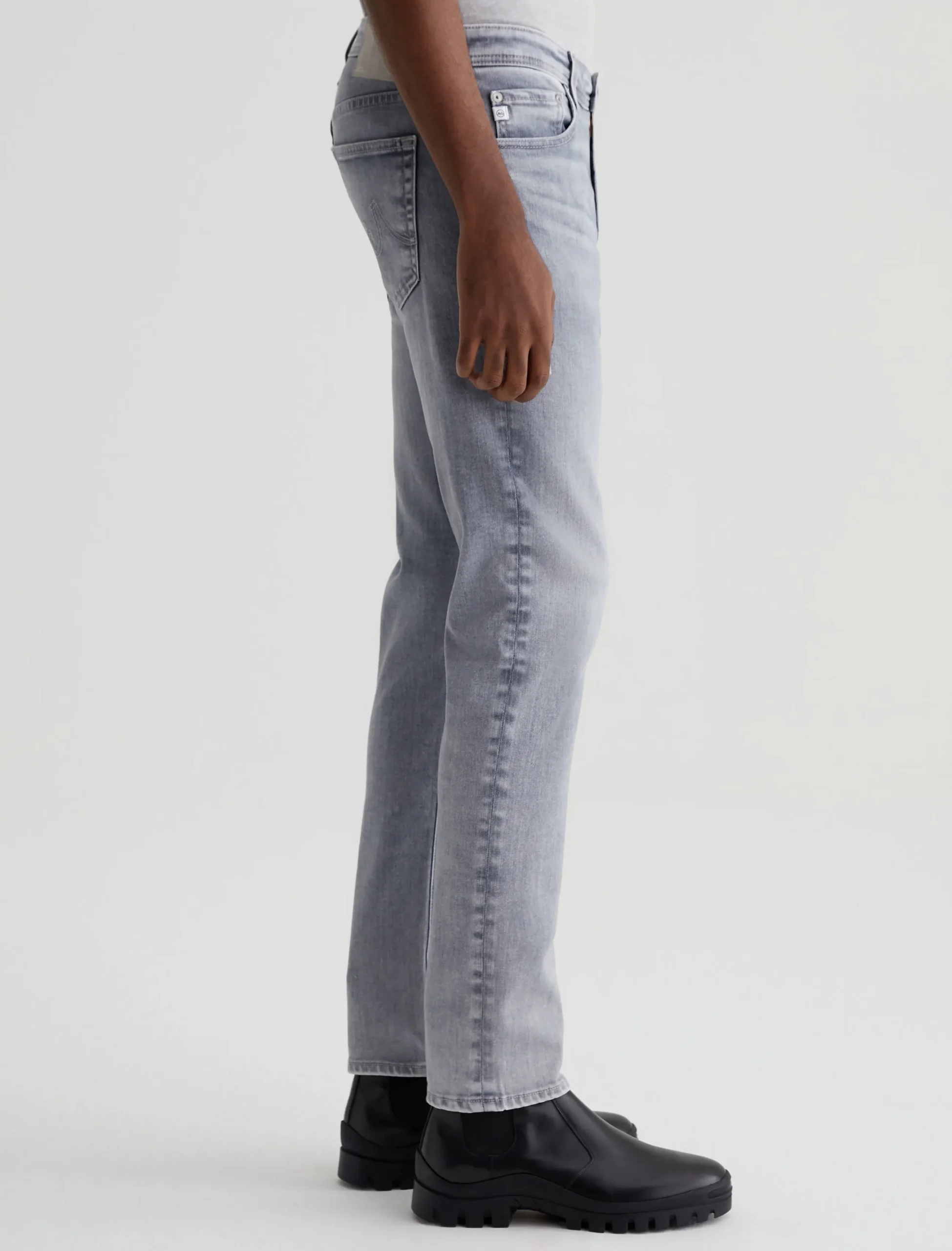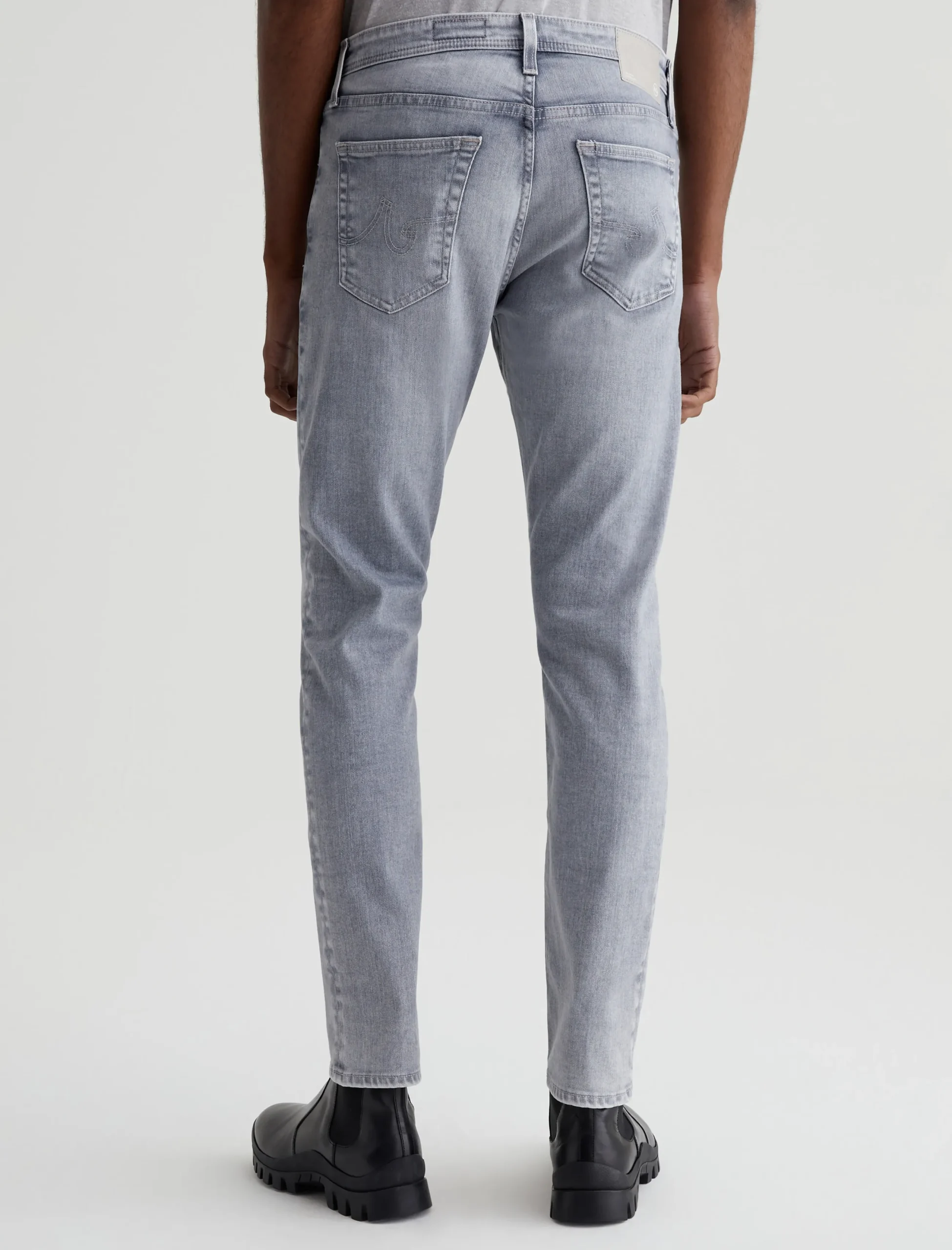 Our Tellis modern slim men’s jeans are made using AG’s eco-friendly AG Vapor Wash™ technology. Defined by a fitted upper block and tapered leg opening, these five-pocket jeans are designed in 10 oz. Ashen Stretch Denim with a faded grey shade. Our AG Vapor Wash™ process significantly reduces the use of water, chemicals, and energy to lessen environmental impact. Finished with a vegan and 100% biodegradable cellulose patch at the back waistband.