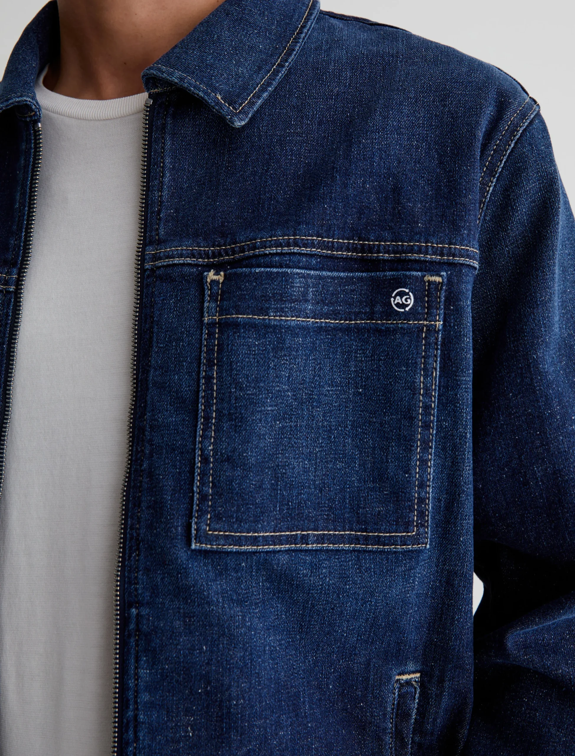 The Vann Jacket is a reimagined trucker in a relaxed fit with a dark wash, zip-up styling, and long, roomy sleeves. It’s detailed by square patch pockets at the chest and side welt pockets. Part of our Circular Denim initiative from The Jean of Tomorrow™ collection, Vann comes in 12.5 oz. Revival Denim made from recycled AG jeans. The fabric features a soft cotton blend with a bit of stretch for added comfort.