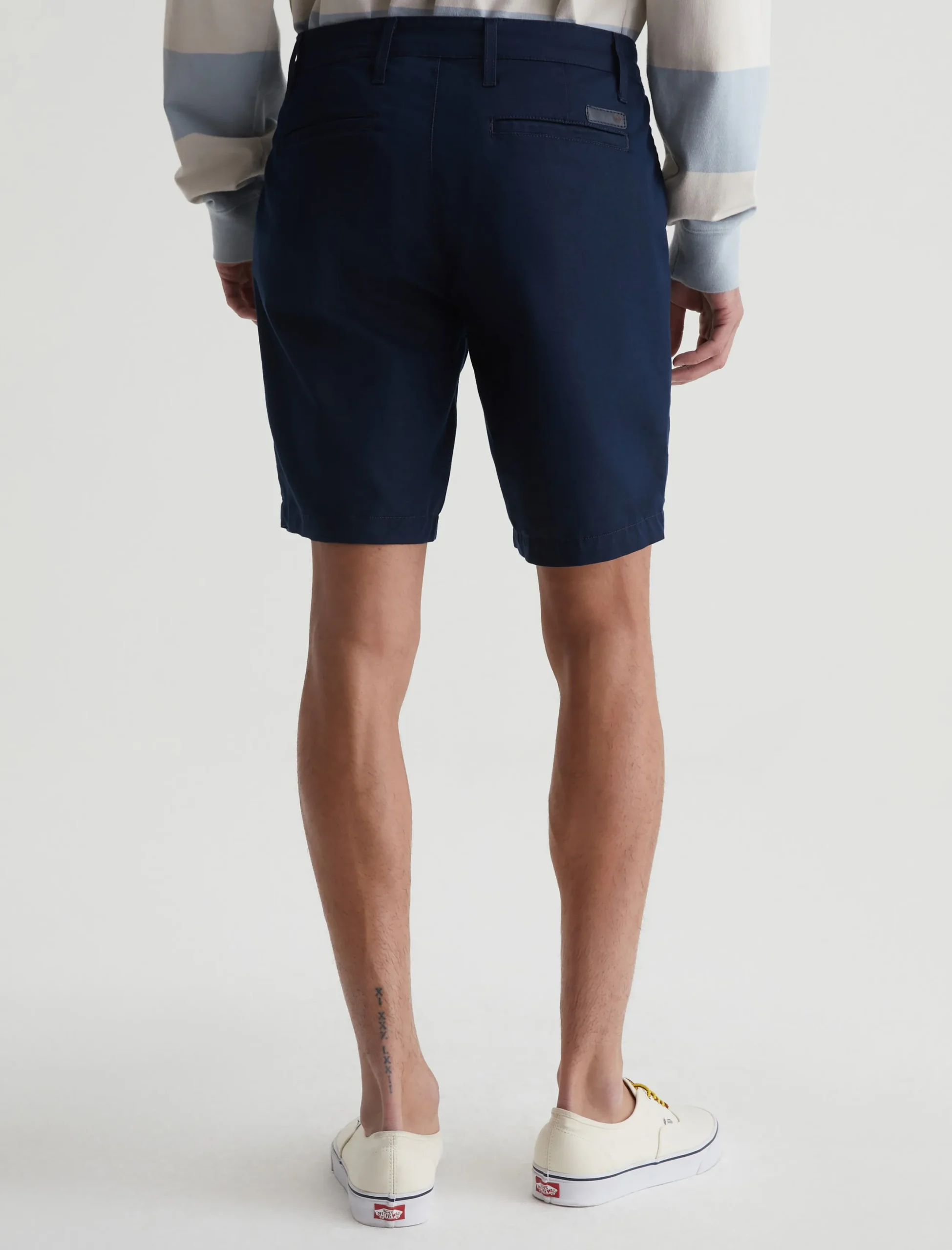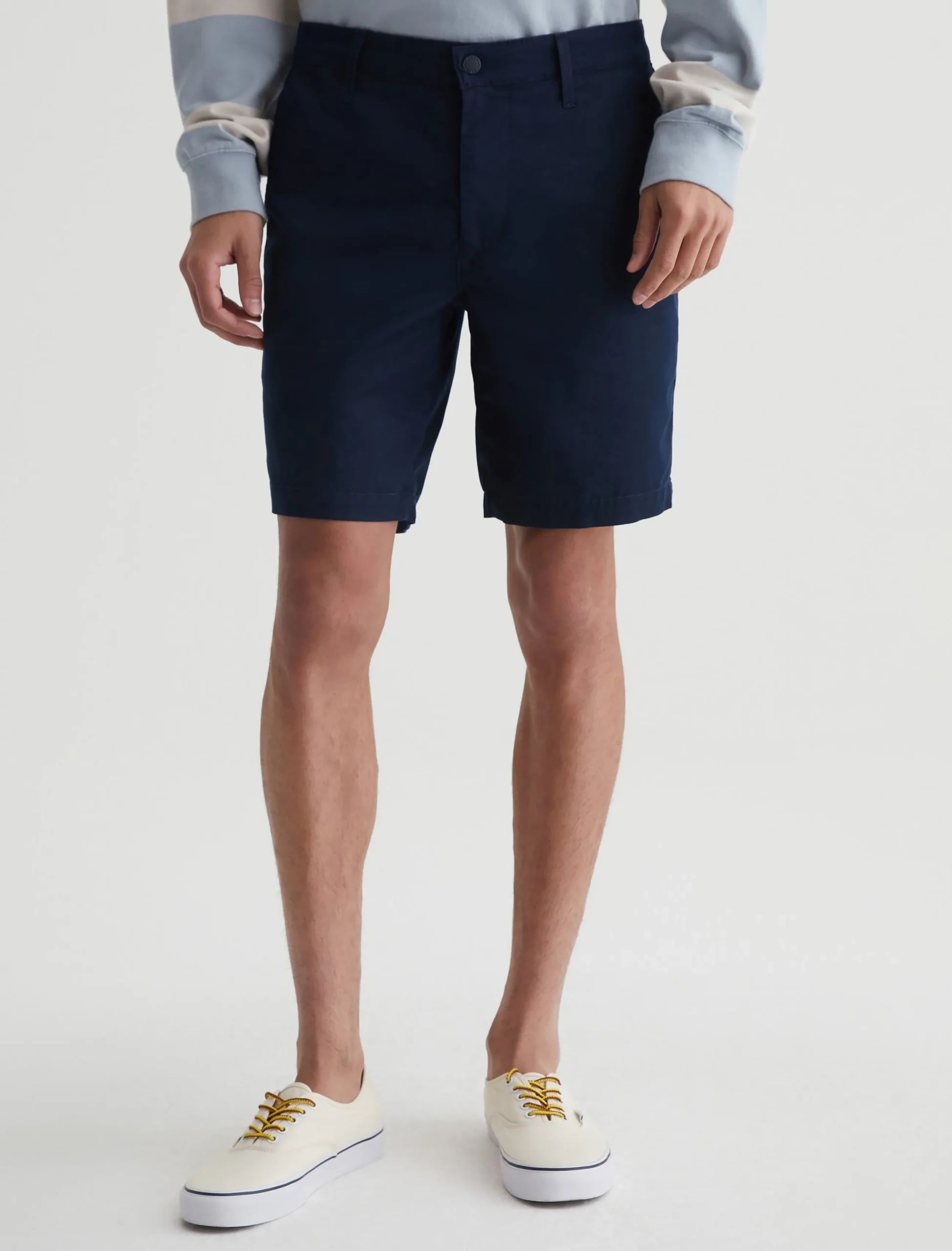 The Wanderer Performance Short moves with ease in 5.9 oz. Airluxe™ Commuter Performance Sateen featuring active stretch and a soft, refined texture. Done here in a dark blue shade, these shorts have a slim fit with a clean trouser look and a slightly tapered leg opening.