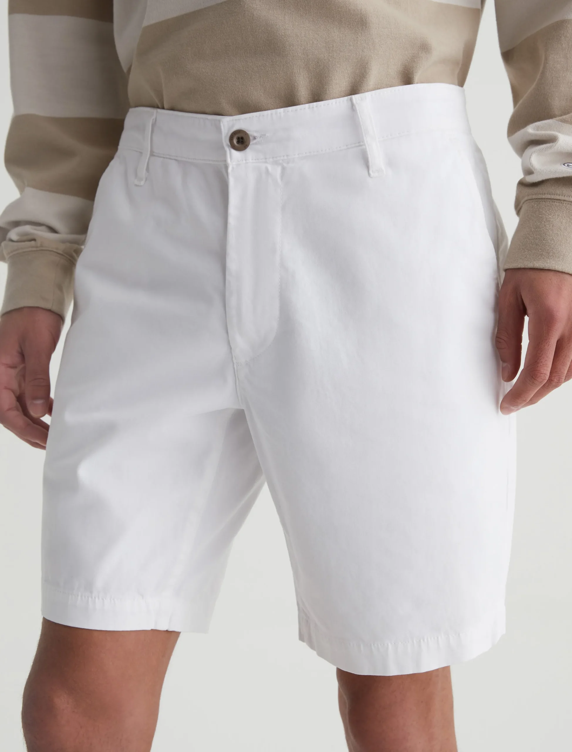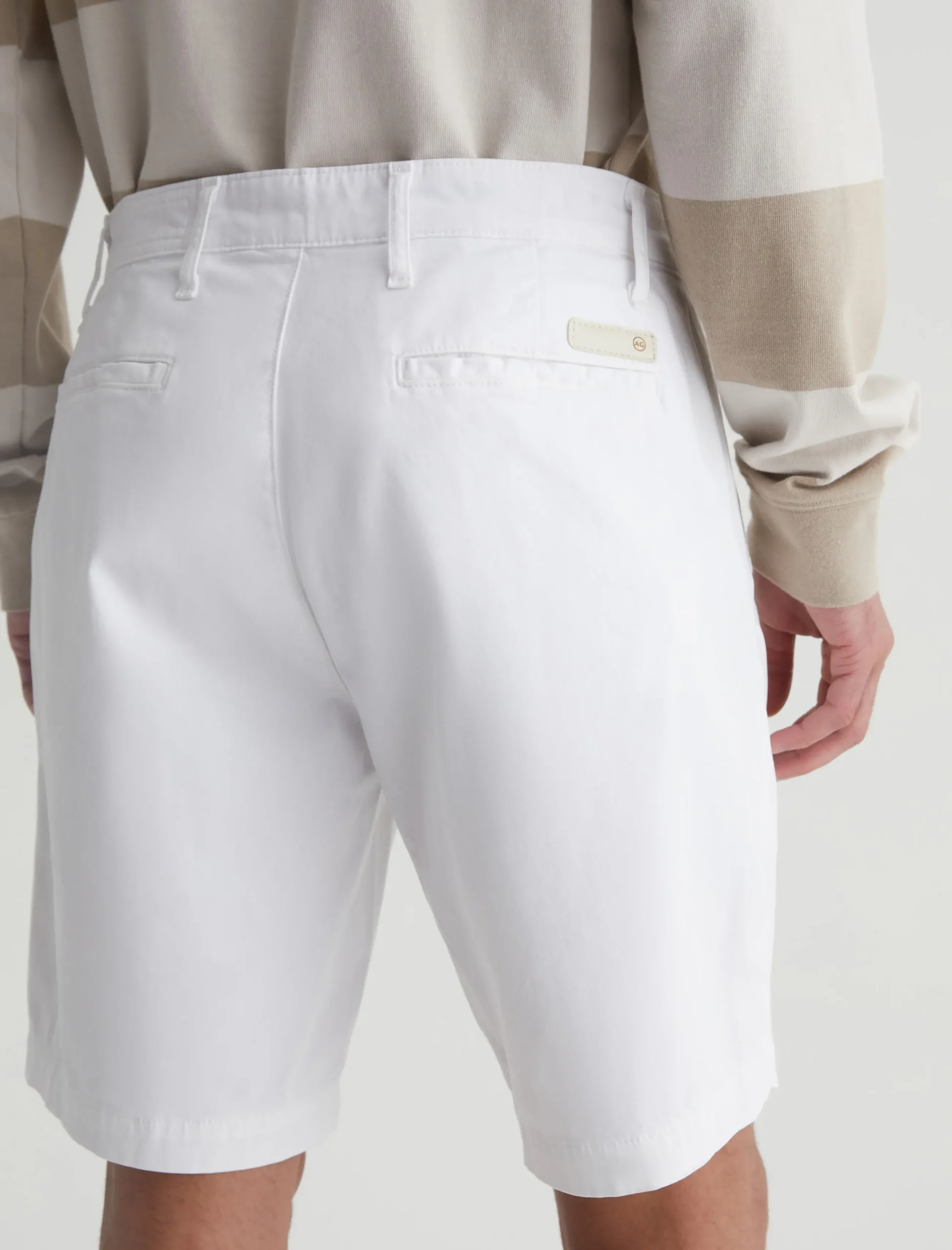 Our Wanderer Short for men has a clean trouser look in a slim fit with slightly tapered legs. Done in bright white, these men’s shorts are crafted from ultra-lightweight and sumptuous 7.4 oz. Brighton Sueded Sateen with premium stretch.