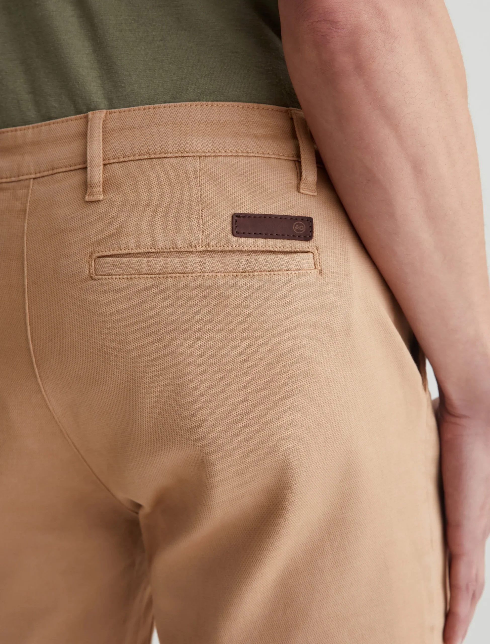 The Wanderer Short for men is tailored for a slim fit in 7.35 oz. Unite Dobby Cotton, a lightweight stretch-blend fabric that’s perfect for warmer days. Featuring a sulfur-dyed khaki color, these men’s shorts have a classic trouser look with a mid-rise waist and a slightly tapered leg opening.