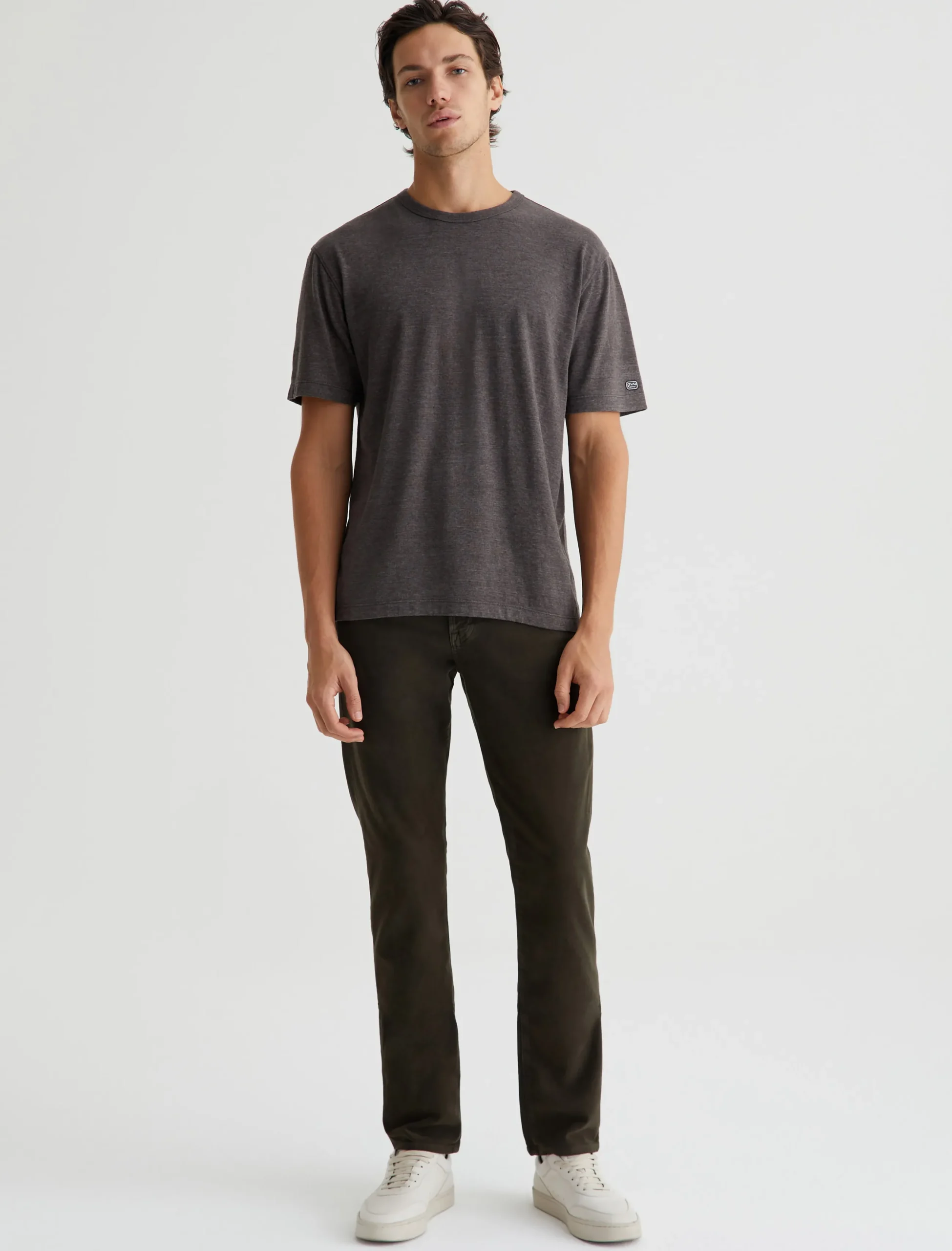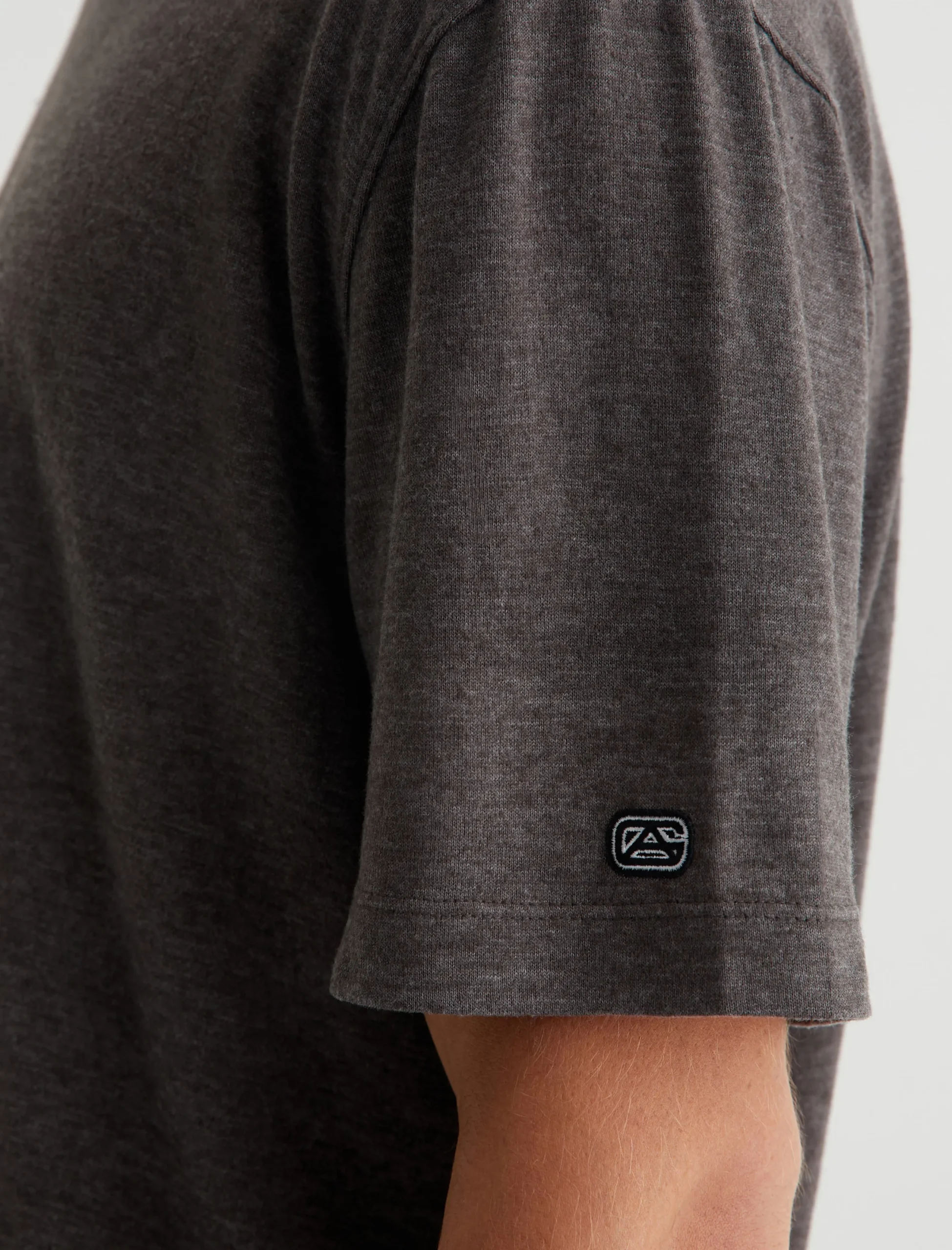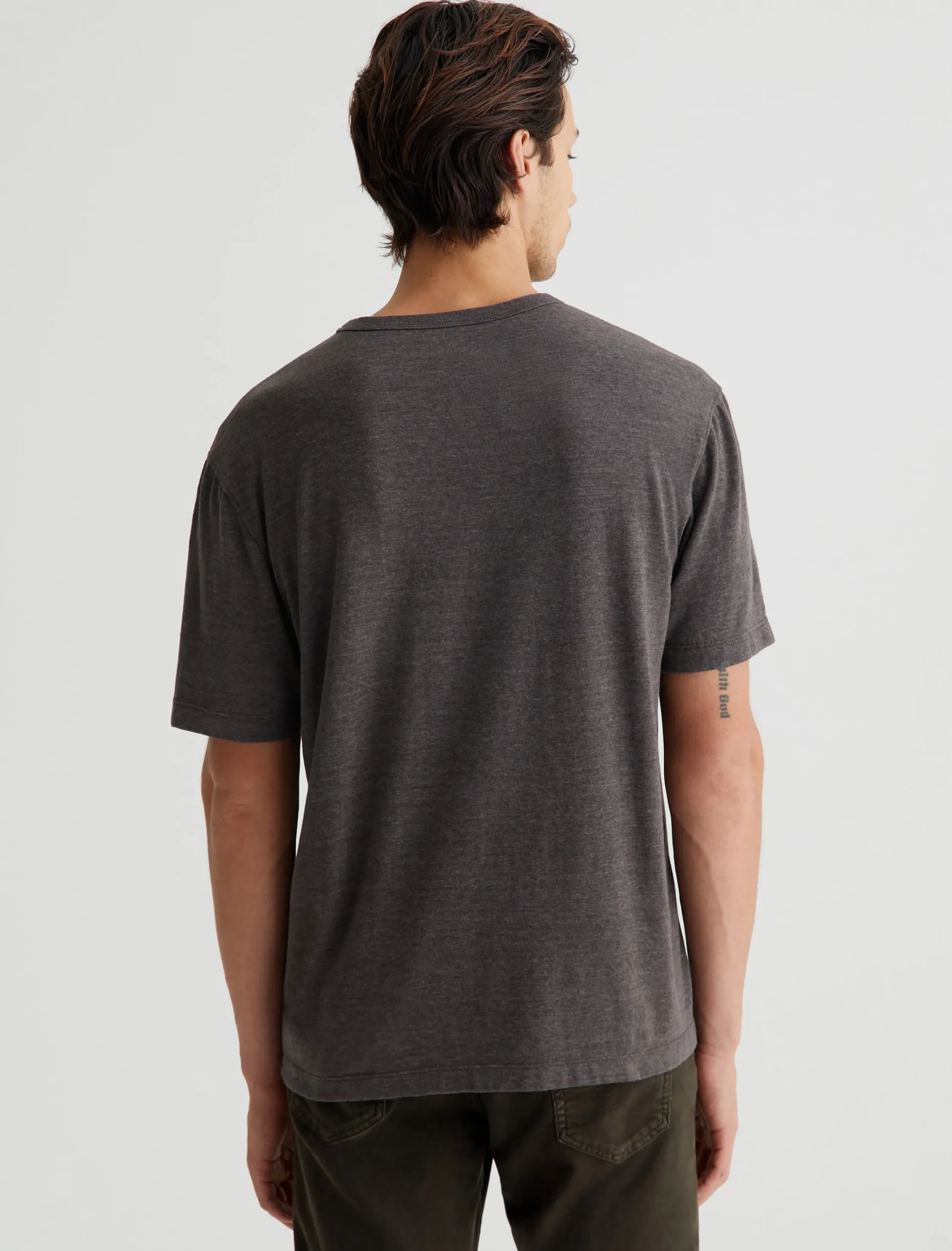 Our Wesley Crew is a relaxed short-sleeve men’s tee with drop-shoulder detailing and a wider hem for a more fashion forward fit. This T-shirt features cotton-blend Mélange Snow Jersey in off-white with a heathered appearance.