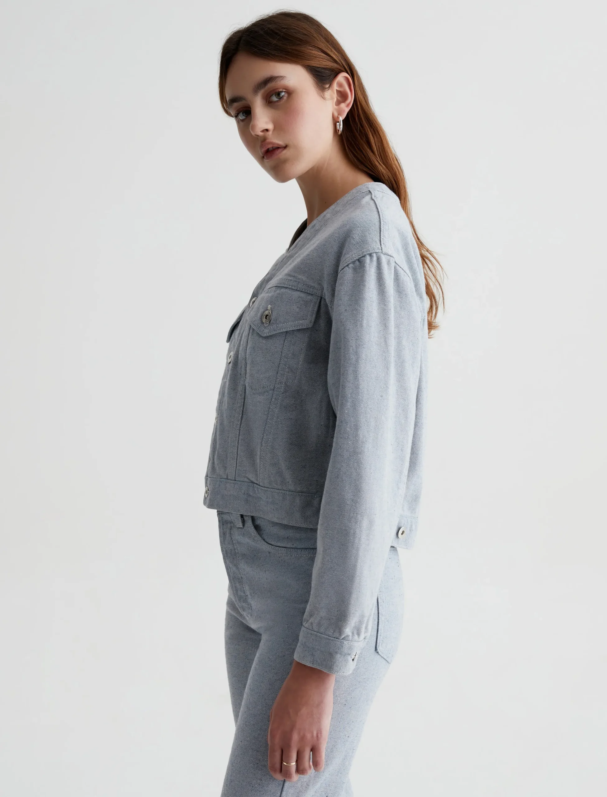 The Alanna Jacket is a cropped and collarless take on the classic denim trucker. Part of our Circular Denim initiative from the Jean of Tomorrow™ collection, it’s done in 10.6 oz. Revive Indigo Twill made with recycled cotton. The light blue color has gently speckled look. The Jean of Tomorrow™ is the most sustainable jean ever made.
