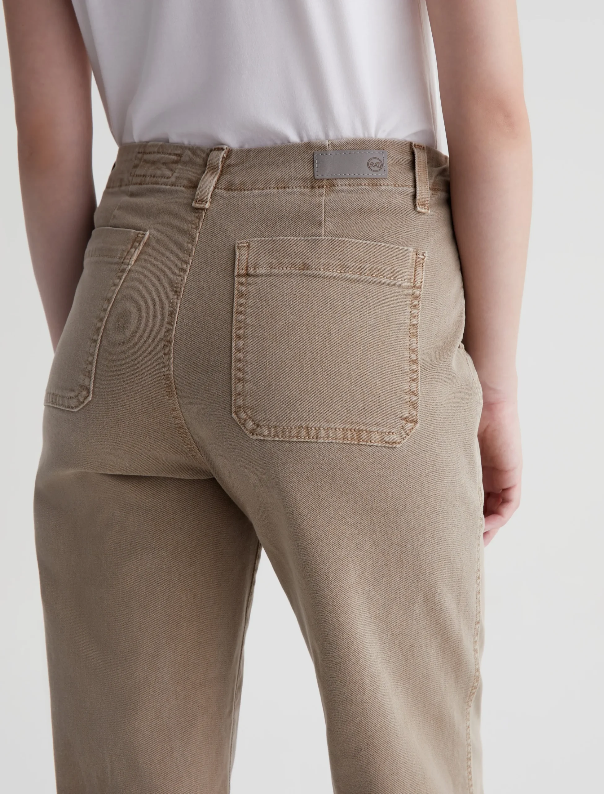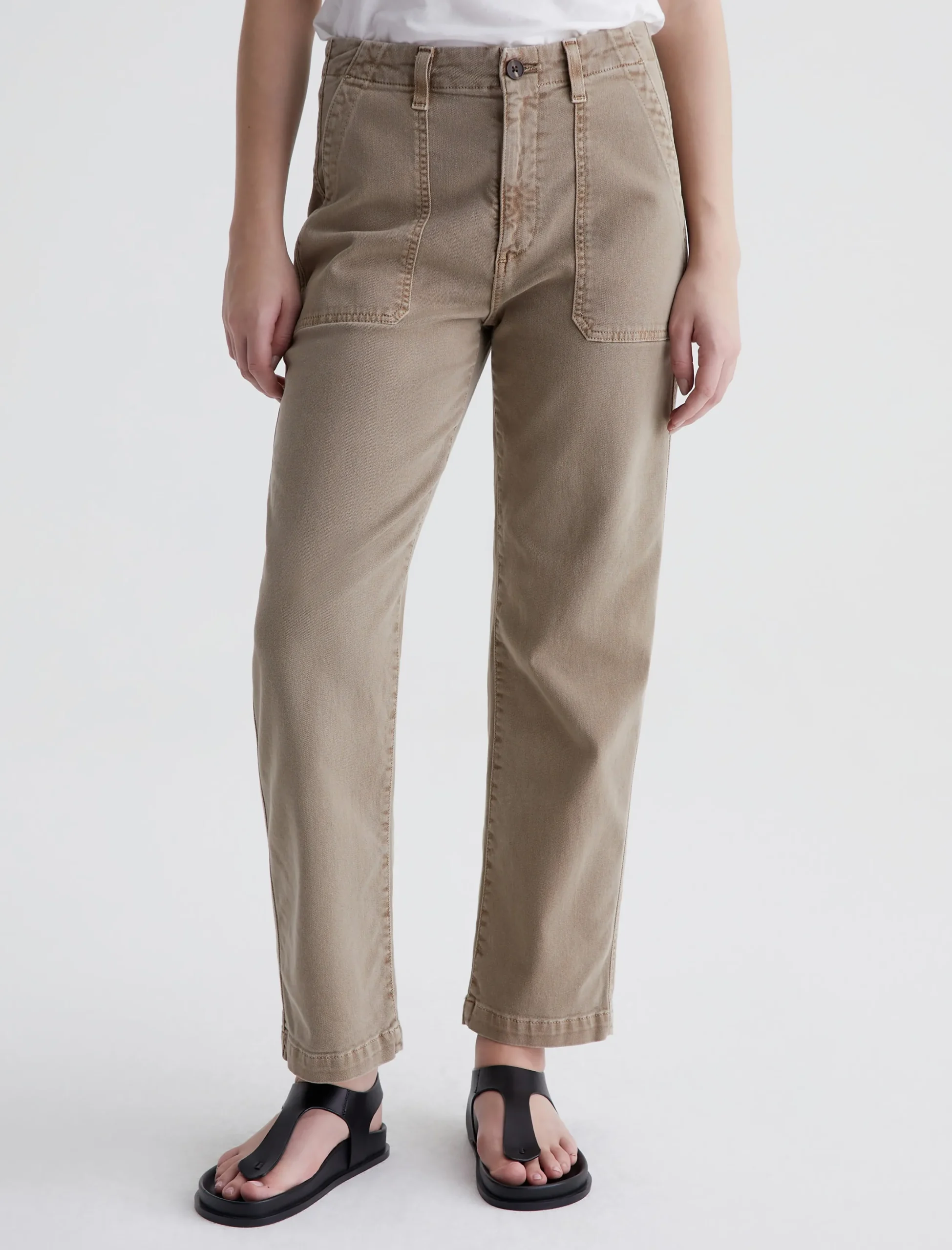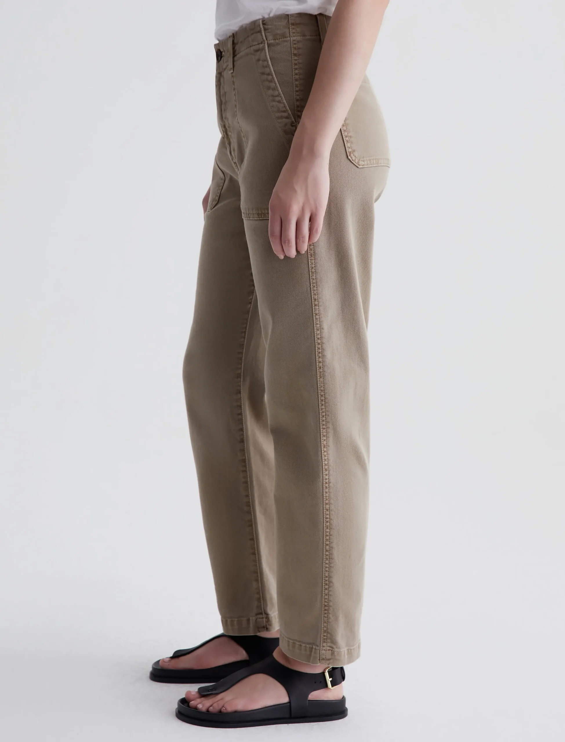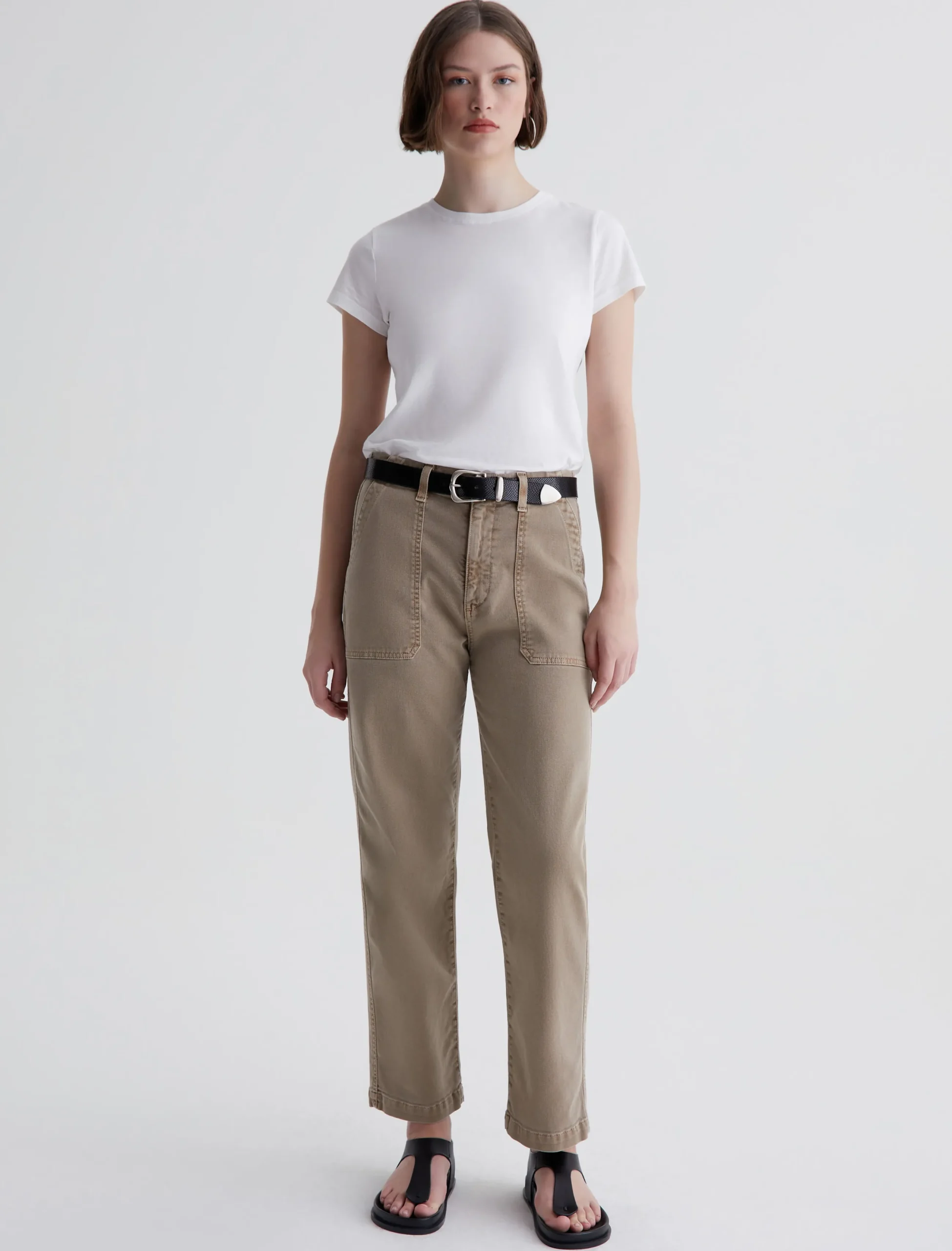 The Analeigh is our new high-rise straight crop in AG Cloud Soft Denim™ that’s been sulfur-dyed for a faded khaki shade. This ankle-baring style sits high on the natural waist and features a straight-leg silhouette with workwear-inspired pockets. It’s made from 8.7 oz. Hyper Soft Bull Denim, a left-hand twill fabric that allows the yarns to gently relax and untwist for a supple, velvety-soft feel. Designed for increased softness with every wear, the fabric has superstretch construction for ultimate comfort and enhanced recovery.