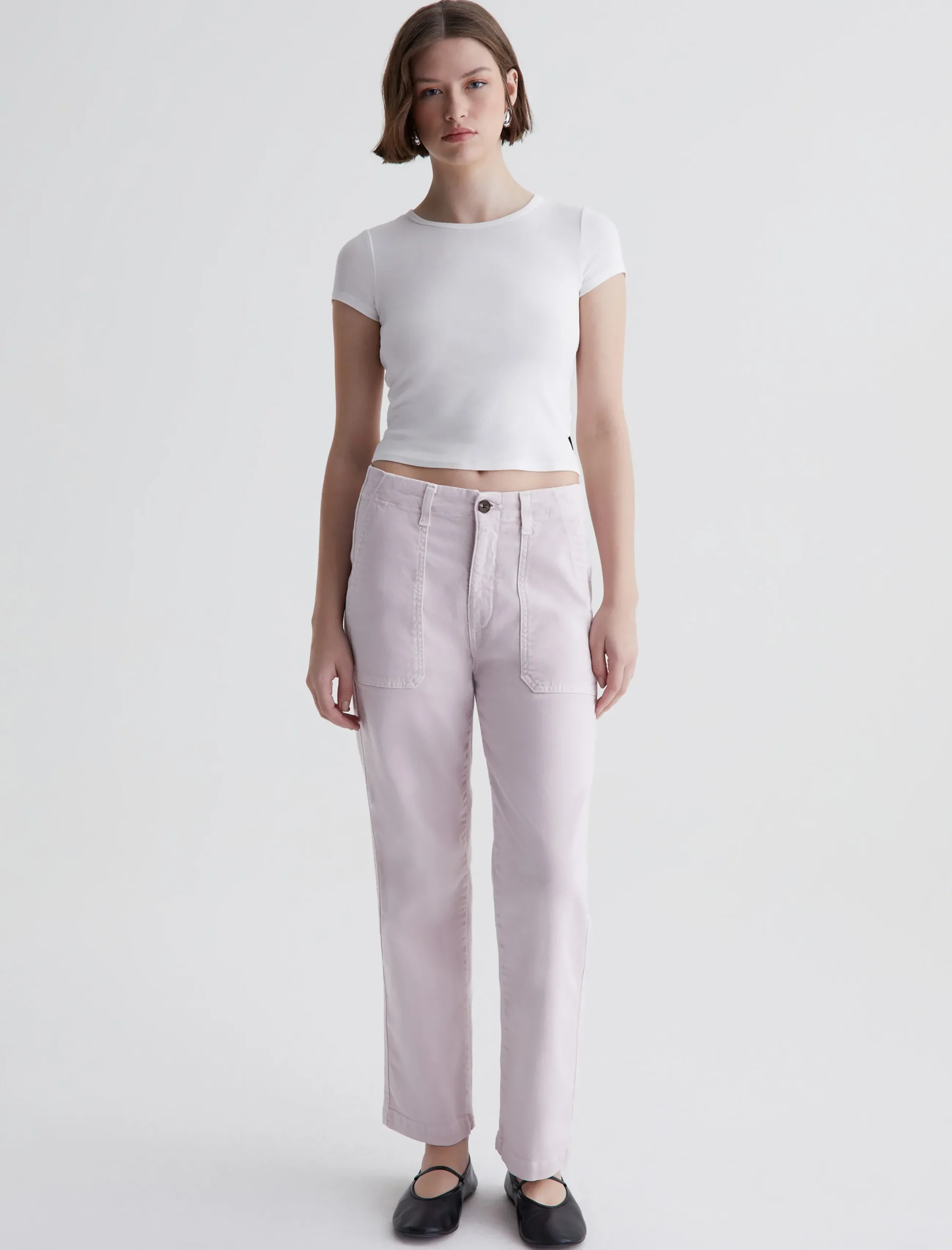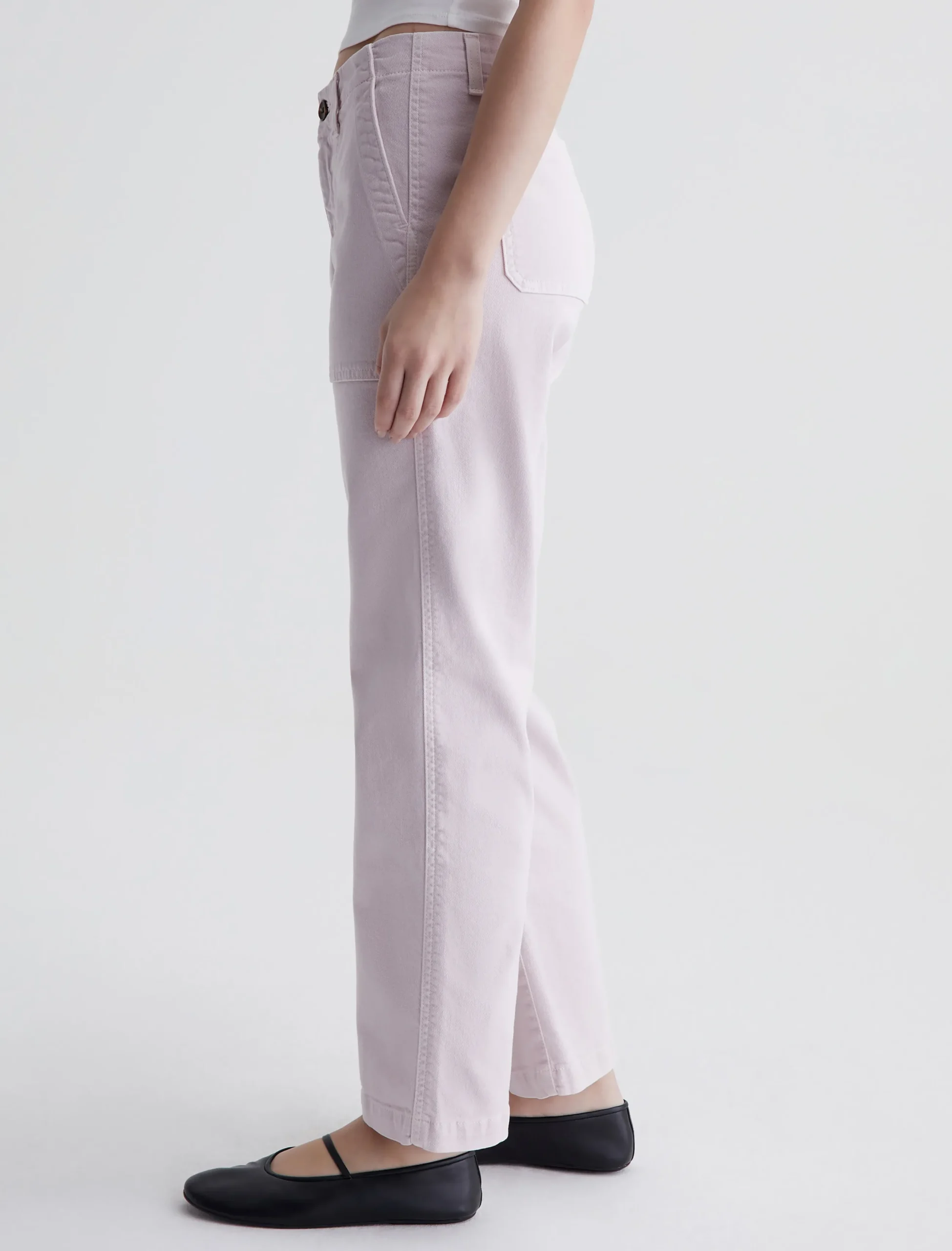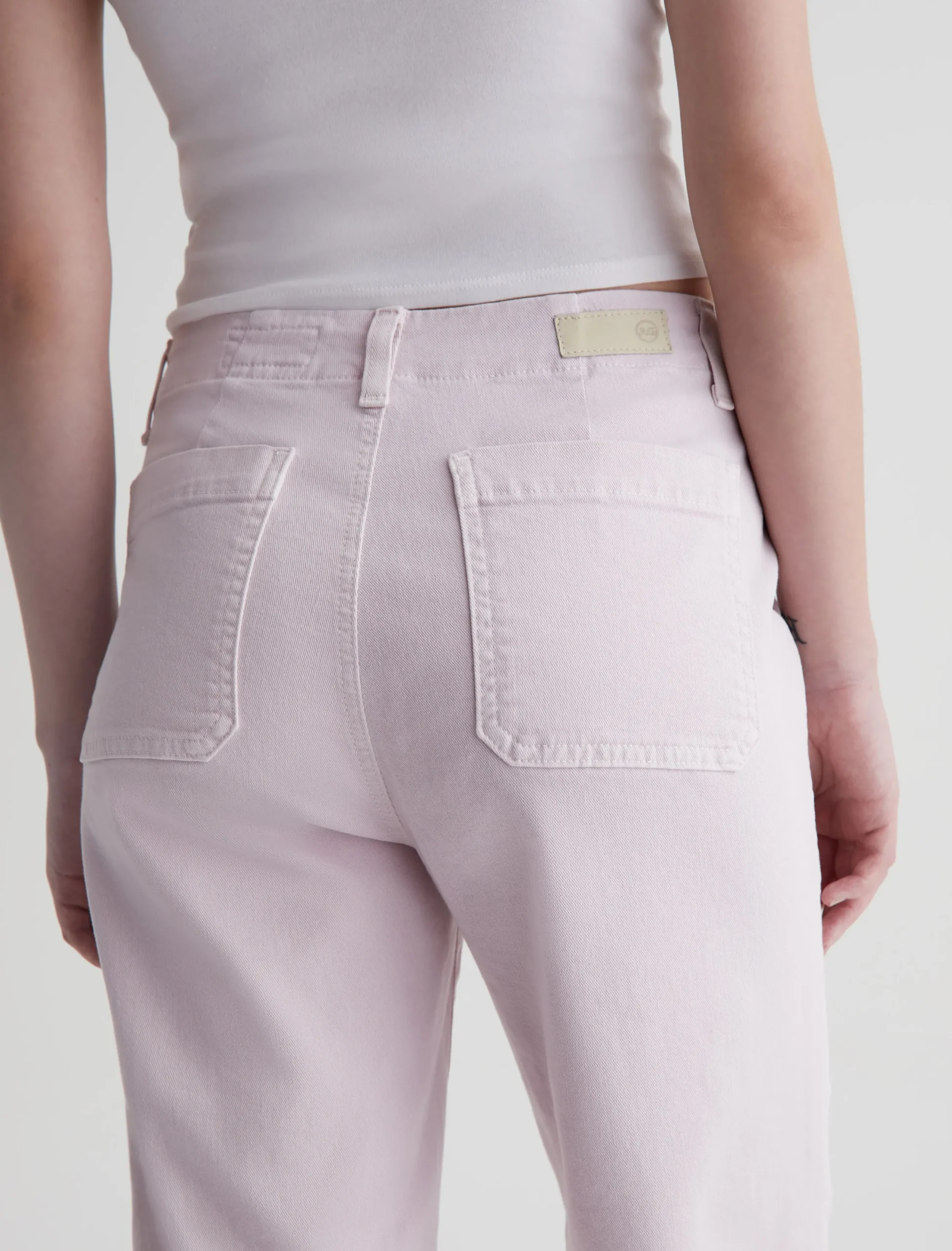 The Analeigh is our new high-rise straight crop in AG Cloud Soft Denim™ that’s been sulfur-dyed to the palest purple hue. This ankle-baring style sits high on the natural waist and features a straight-leg silhouette with workwear-inspired pockets. It’s made from 8.7 oz. Hyper Soft Bull Denim, a left-hand twill fabric that allows the yarns to gently relax and untwist for a supple, velvety-soft feel. Designed for increased softness with every wear, the fabric has superstretch construction for ultimate comfort and enhanced recovery.