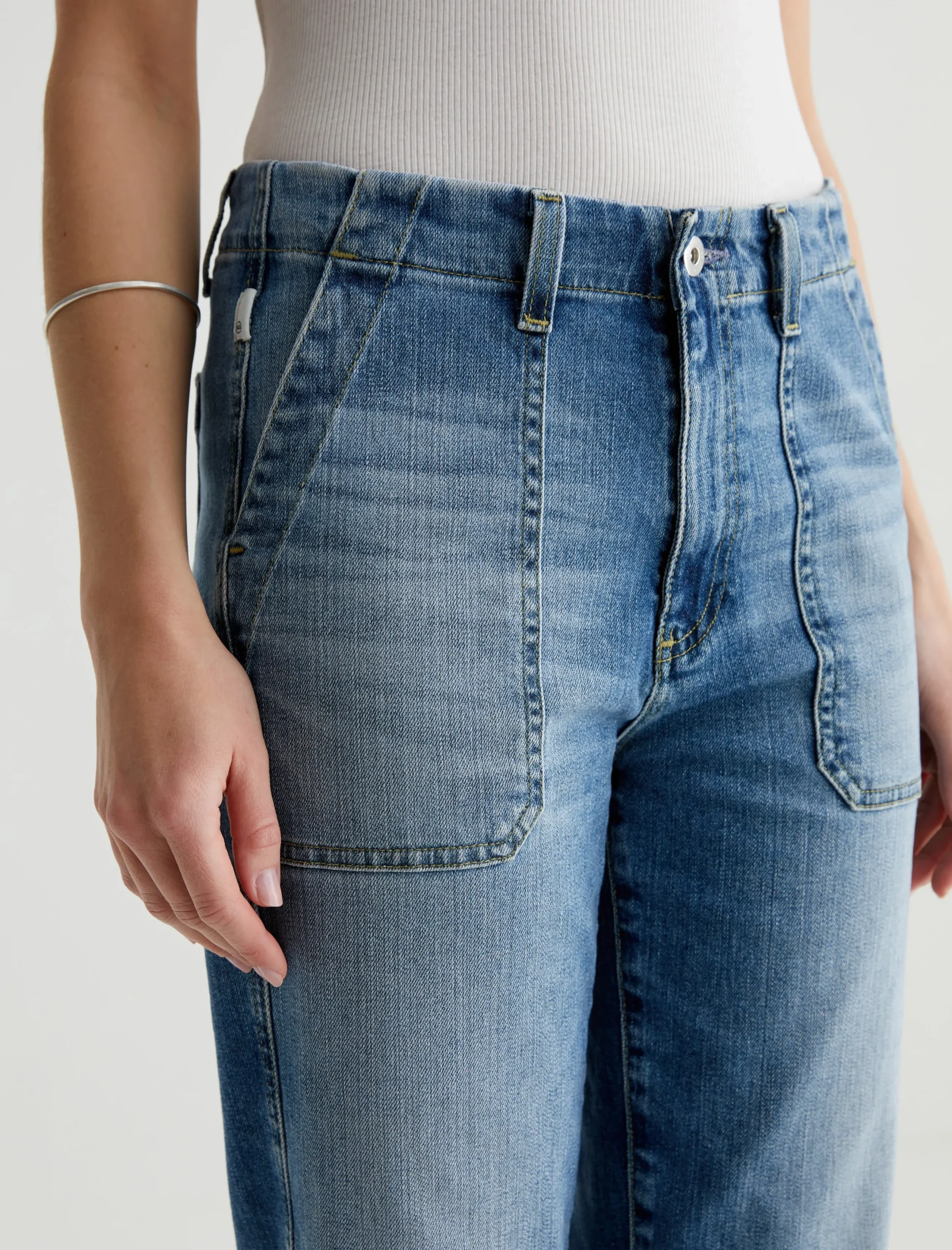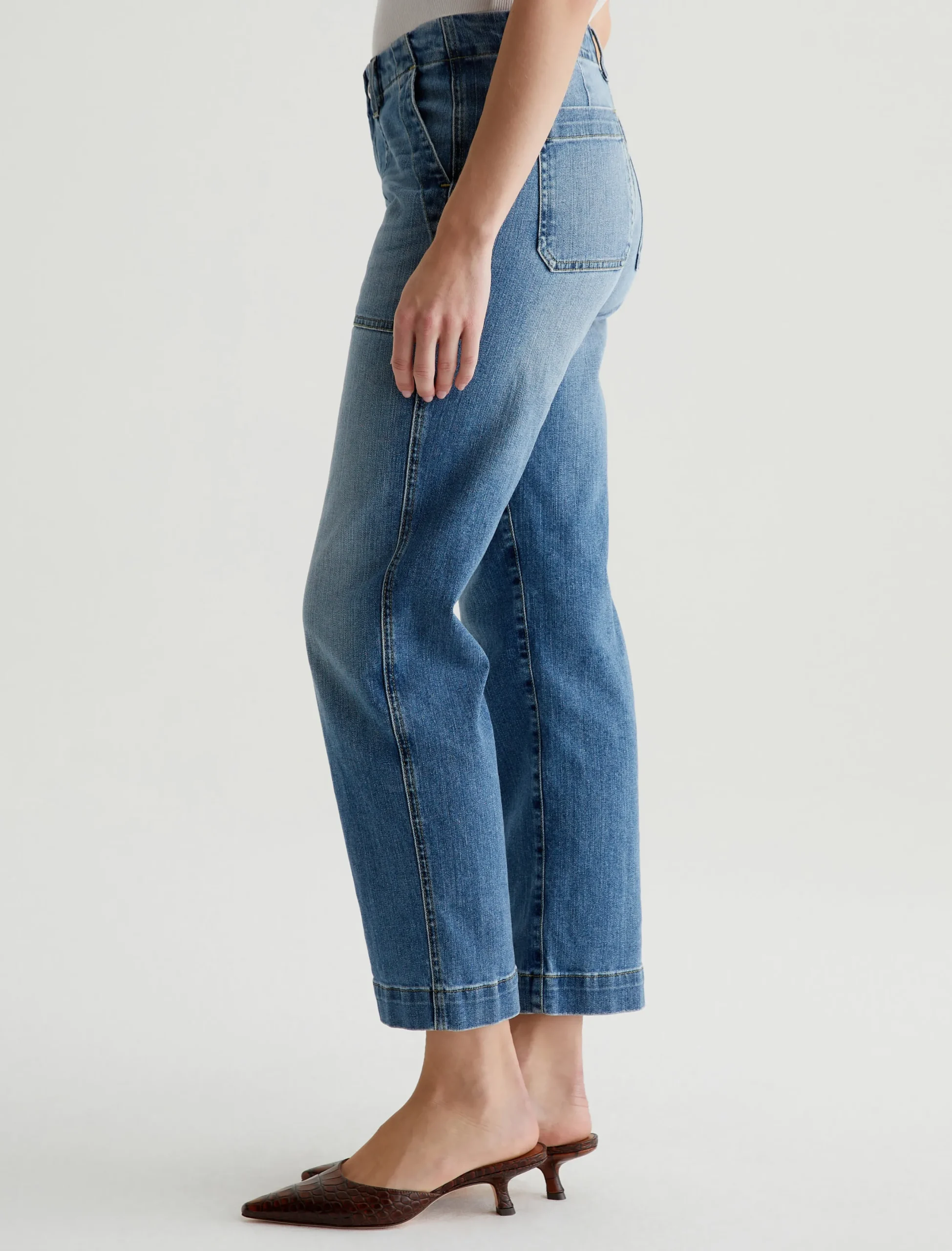 Analeigh is a high-rise straight crop with workwear-inspired pockets and wide hems. These cropped jeans for women are designed in 11 oz. Lead Denim featuring comfort stretch and a light, faded wash.