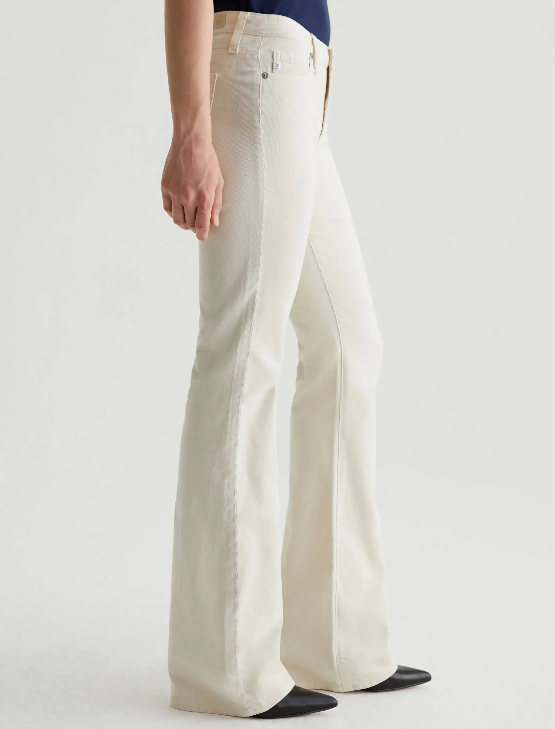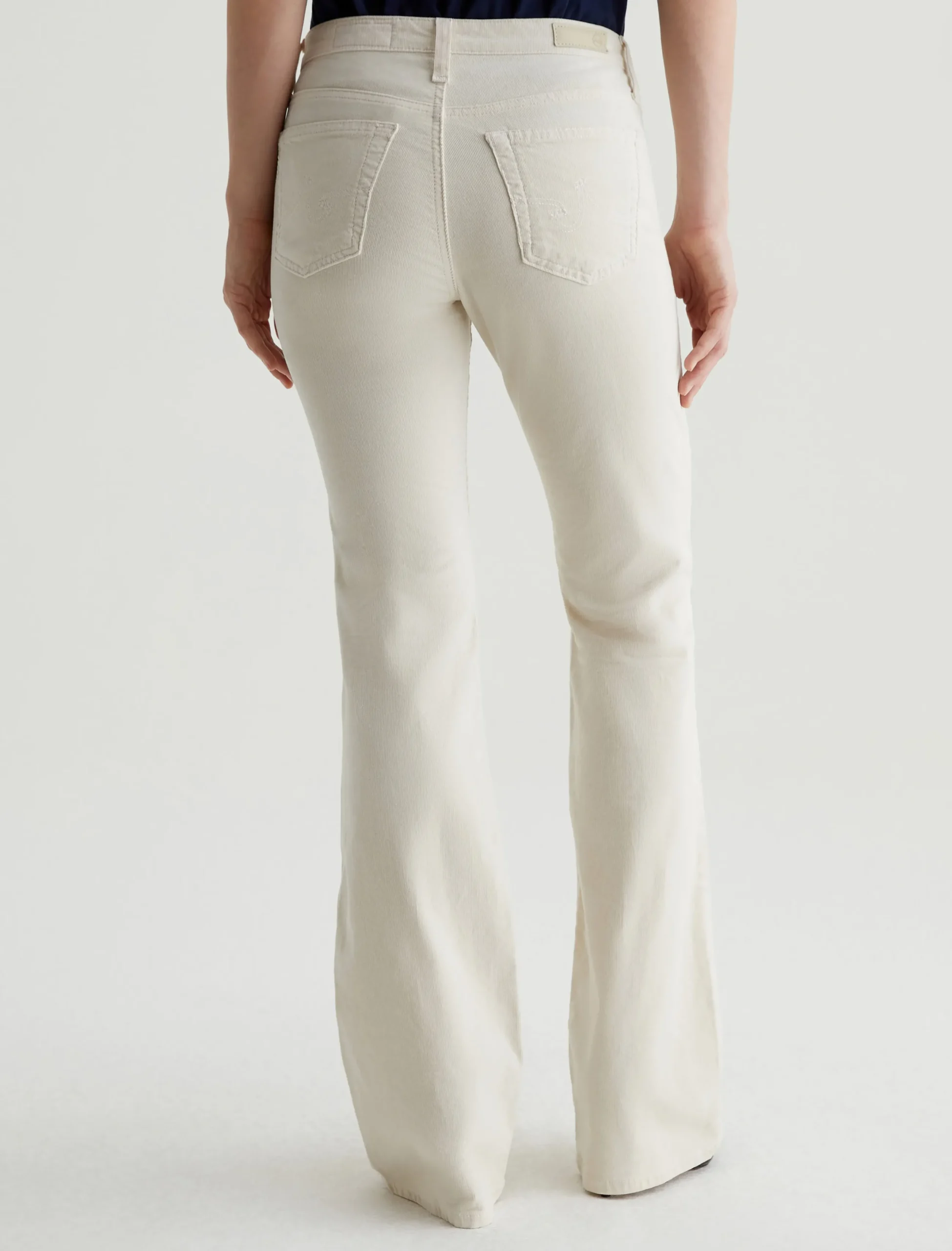 The Angel low-rise bootcut gets a plush update in 8.3 oz. Novel Stretch Mini Corduroy. Cut for a subtly flared silhouette, these corduroy bootcut pants have been sulfur-dyed for an off-white shade and feature a 1-year AG-ed™ finish for a naturally broken-in appearance.