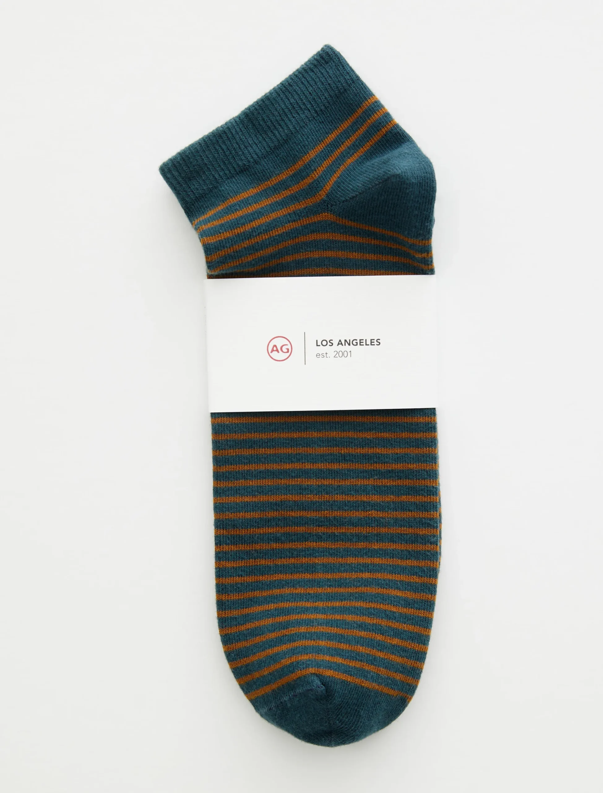 This sock is our classic ankle sock. Featuring a stripe pattern, this pair has been knitted from a comfortable cotton blend and ribbed through the ankles.