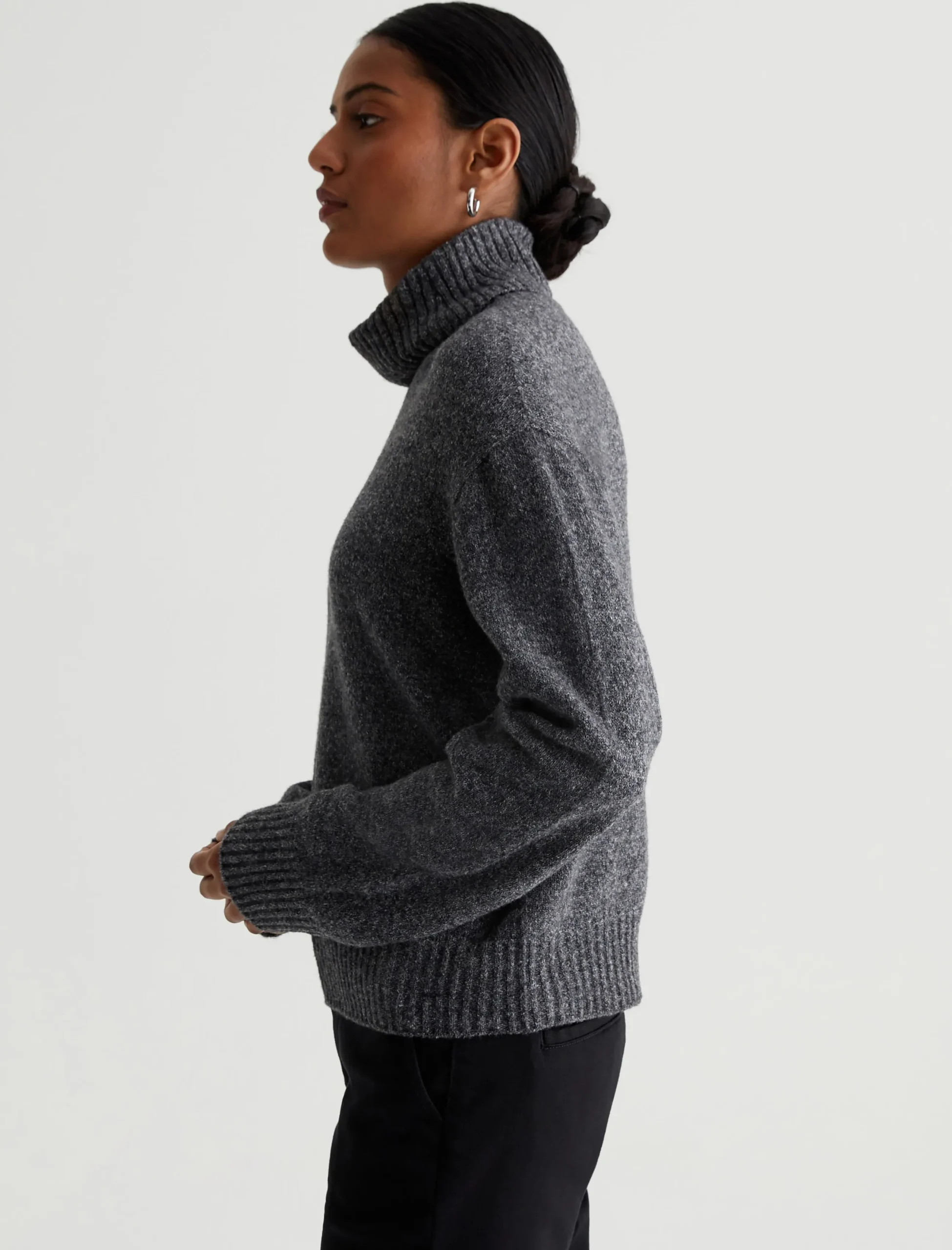 A warm and cozy addition to your knitwear collection, the Bellona is a relaxed turtleneck sweater in a slightly boxy shape. Done here in heathered charcoal, it’s blended with Merino wool and alpaca for a soft, plush feel.