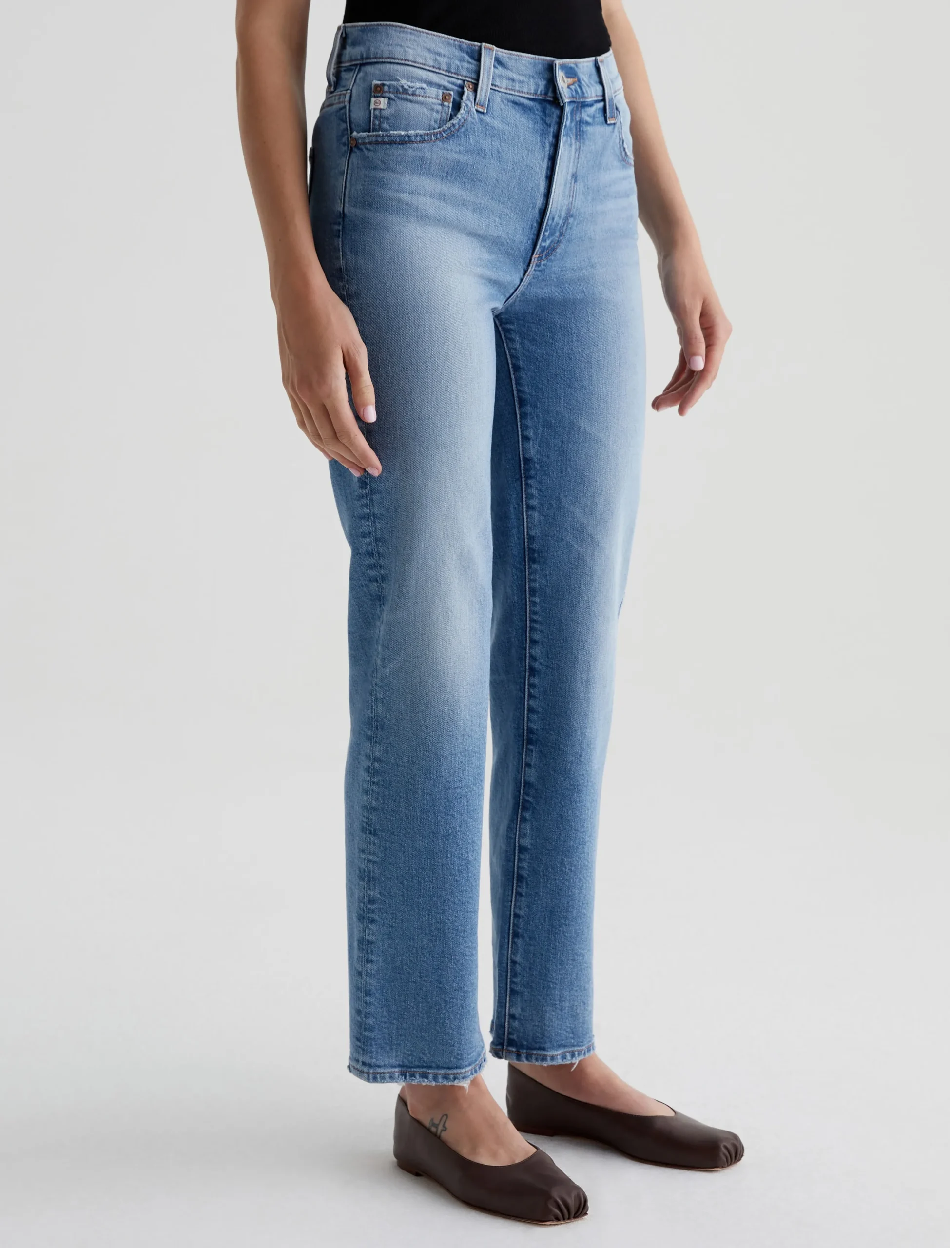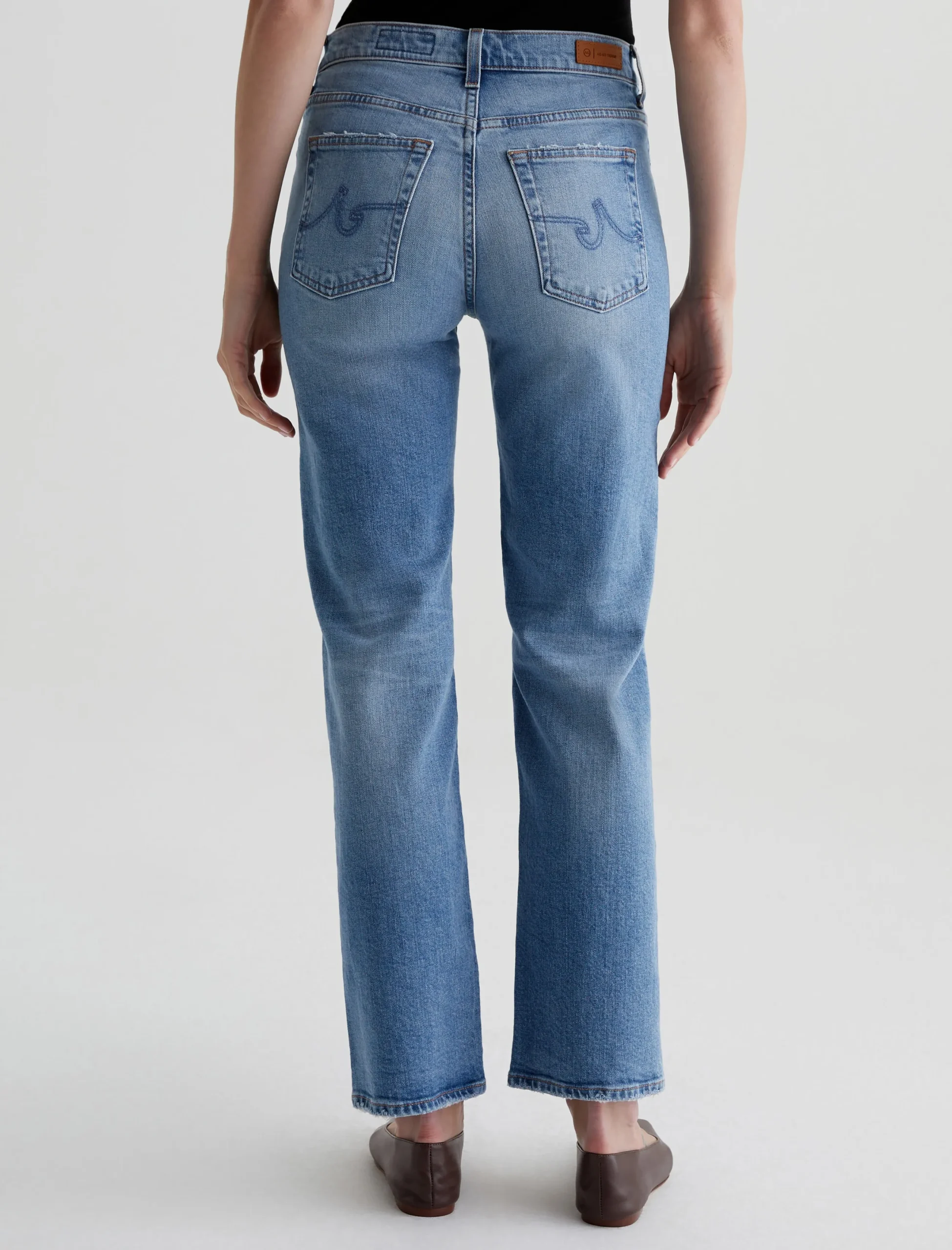 Brinley is our new mid-rise straight fit for women. The five-pocket style sits right at the natural waist and falls to a classic straight-leg silhouette. Crafted from 11.75 oz. Vintage Comfort Stretch Denim, it’s done in a light blue wash that our designers custom-developed to replicate the lived-in details of authentic vintage jeans. Fading, worn edges, busted hems, and a touch of distressing near the pockets create the 18-year AG-ed™ Denim character.