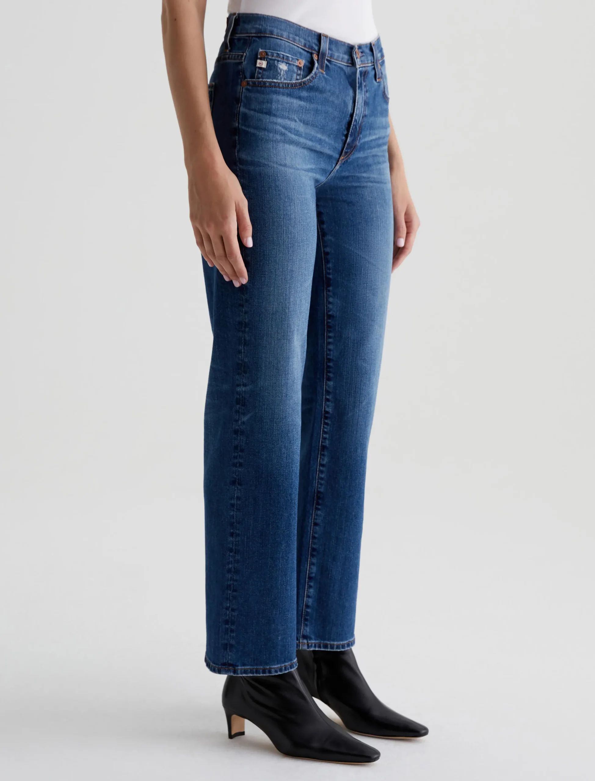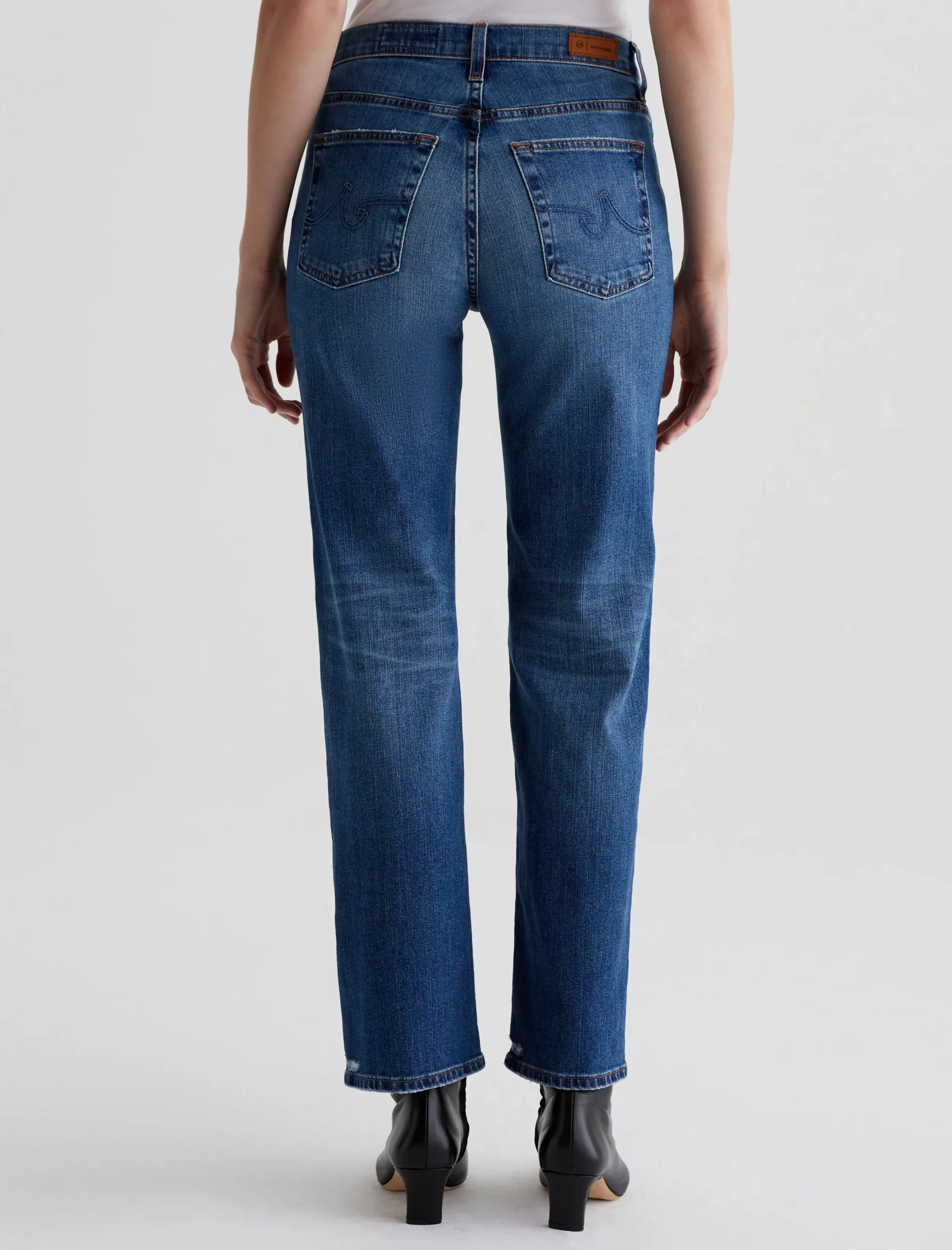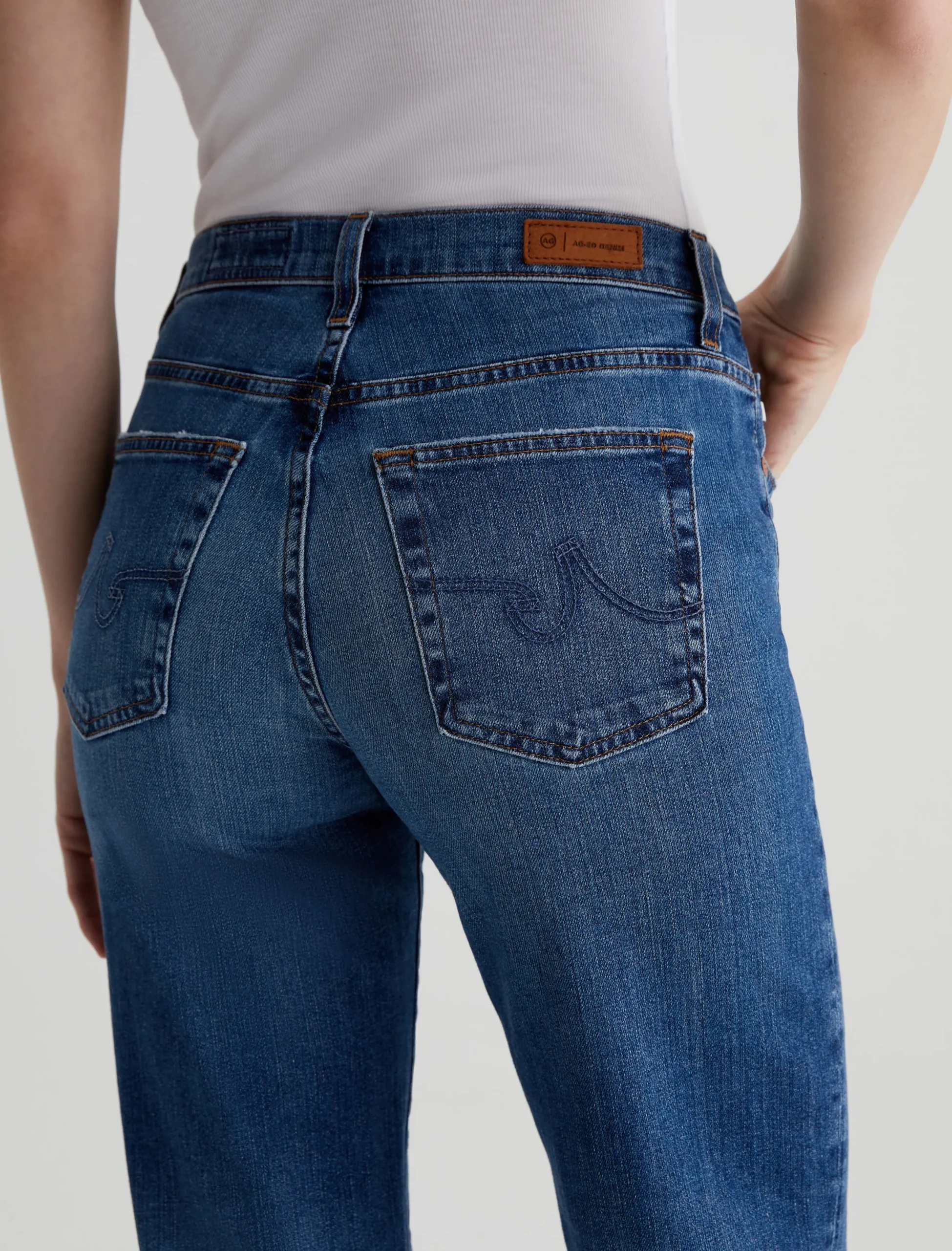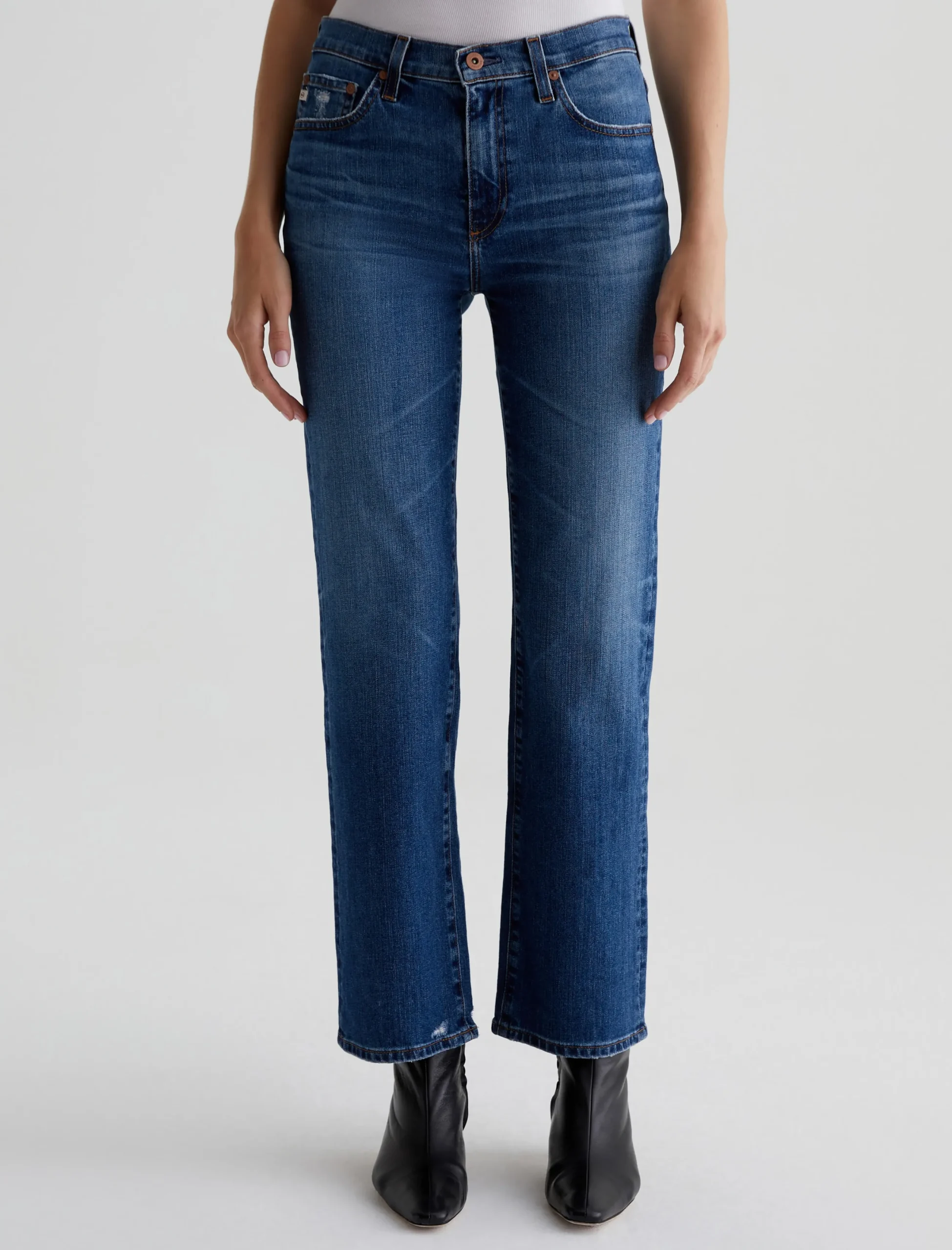 Brinley is our new mid-rise straight jean, done here in a dark blue wash with marigold contrast stitching and a 15-year AG-ed™ finish. Fading, whiskering, and hits of distressing near the hems. These five-pocket women’s jeans sit right at the natural waist and fall to the perfect straight-leg silhouette for year-round styling. This pair comes in 11 oz. Lead Denim with comfort stretch.