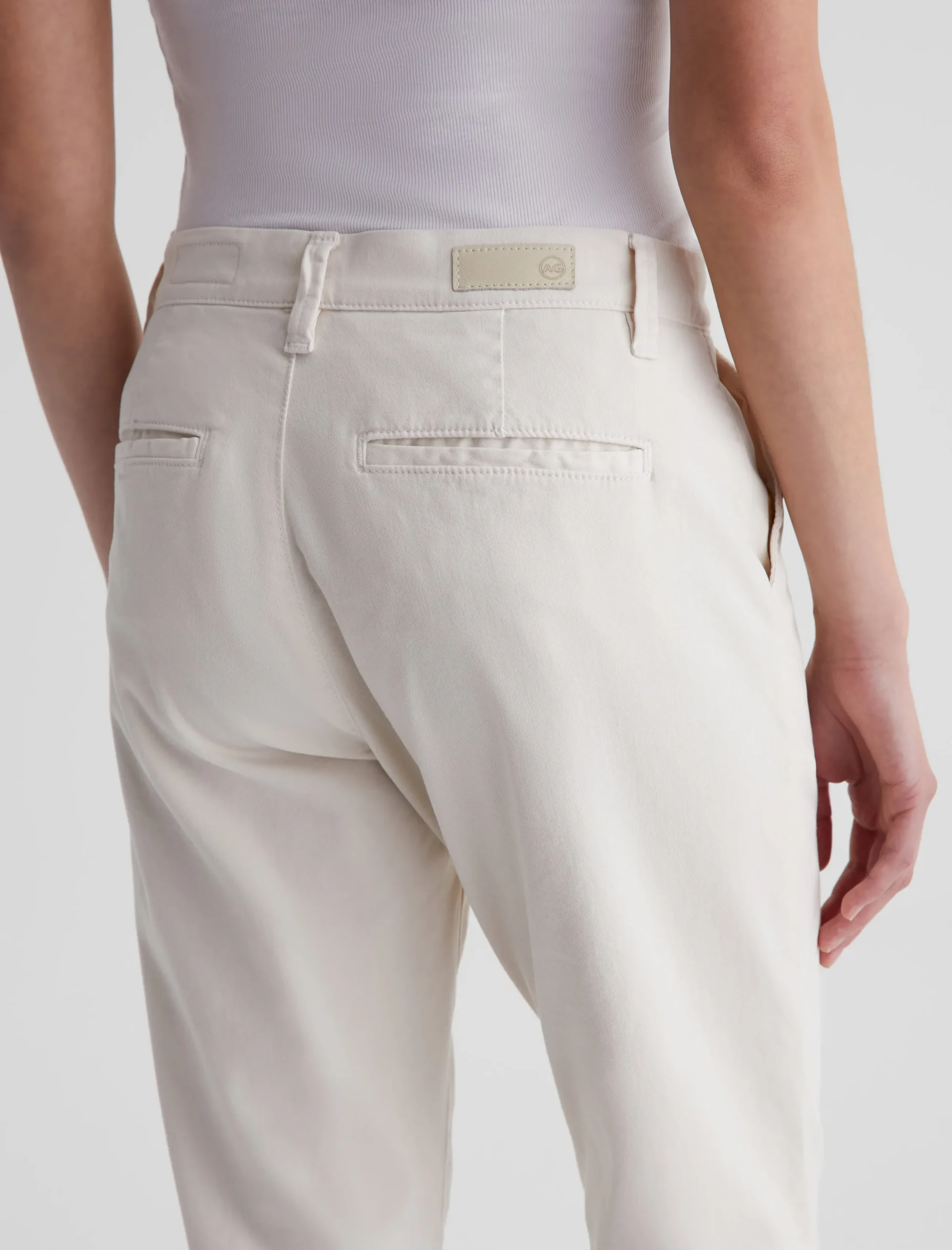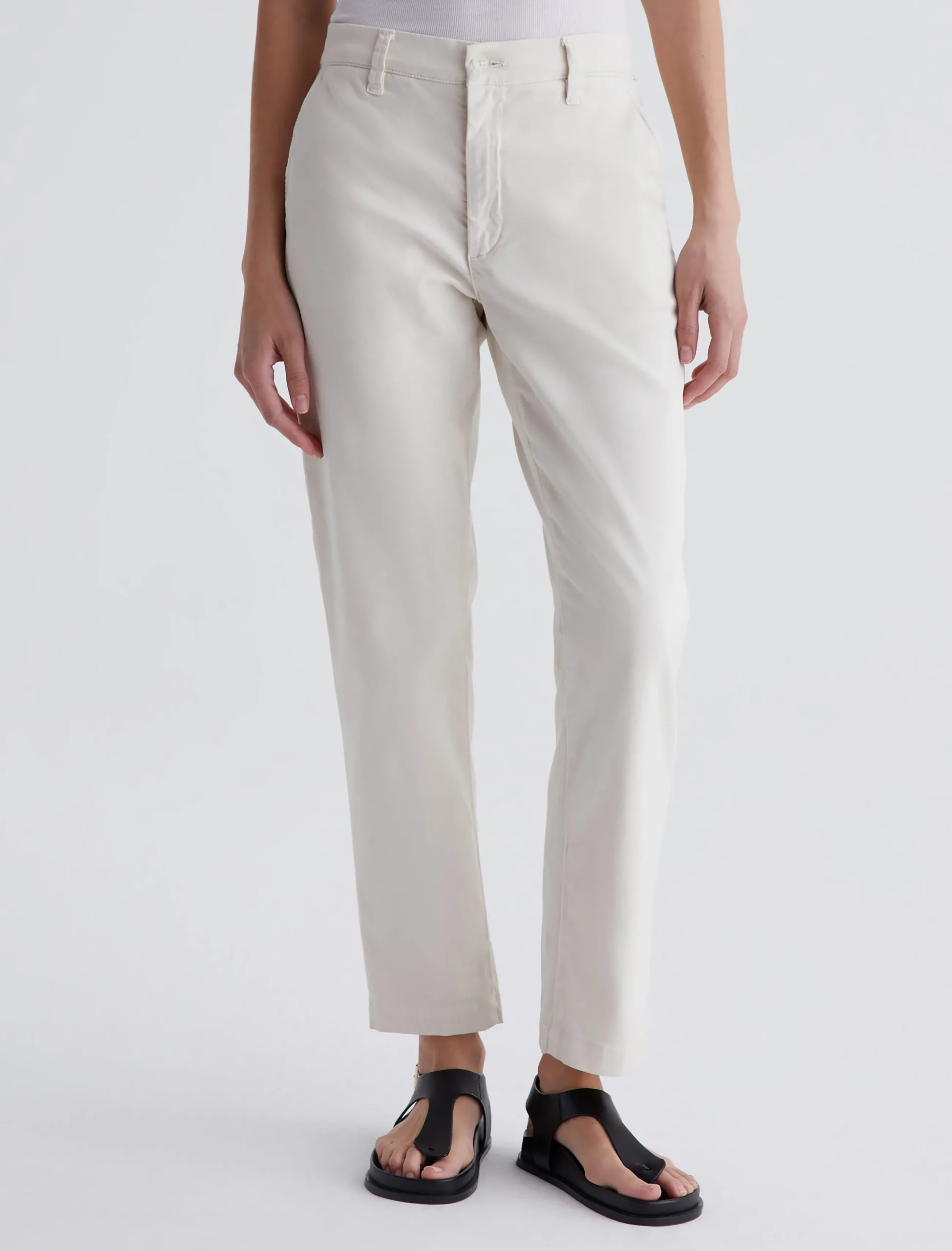 Caden is a tailored trouser crafted from 7.5 oz. Sumptuous Stretch Broken Twill in off-white. These women’s pants have a relaxed fit at the hips and a gently tapered shape through the legs, finishing in a cropped length that lands above the ankles. Detailed with slant front pockets and welt back pockets.