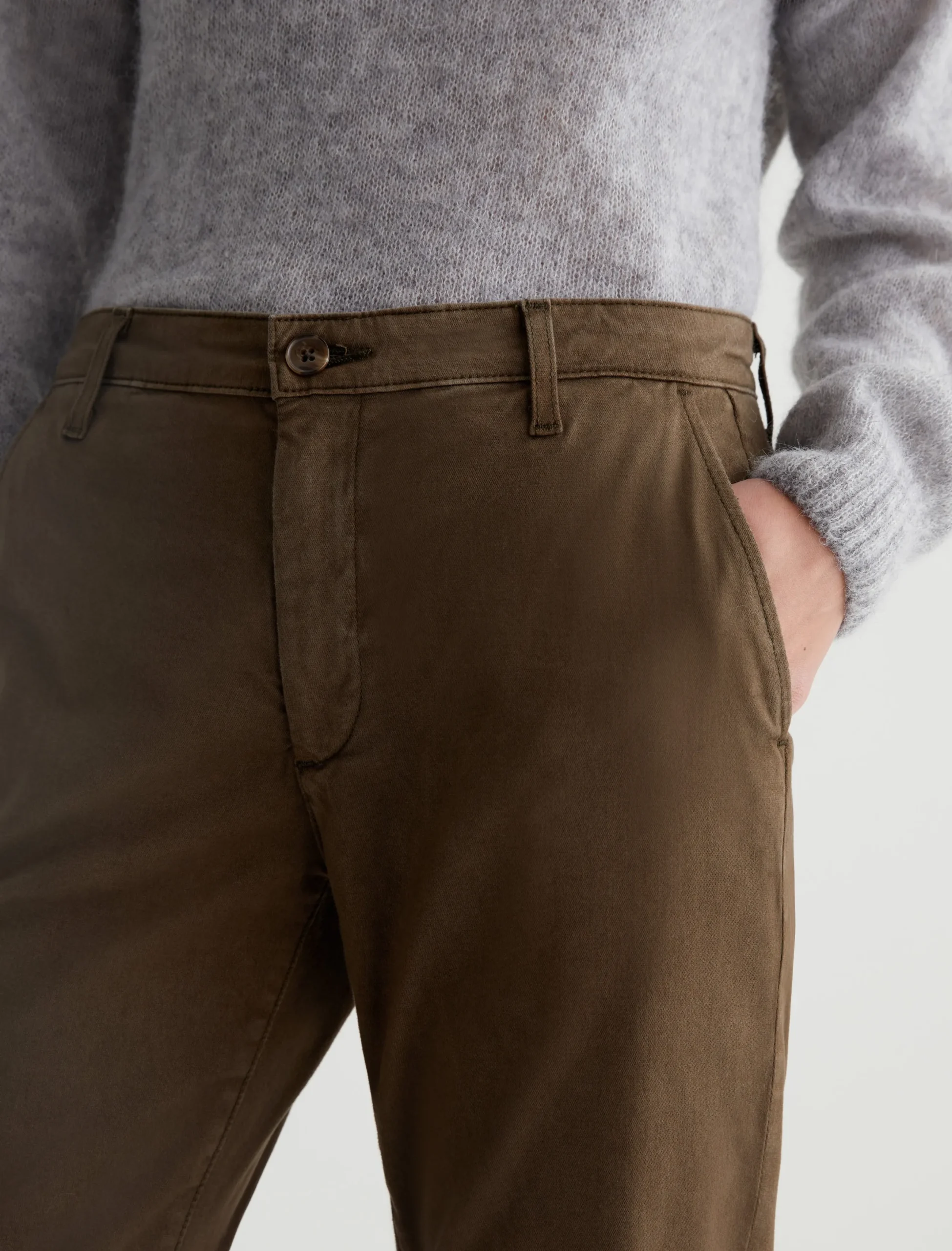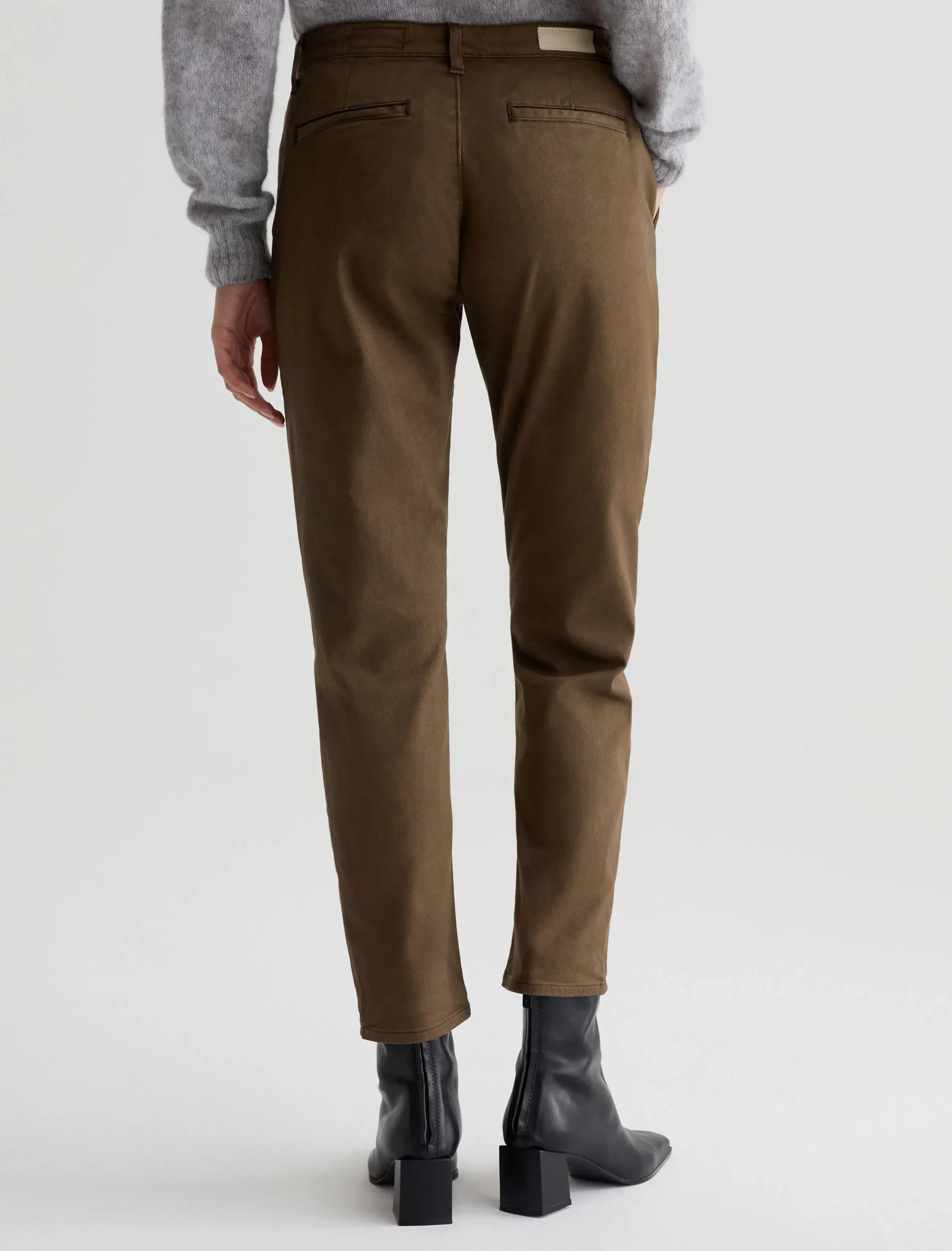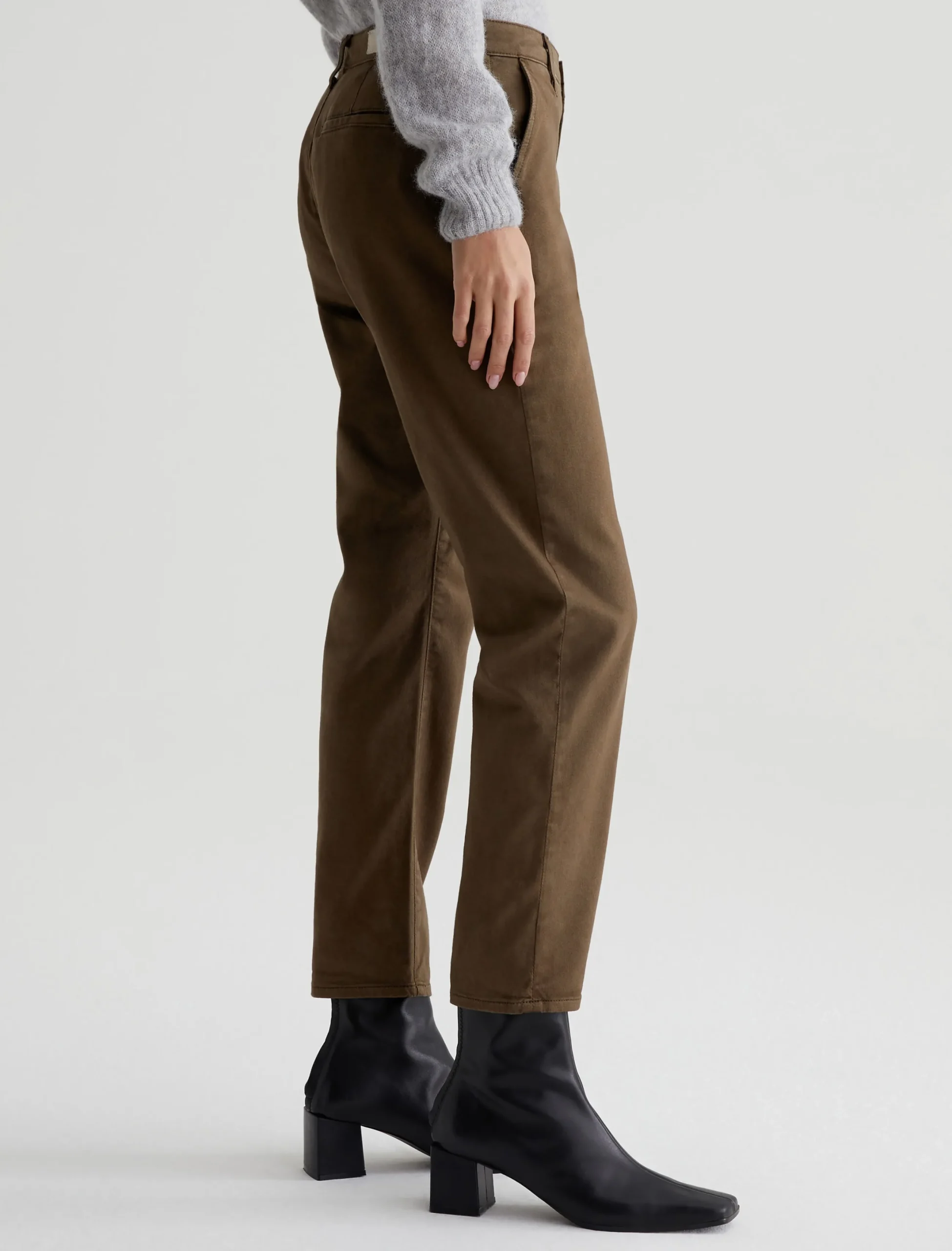 Caden is a tailored trouser crafted from 7.5 oz. Sumptuous Stretch Broken Twill in a sulfur-dyed brown shade. These women’s pants have a relaxed fit at the hips and a gently tapered shape through the legs, finishing in a cropped length that lands above the ankles. Detailed with slant front pockets and welt back pockets.