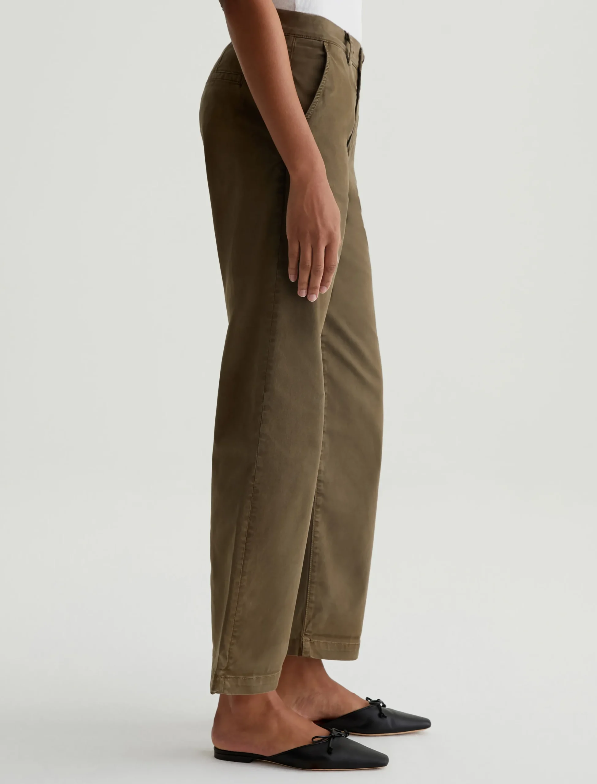 Our best-selling Caden trouser, updated in an easygoing straight-leg silhouette. Cut for a relaxed fit at the hips, these women’s tailored pants are made from 7.9 oz. Sorrento Stretch Twill in a sulfur-dyed shade of light brown. Slant front pockets and welt pockets at the back finish the look.