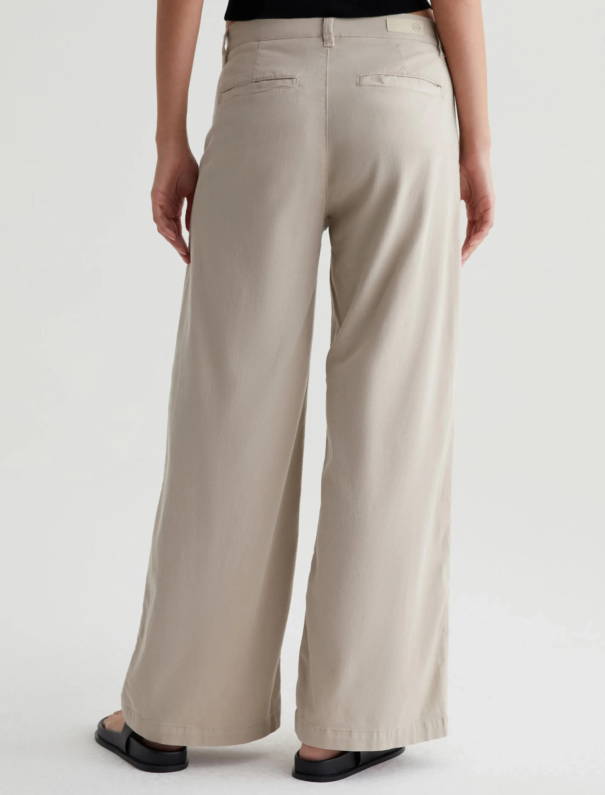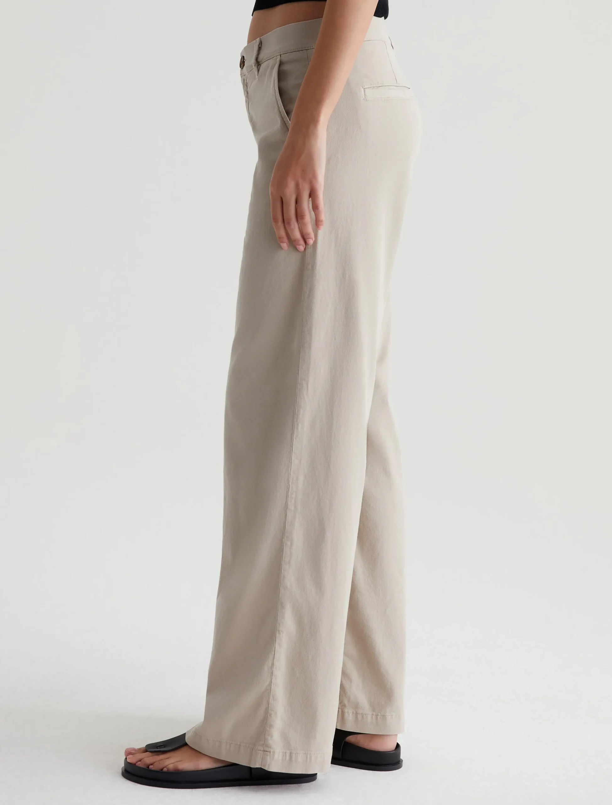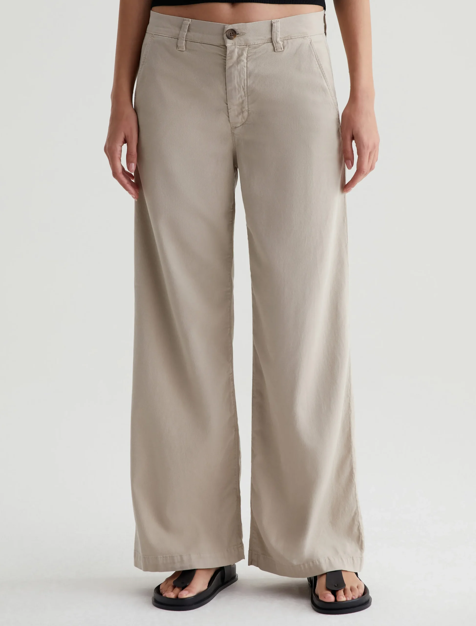 An update on our best-selling women’s trousers, the Caden Wide Leg pants feature a relaxed fit at the hips and a loose, roomy cut through the legs. Soft and lightweight, these wide-leg trousers are crafted from 6.2 oz. Stretch Cotton Tencel Twill in a pale beige shade. Complete with a zip fly with faux-horn button, slant front pockets, and welt back pockets.