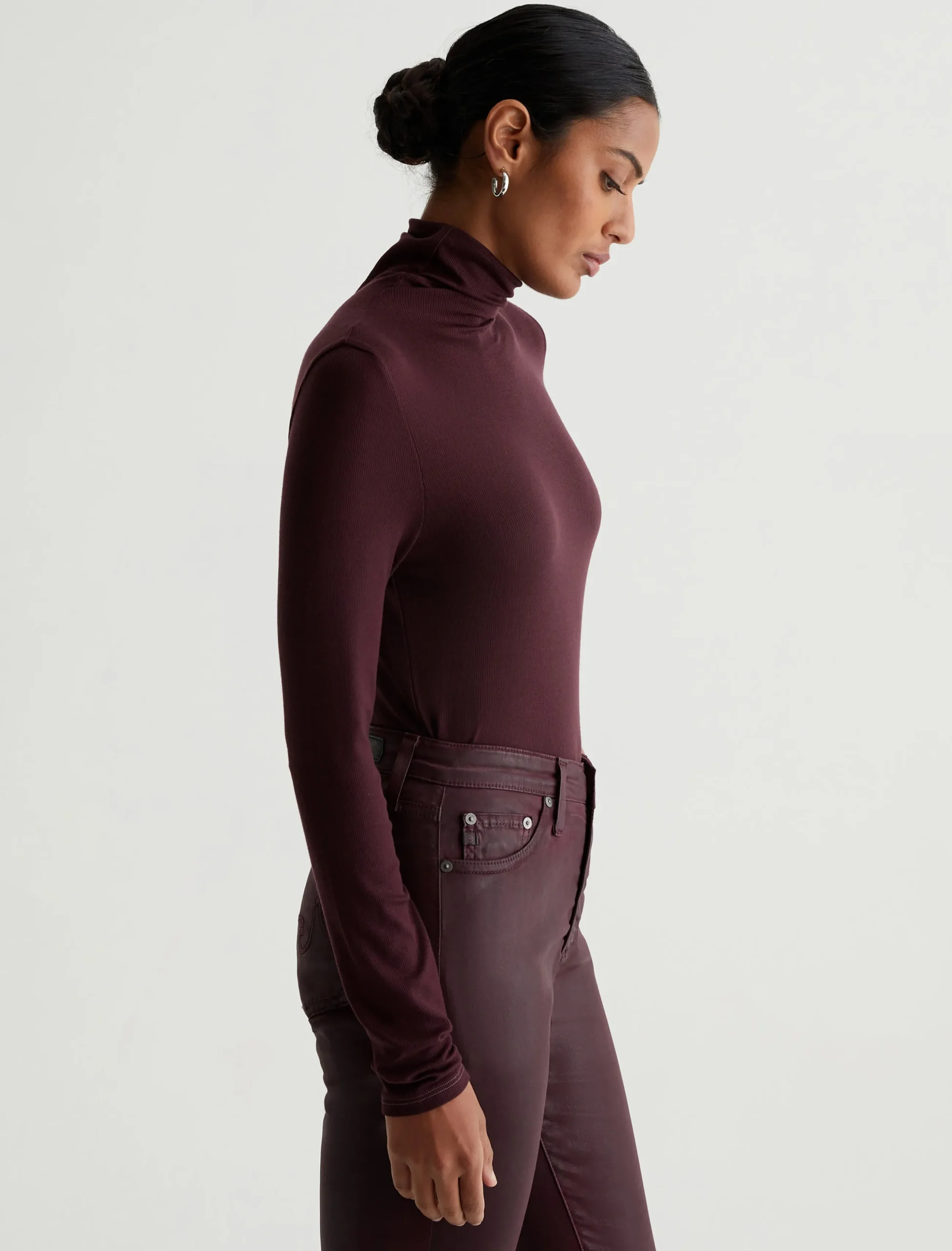The Chels Turtleneck has a slim, formfitting silhouette with a high neckline and long sleeves. Featuring a dark purple shade, this women’s top is designed in a 2×1 Lyocell Rib knit with a luxuriously comfortable feel that’s soft against the skin.