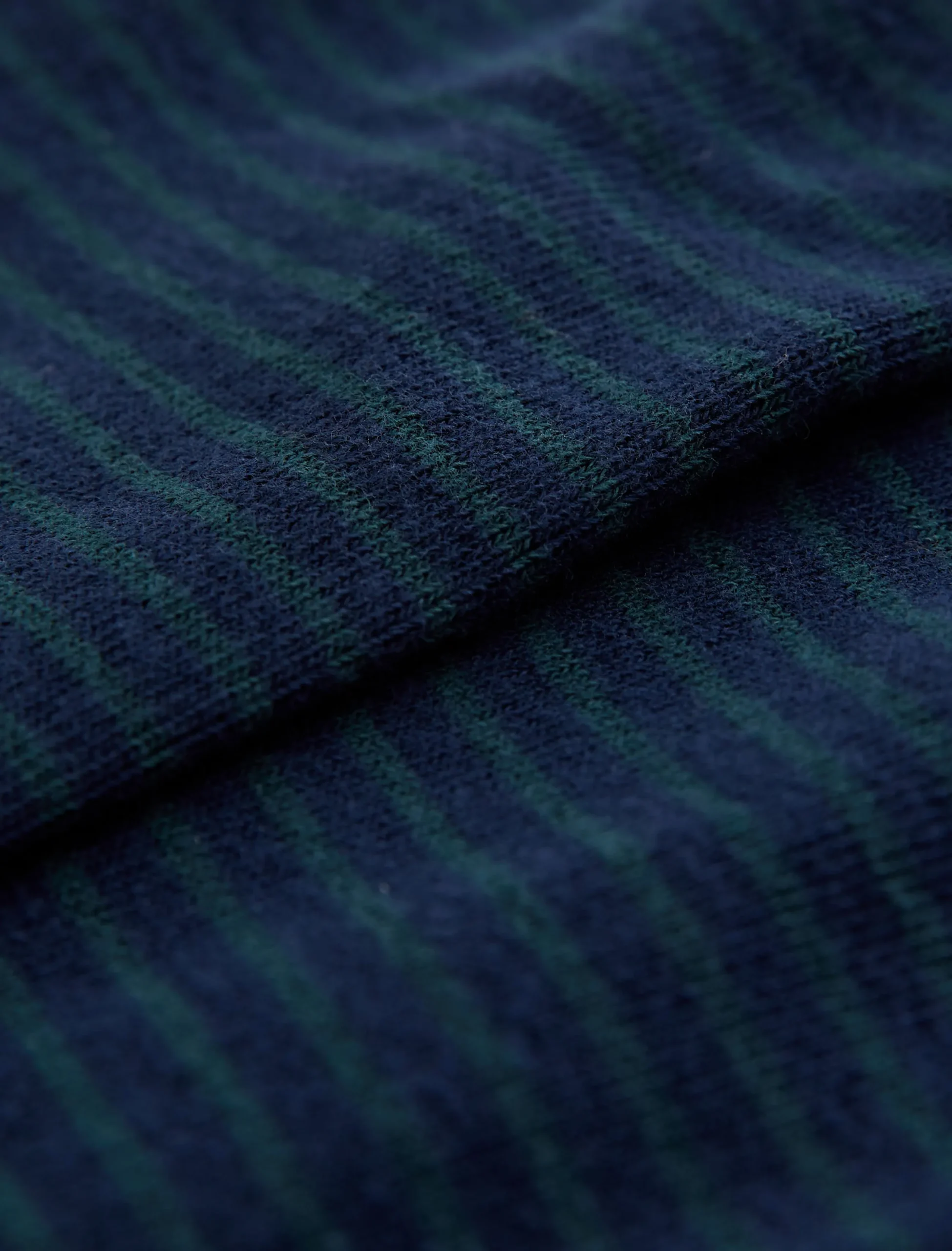This sock is our classic crew sock. Featuring a stripe pattern, this pair has been knitted from a comfortable cotton blend and ribbed through the ankles.