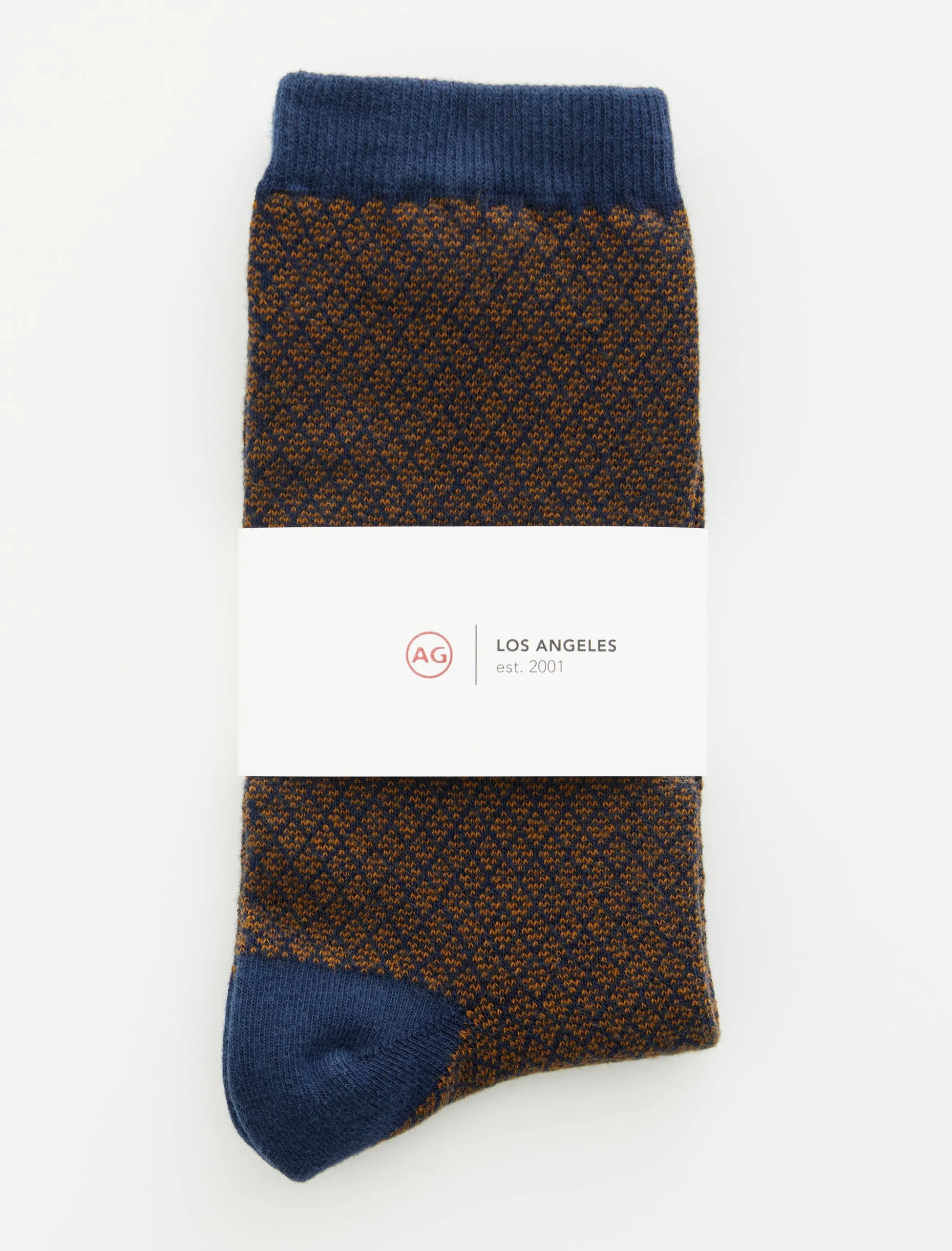 This sock is our classic crew sock. Featuring a diamond pattern, this pair has been knitted from a comfortable cotton blend and ribbed through the ankles.