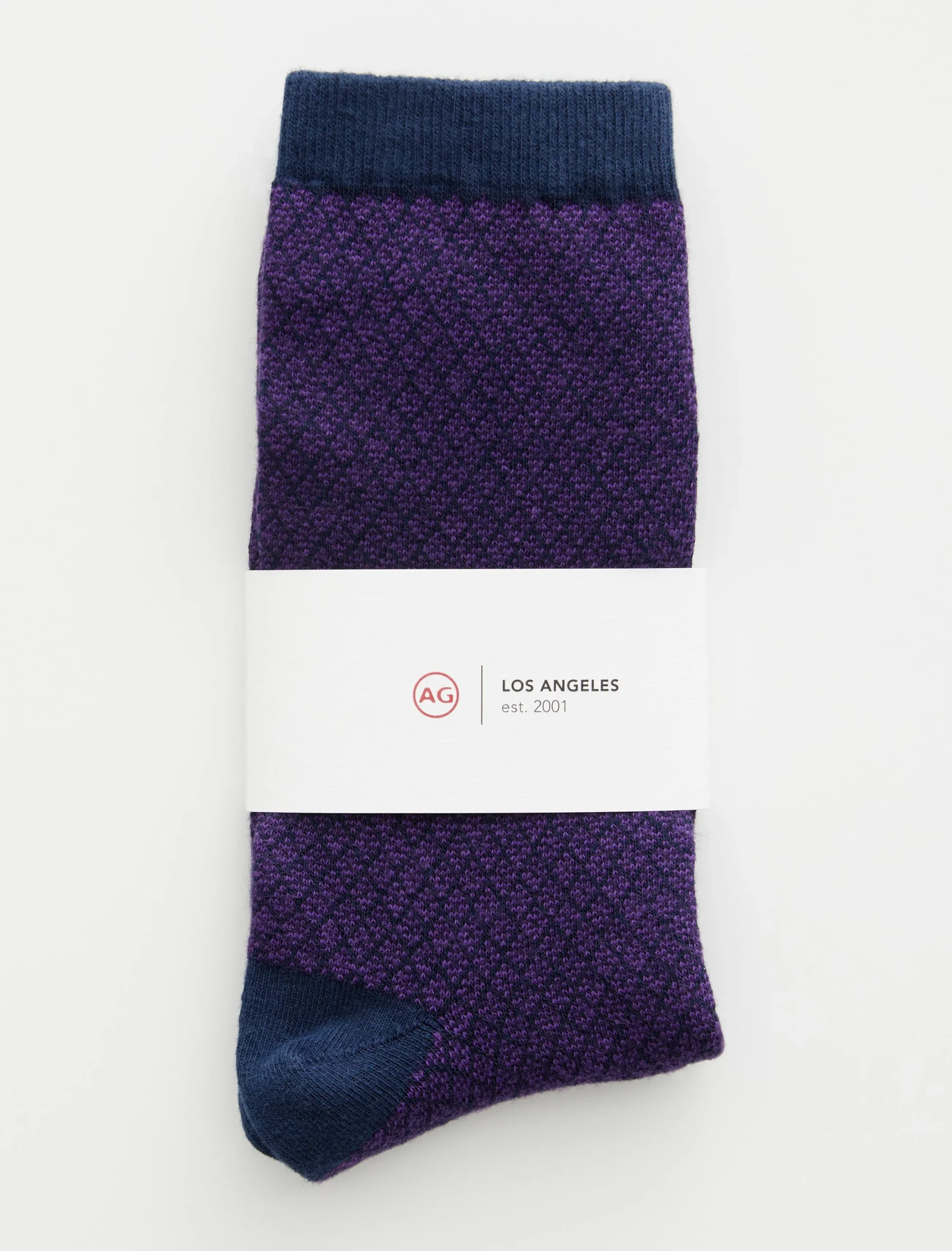 This sock is our classic crew sock. Featuring a diamond pattern, this pair has been knitted from a comfortable cotton blend and ribbed through the ankles.