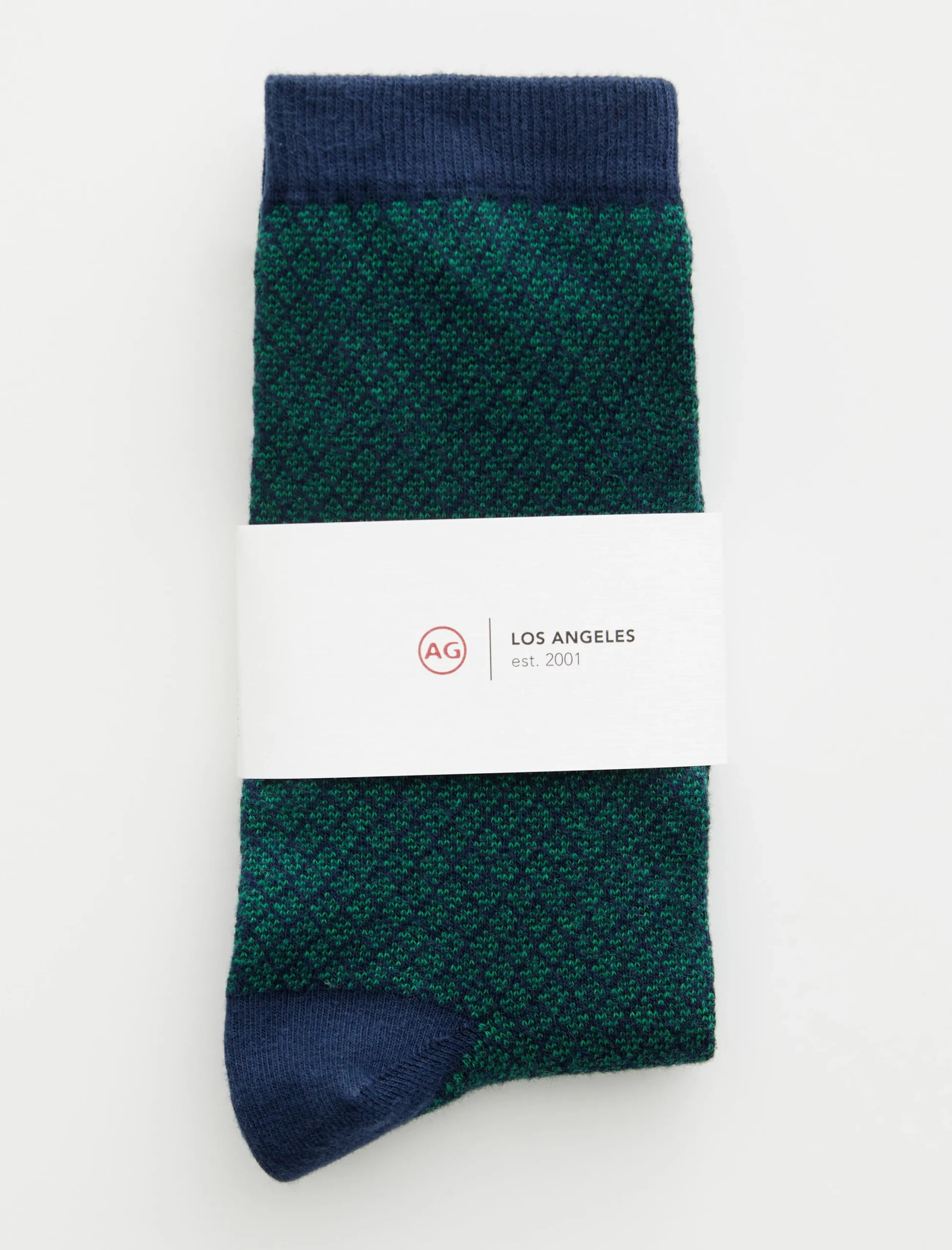 This sock is our classic crew sock. Featuring a diamond pattern, this pair has been knitted from a comfortable cotton blend and ribbed through the ankles.