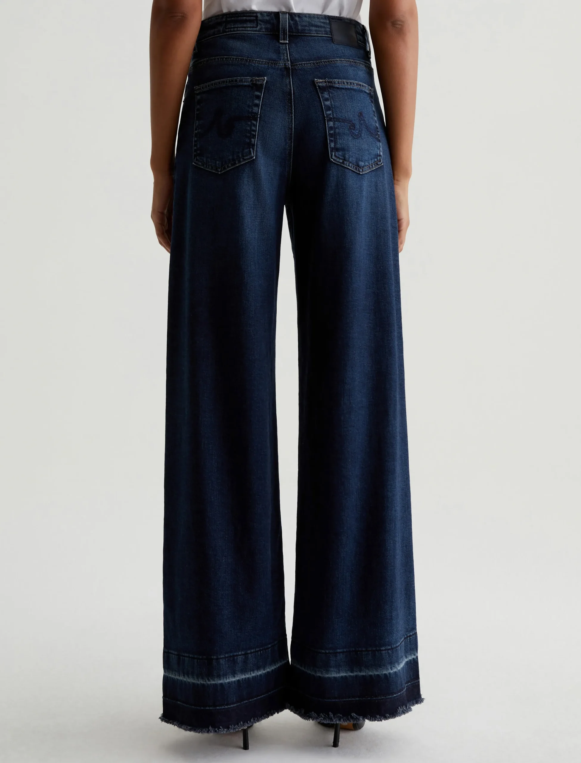 Deven is a wide-leg jean with an ultra-high rise and released hems for an extra-long inseam. This pair comes in 10 oz. Daytripper Stretch Denim with a dark indigo wash worn in by fading and whiskering.