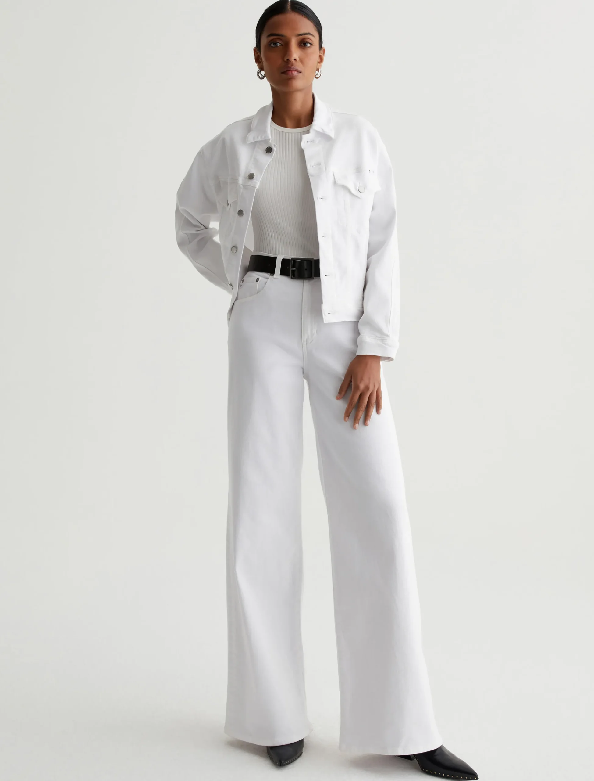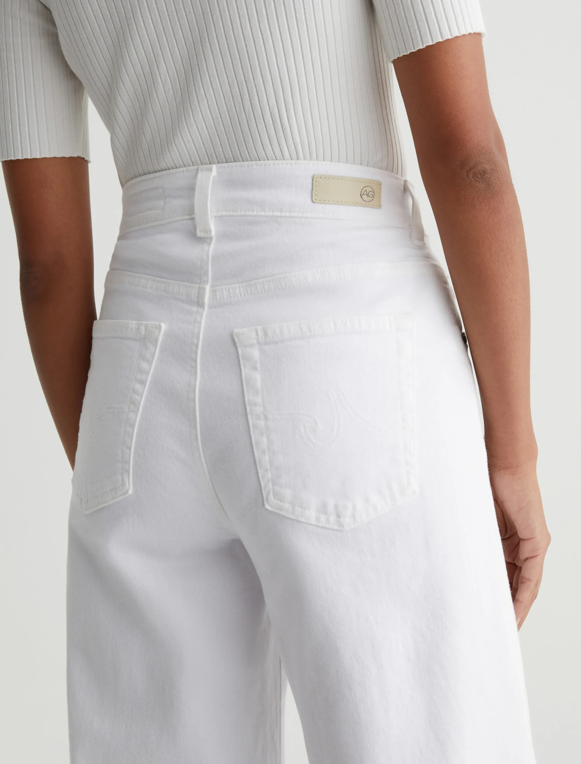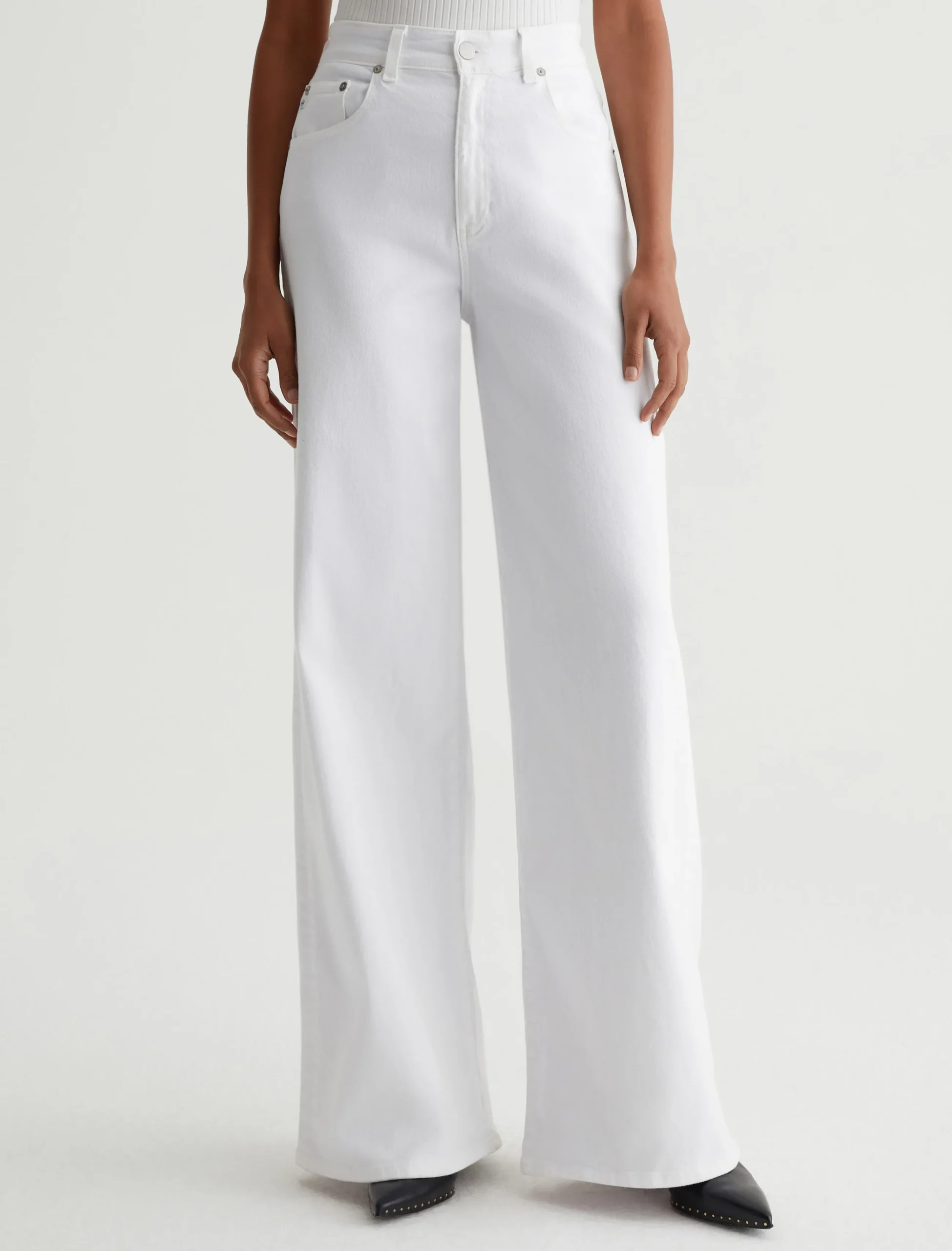 Deven is a wide-leg jean with an ultra-high rise and a floor-length inseam. Updated here in white, this pair features 9.7 oz. Hyper-Soft Stretch Denim, an exclusive AG Cloud Soft Denim™ fabric. It’s got special left-hand twill construction that allows the yarns to gently relax and untwist for a luxe, supple feel.