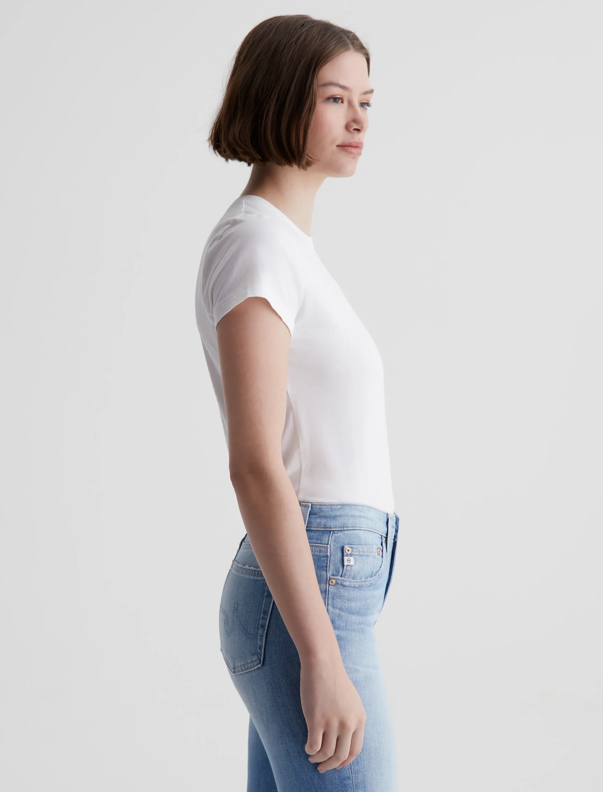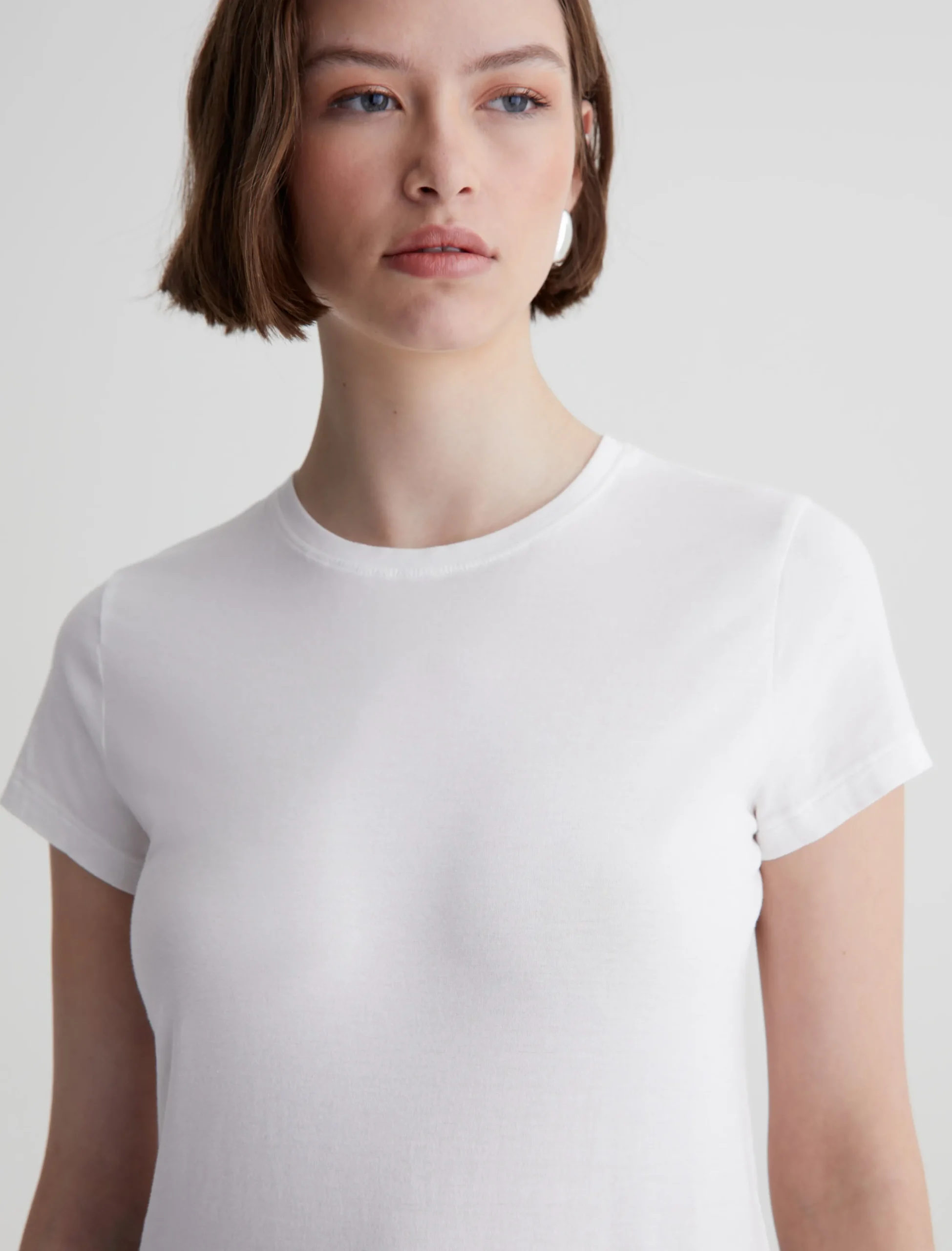 The perfect white tee to pair with everything in your closet. Our Ena classic crewneck T-shirt has a slim, straight fit that skims the body and looks just right tucked into your favorite jeans. This short-sleeve style is made from lightweight stretch jersey.