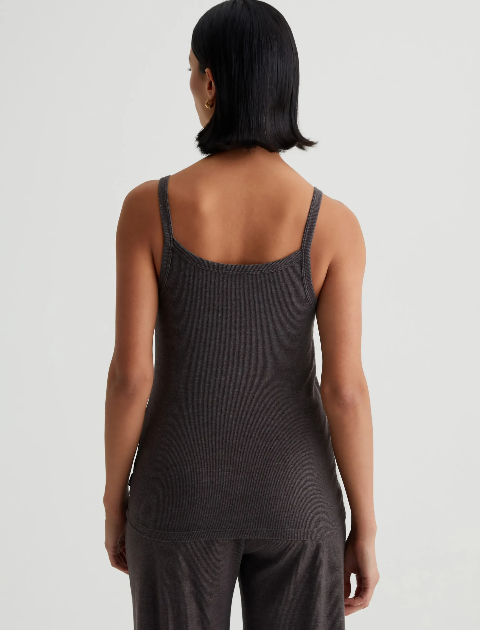 A luxe piece for lounging and layering, the Ever Tank has a slim fit and soft feel in our Mélange Snow Rib. Featured here in heathered Stone Brown, this strappy knit top naturally pairs with our Saamie Cardigan and Sourie pants to create a cozy-chic set.
