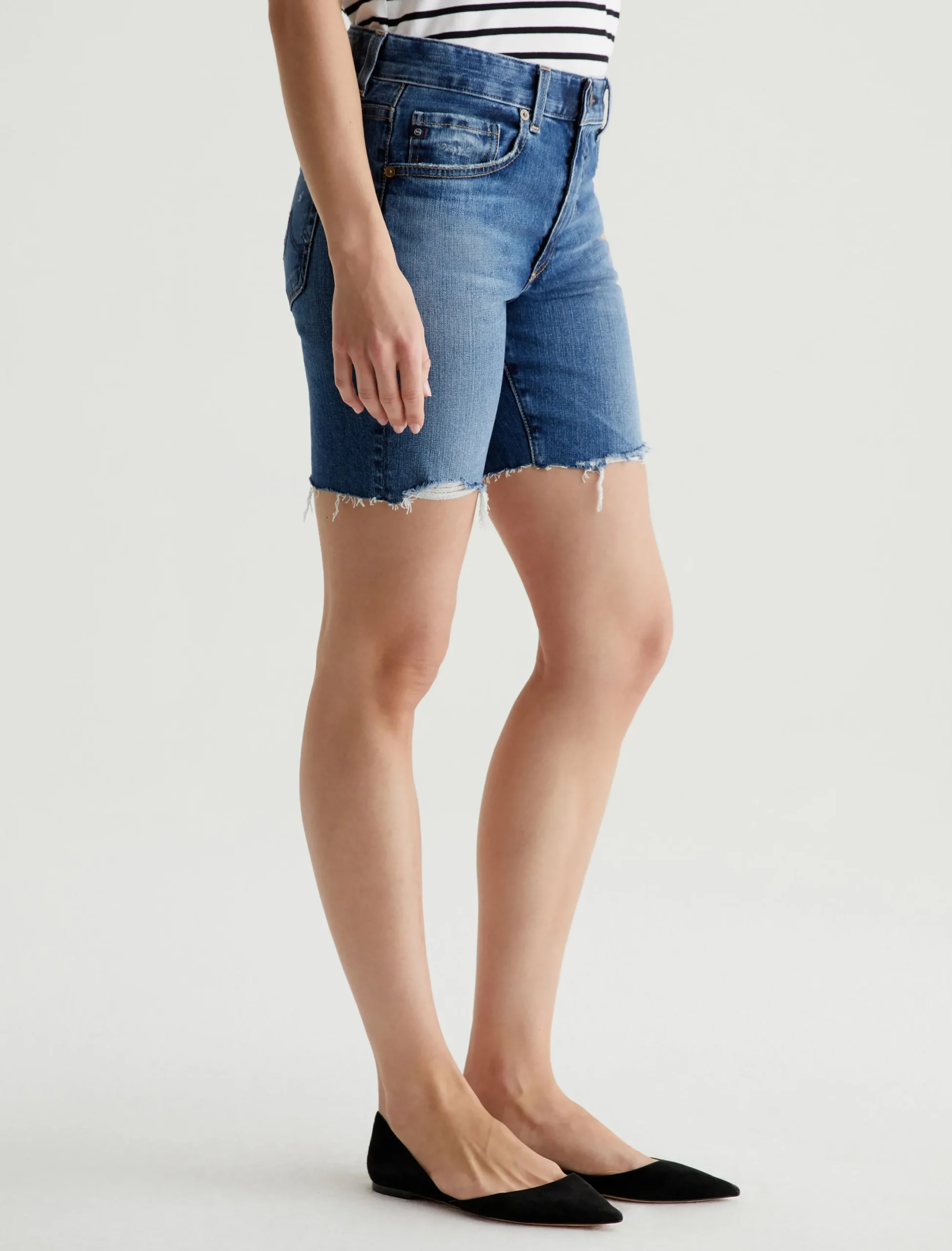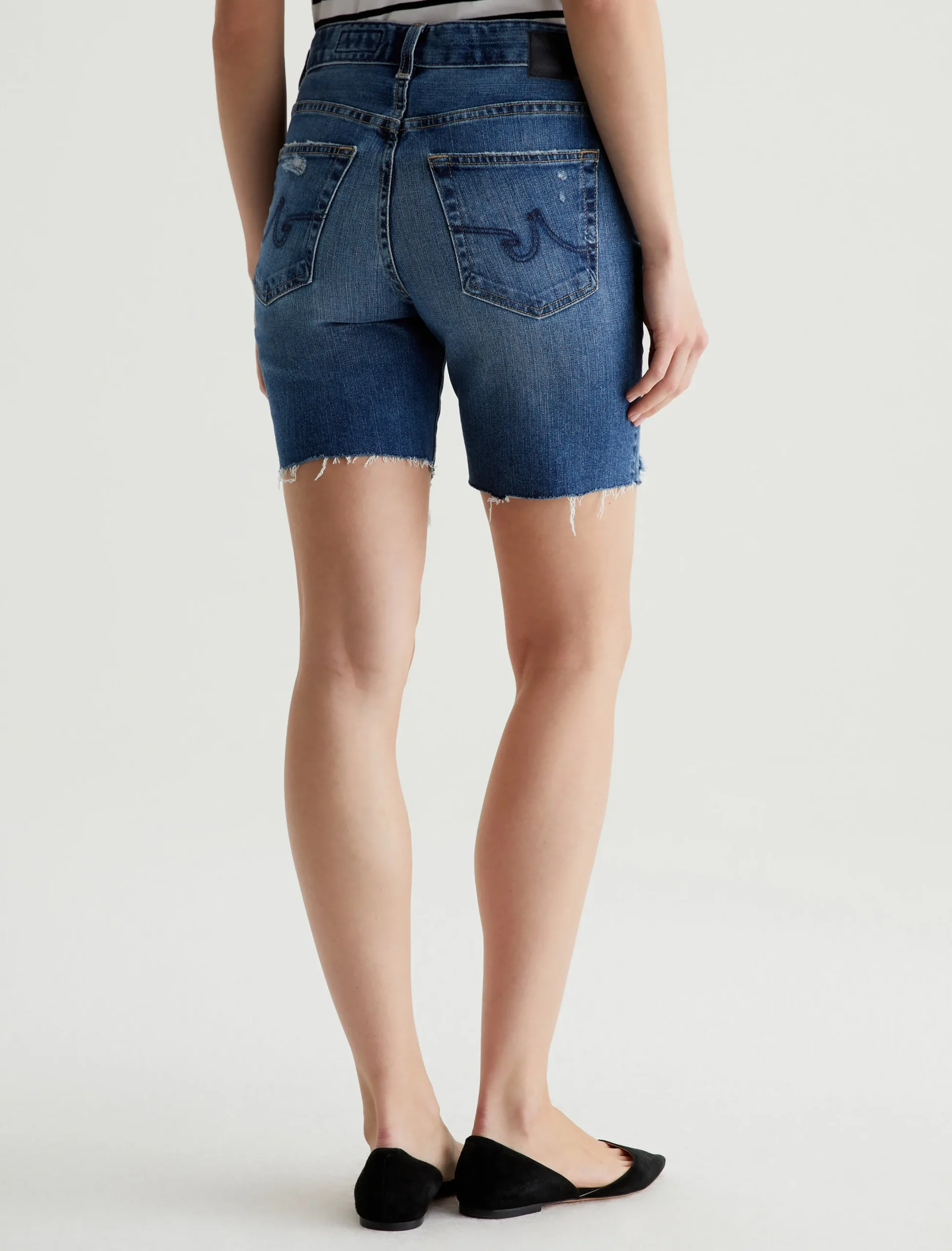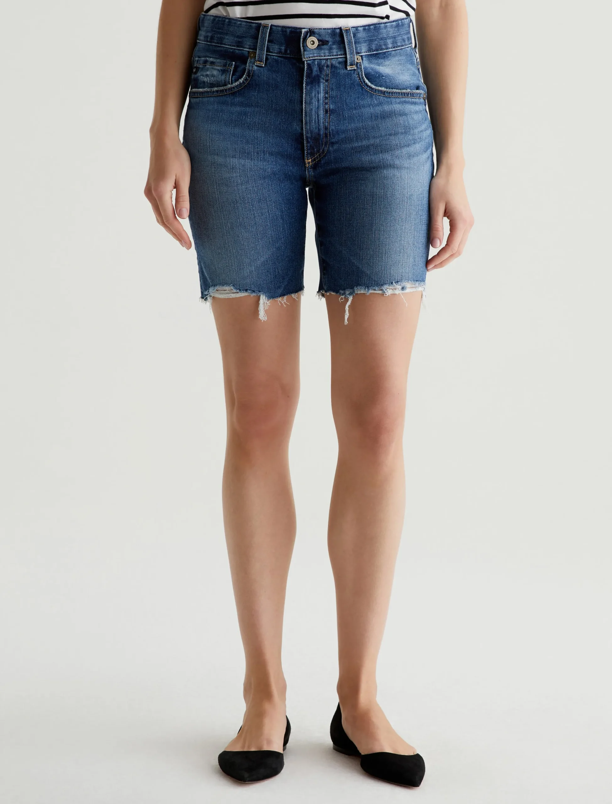 The Ex-Boyfriend Short is a mid-rise bermuda style with raw, slightly shredded hems. Designed for a slightly slouchy fit, these five-pocket shorts are crafted from 11 oz. Lead Denim that’s blended with stretch and washed to a faded medium indigo. Distressed pocket edges add an authentic lived-in finish.