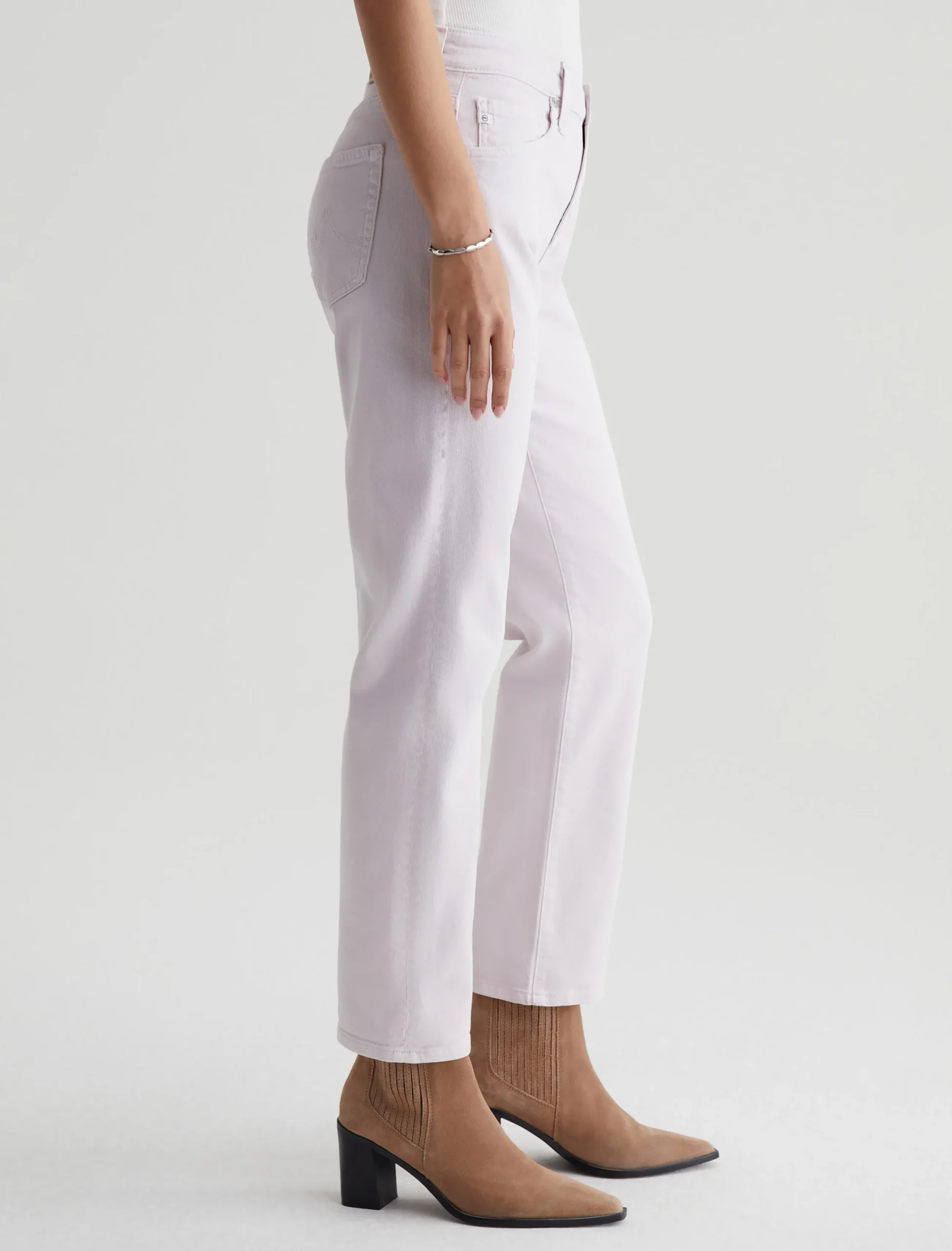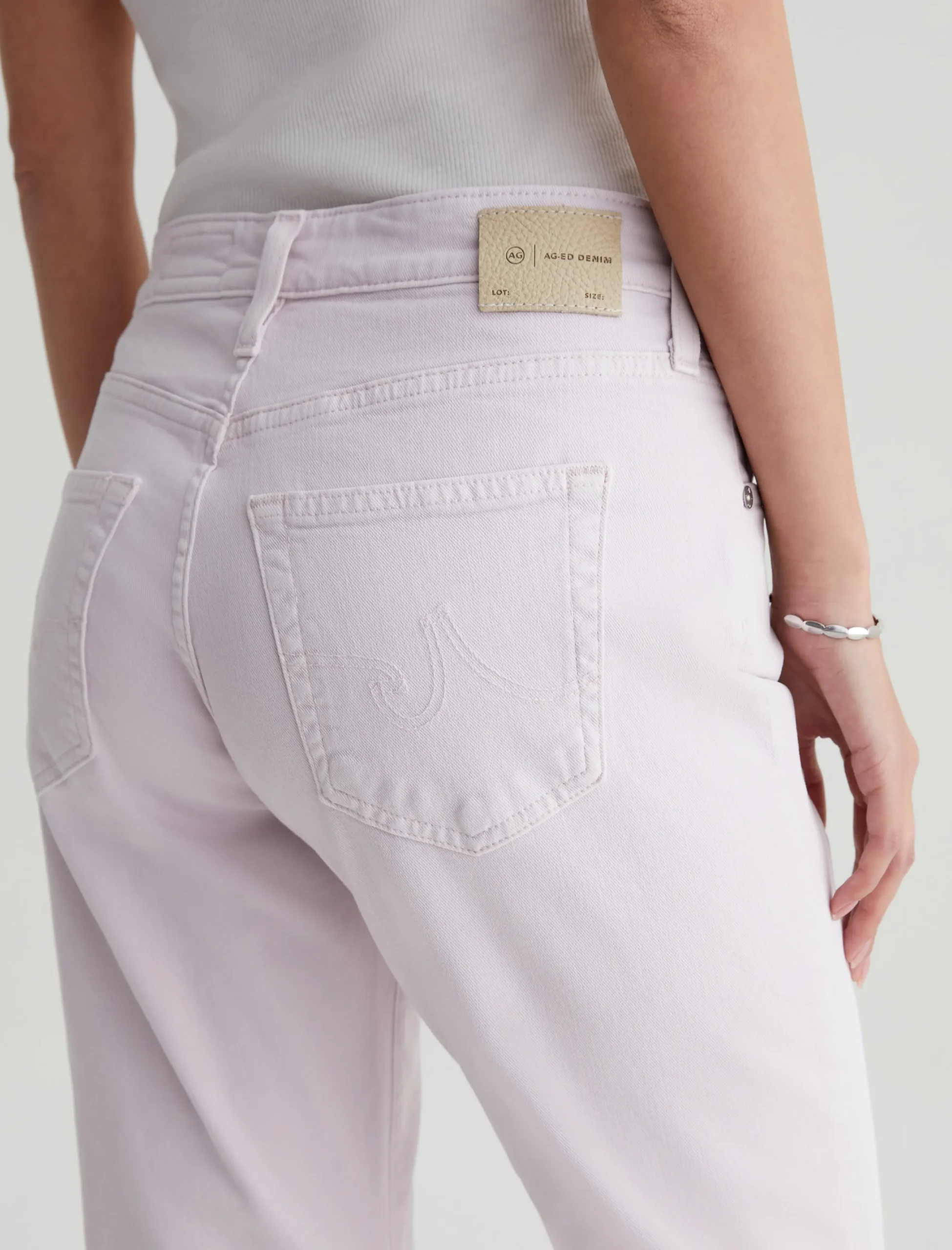 The Ex-Boyfriend Slim Jean is a slouchy slim fit in a sulfur-dyed pale purple color. Made from our exclusive AG Cloud Soft Denim™, these relaxed five-pocket jeans come in 8.7 oz. Hyper Soft Bull Denim, our special left-hand twill fabric that allows the yarns to gently relax and untwist for a luxe, supple feel. It’s designed to get even softer the more you wear it. Two-way stretch offers extra comfort and a resilient shape.