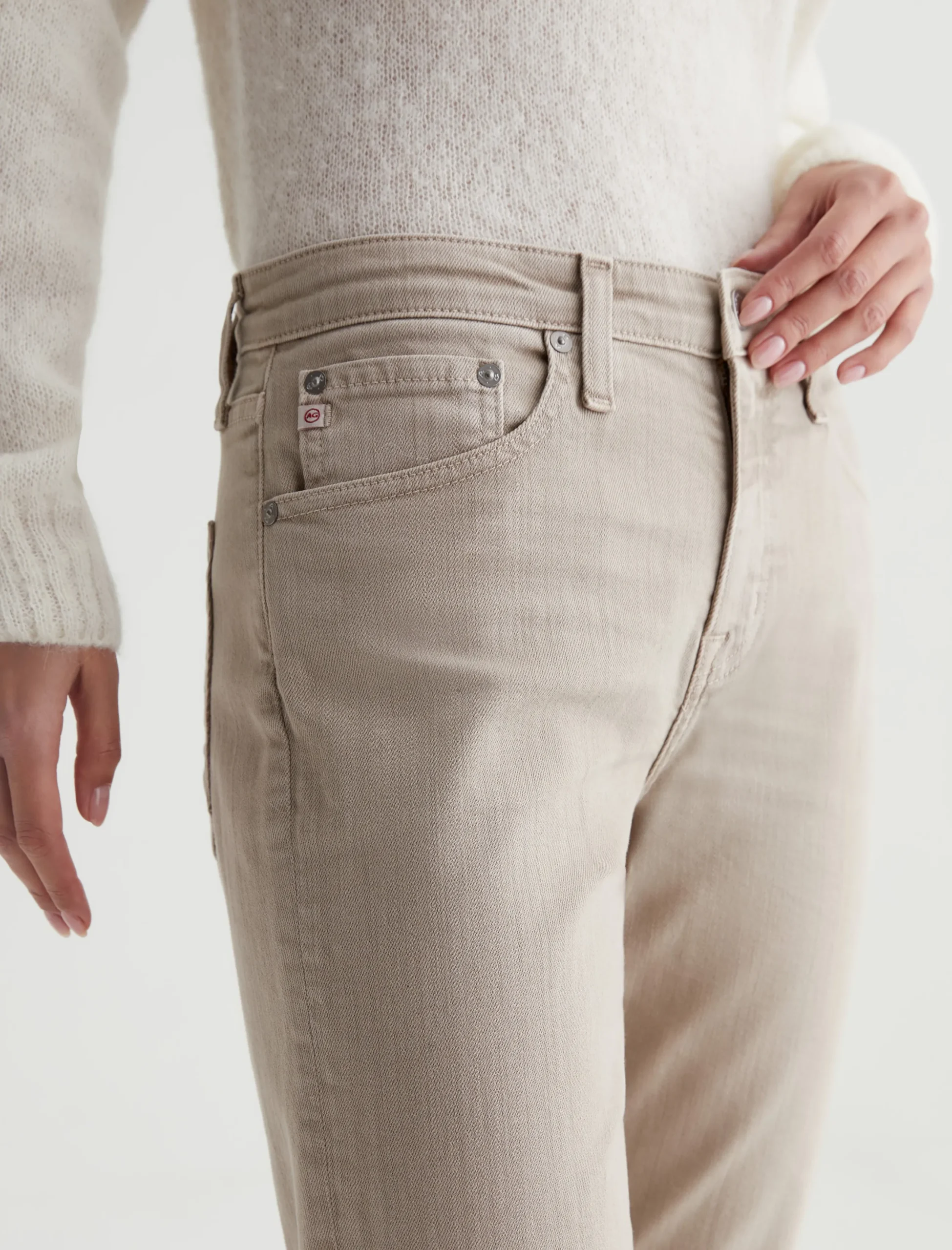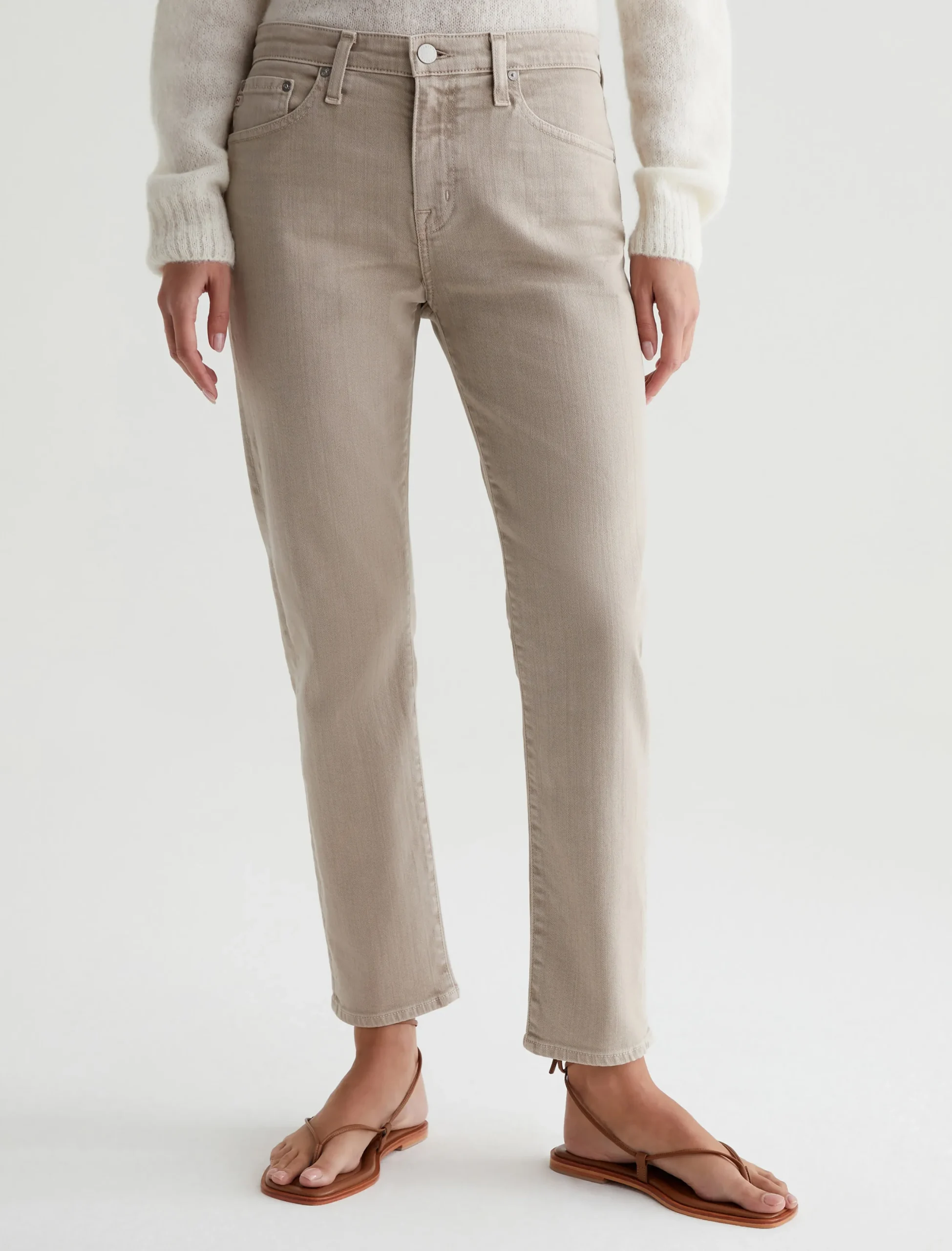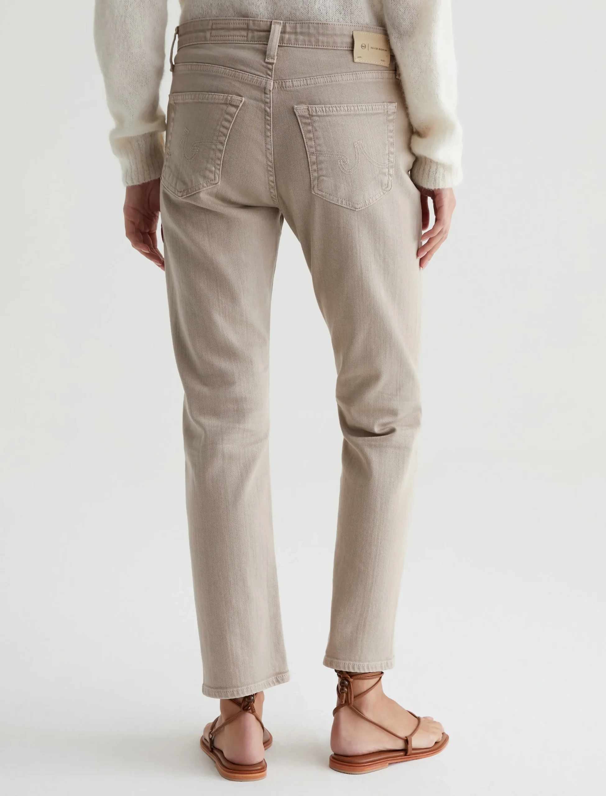 The Ex-Boyfriend Slim jeans for women feature an AG-ed™ khaki wash with a 5-year fade. This style has a mid-rise waist and a relaxed fit from hip to the knee before slightly tapering at the leg opening. These five-pocket boyfriend jeans are designed in 10 oz. Dover Stretch Denim for premium comfort.