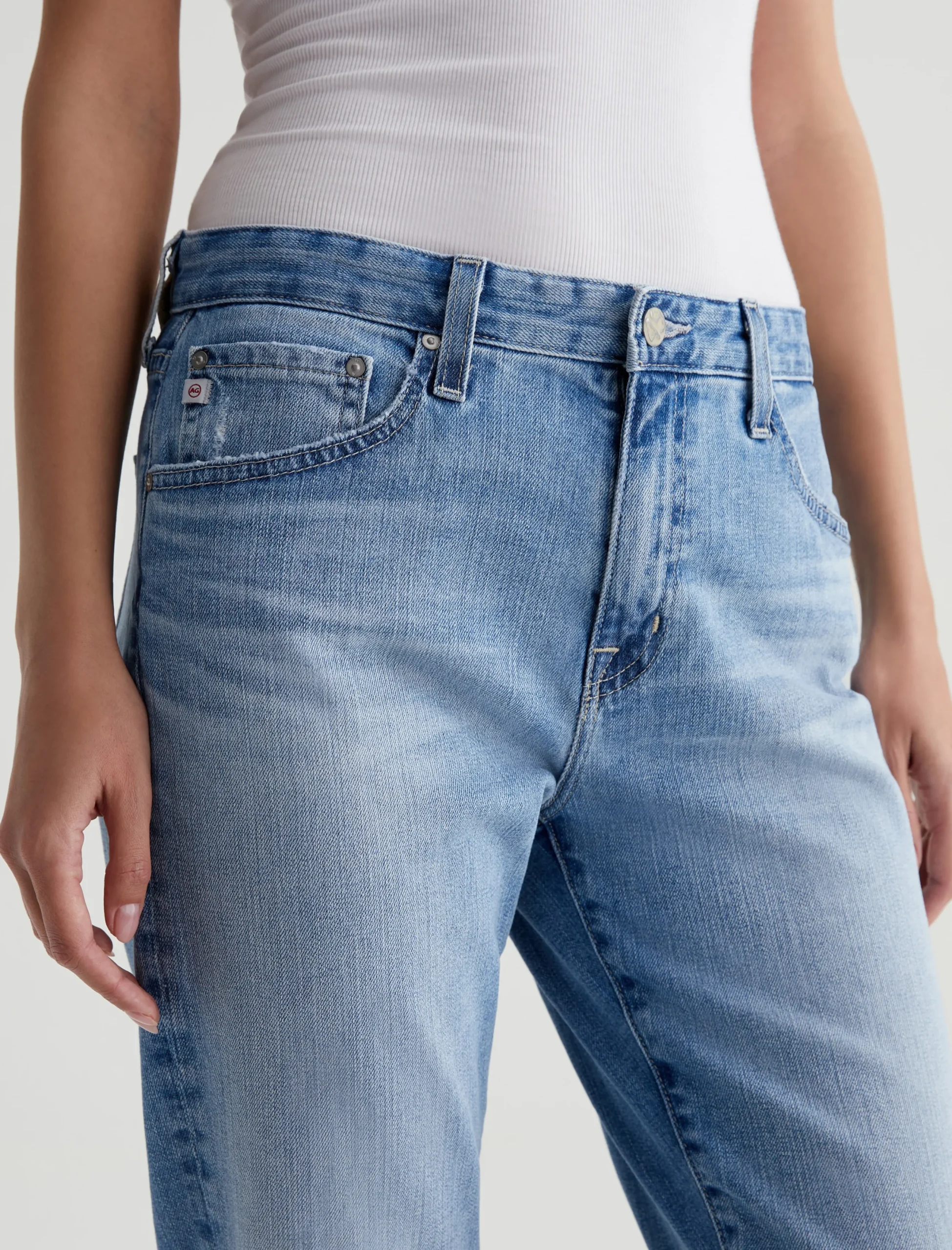 Our Ex-Boyfriend Slim jean for women features an authentic 22-year AG-ed™ wash that’s been faded to mimic the authentic worn-in character of vintage jeans. Cut with a flattering mid-rise waist, this five-pocket pair fits slouchy and relaxed from hip to knee before slightly tapering at the leg openings for a slim finish. These women’s boyfriend jeans are designed in 11 oz. comfort-stretch Lead Denim.