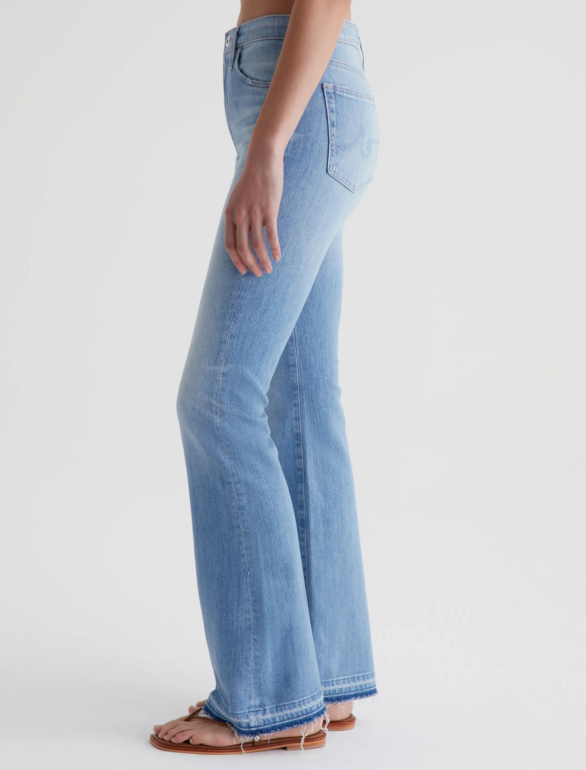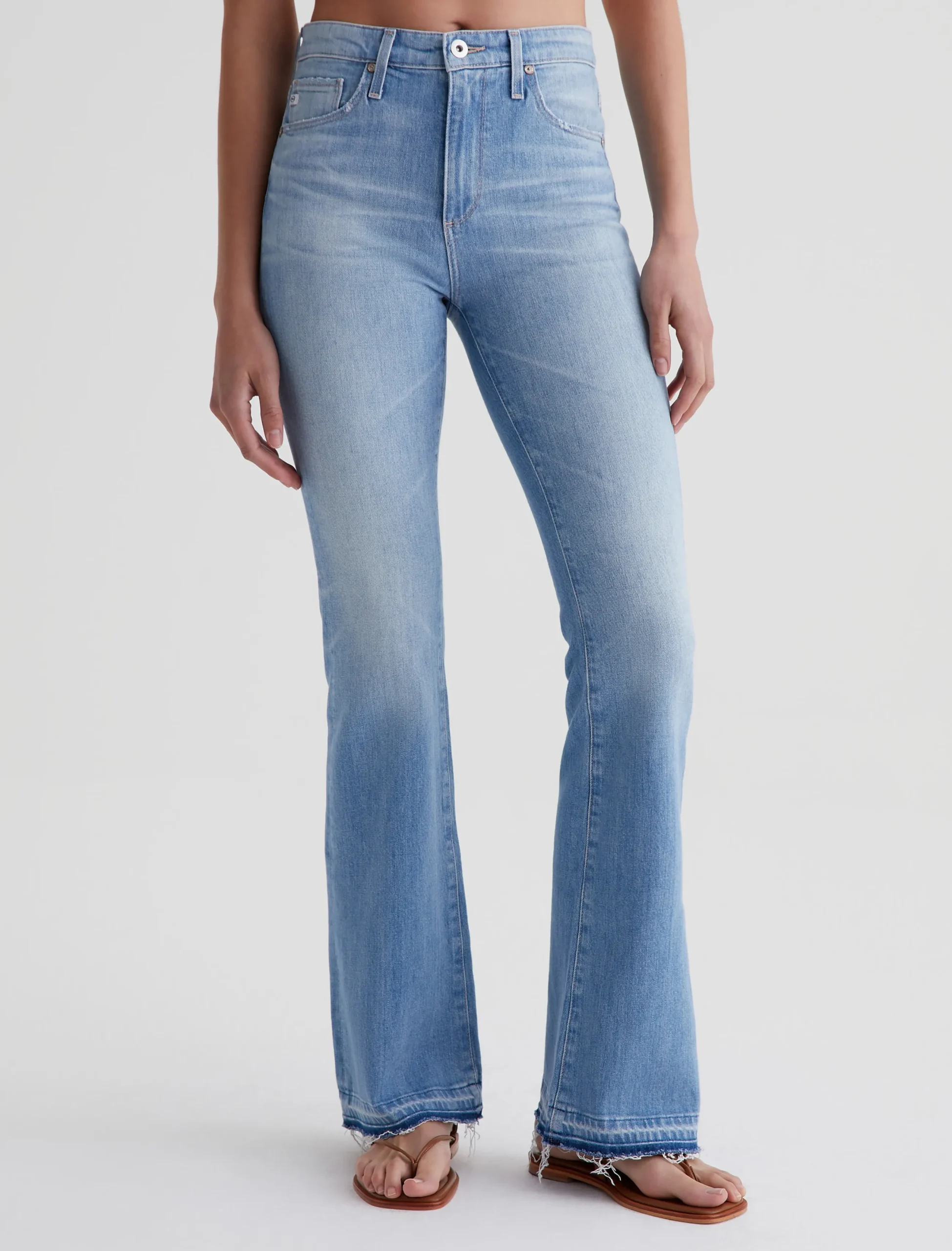 The Farrah Boot is our mid-rise bootcut jean updated by a light, faded wash and let-down hems. Crafted from stretch-blend 11 oz. Journey Denim, these women’s jeans sit right at the natural waist and have a skinny fit through the legs before opening into a subtly flared shape. Complete with worn pocket edges.