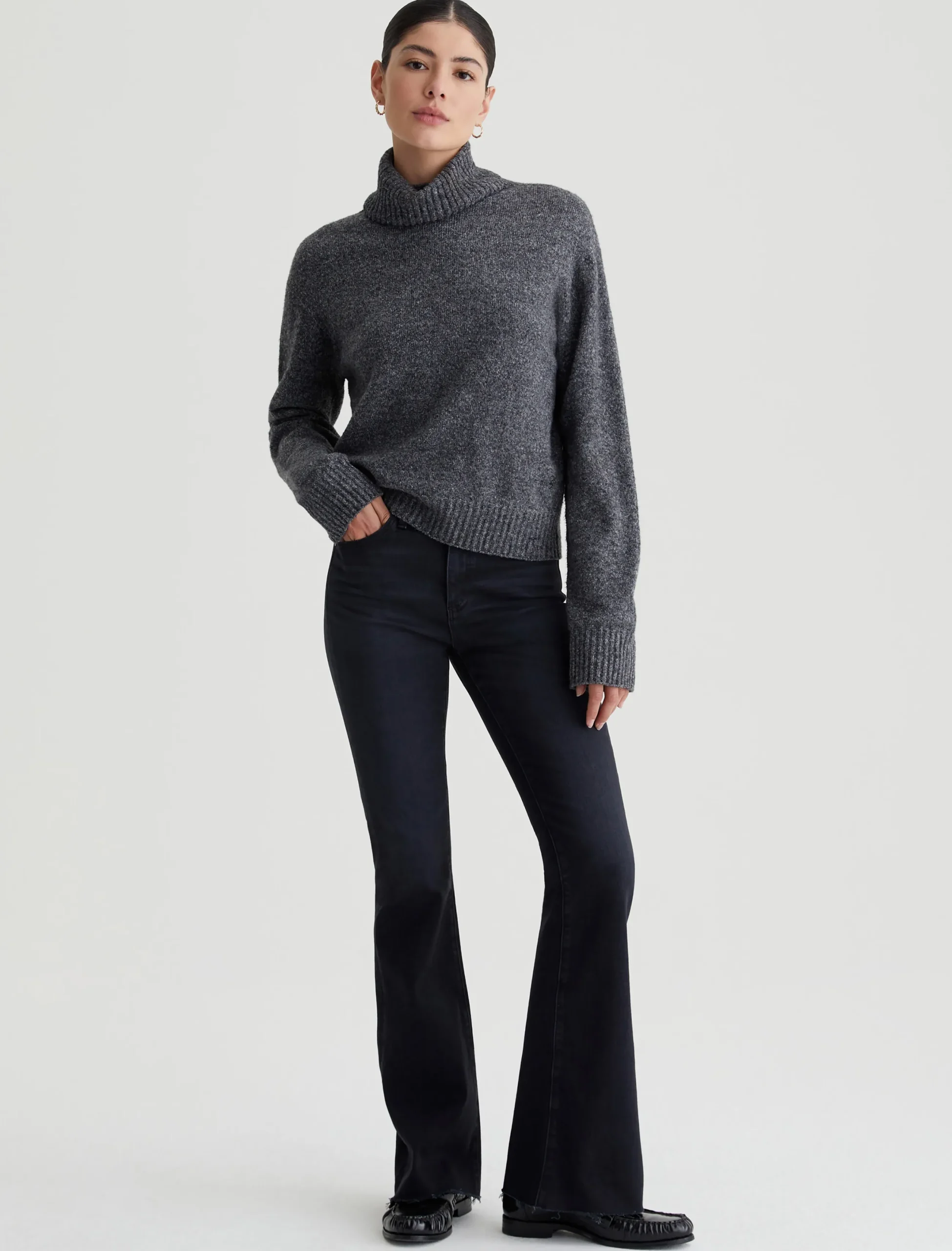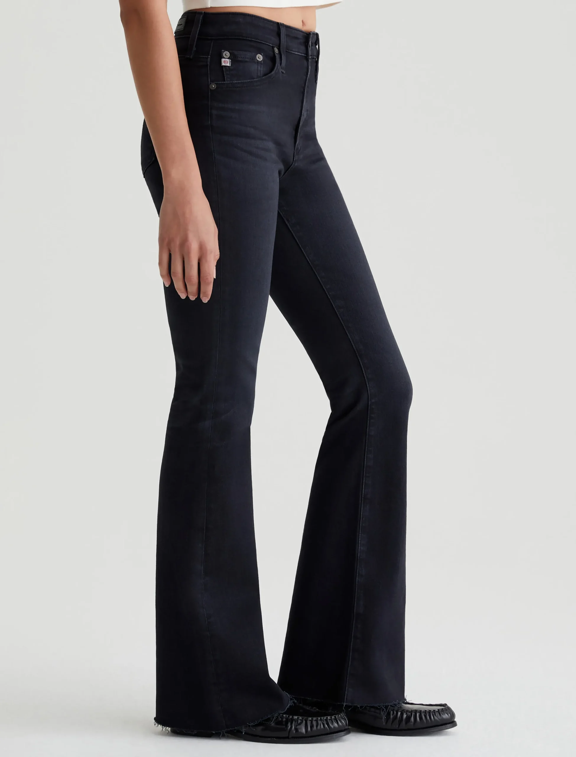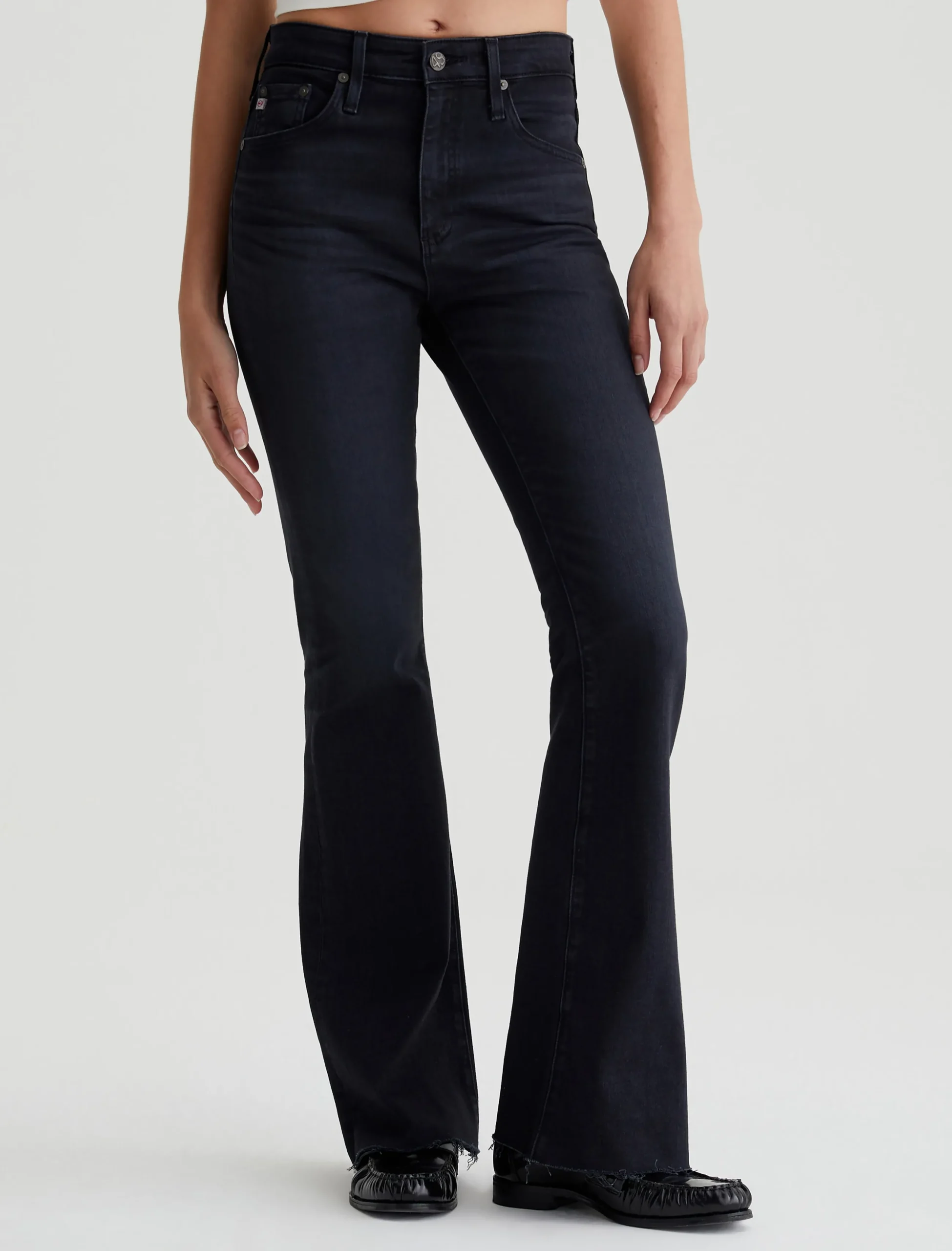 The Farrah Boot is a mid-rise bootcut jean with an AG-ed™ black wash and raw hems. Crafted from 10 oz. Ashen Stretch Denim, it’s faded and whiskered to emulate 4 years of natural wear. The pair sits right at the natural waist and has a skinny fit through the legs before opening into a subtly flared shape.