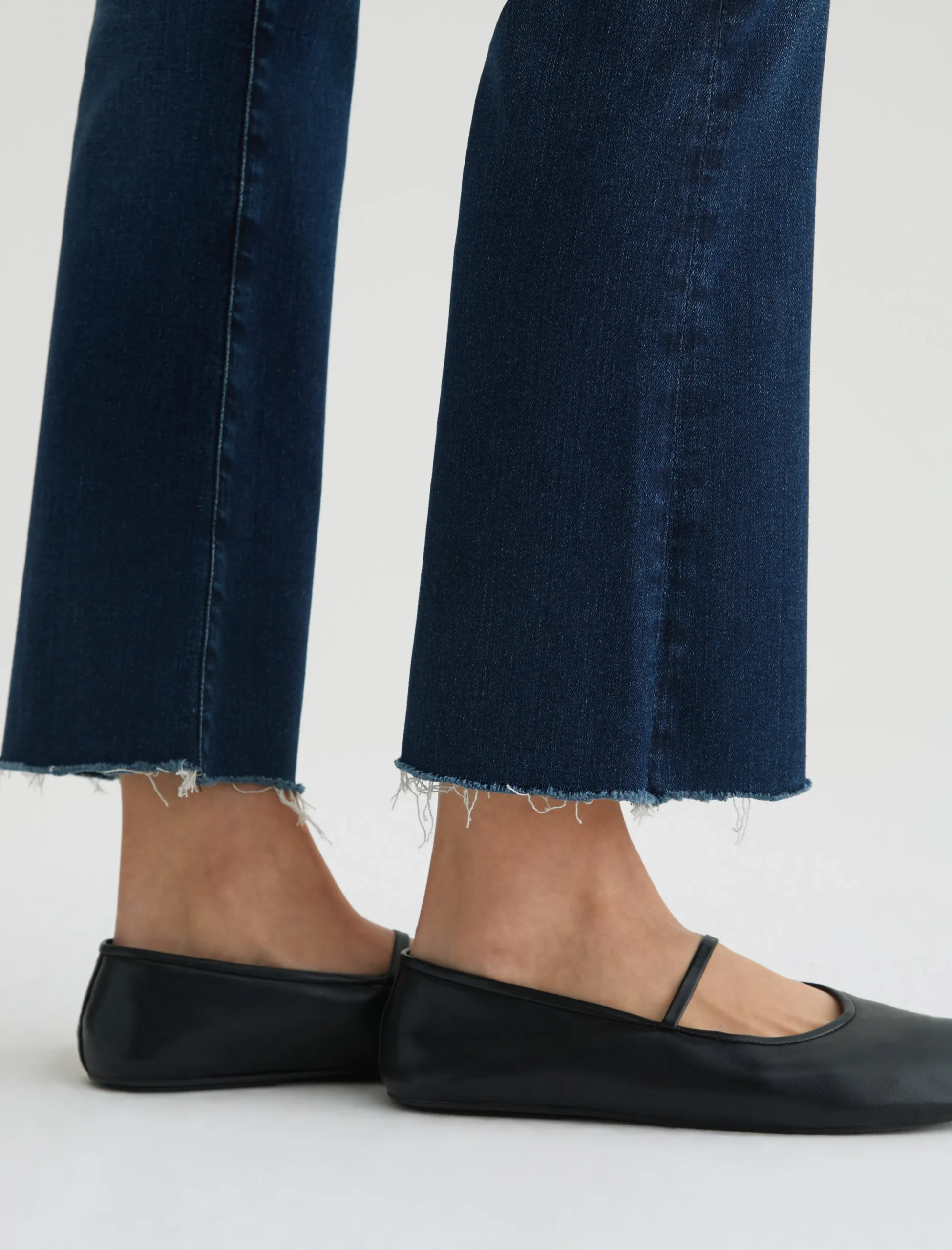 Our Farrah Boot Crop features a mid-rise bootcut silhouette with raw, cropped hems. Crafted from 10 oz. superstretch Empower Denim, the AG-ed™ pair features a dark blue wash worn in by fading, whiskering, and subtle distressing at the pockets.These women’s bootcut jeans sit right at the natural waist and has a skinny fit through the legs before opening into a subtle flare.