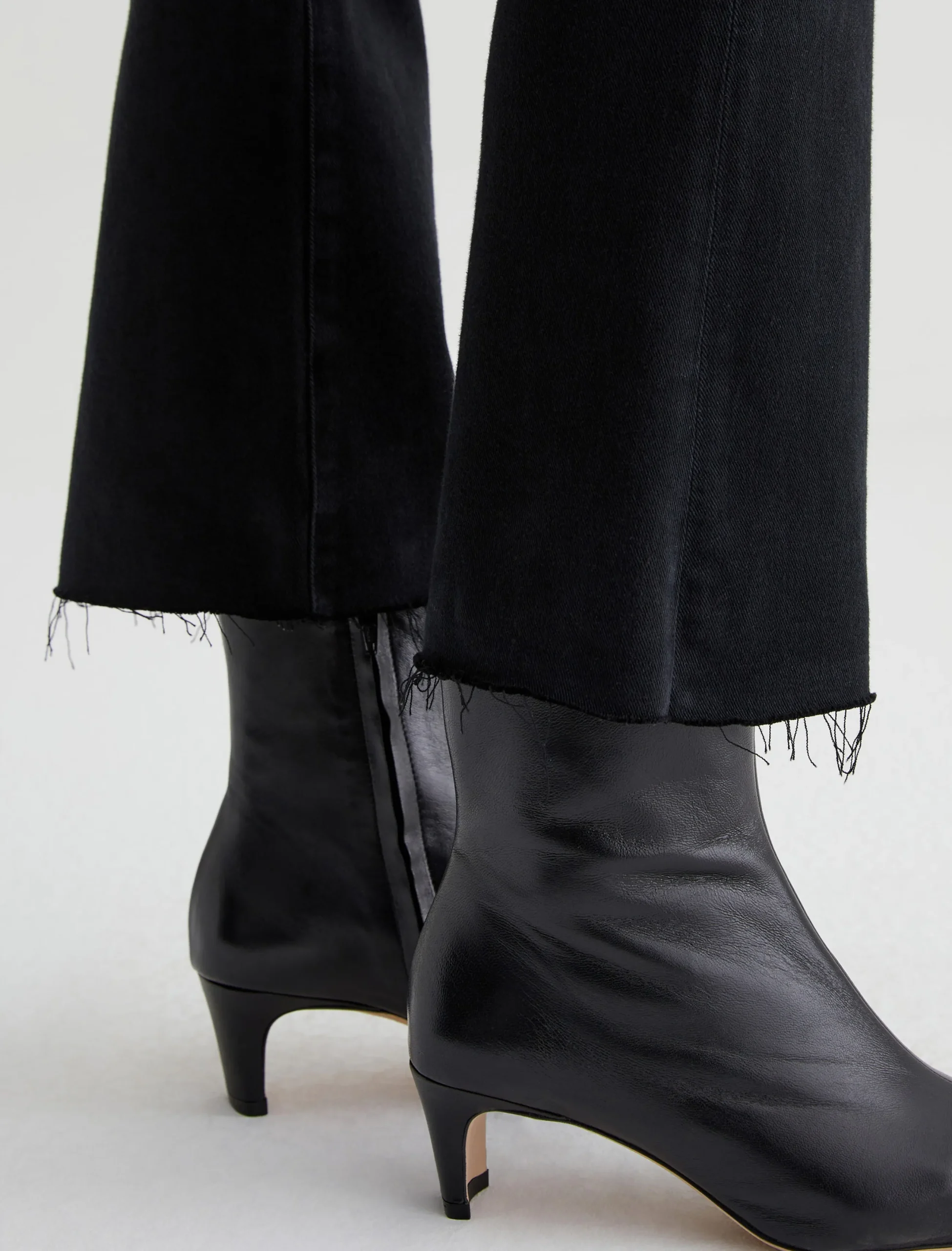 The Farrah Boot Crop jean is a mid-rise cropped bootcut silhouette that’s been sulfur-dyed for a soft black shade. The pair has a skinny fit through the legs before opening into subtly flared raw hems. Made from our exclusive AG Cloud Soft Denim™, these women’s bootcut jeans are designed in 8.7 oz. Hyper Soft Bull Denim, a left-hand twill fabric that allows the yarns to gently relax and untwist for a supple, velvety-soft feel. It’s designed to get even softer as you wear it. Superstretch construction offers added comfort and enhanced recovery.