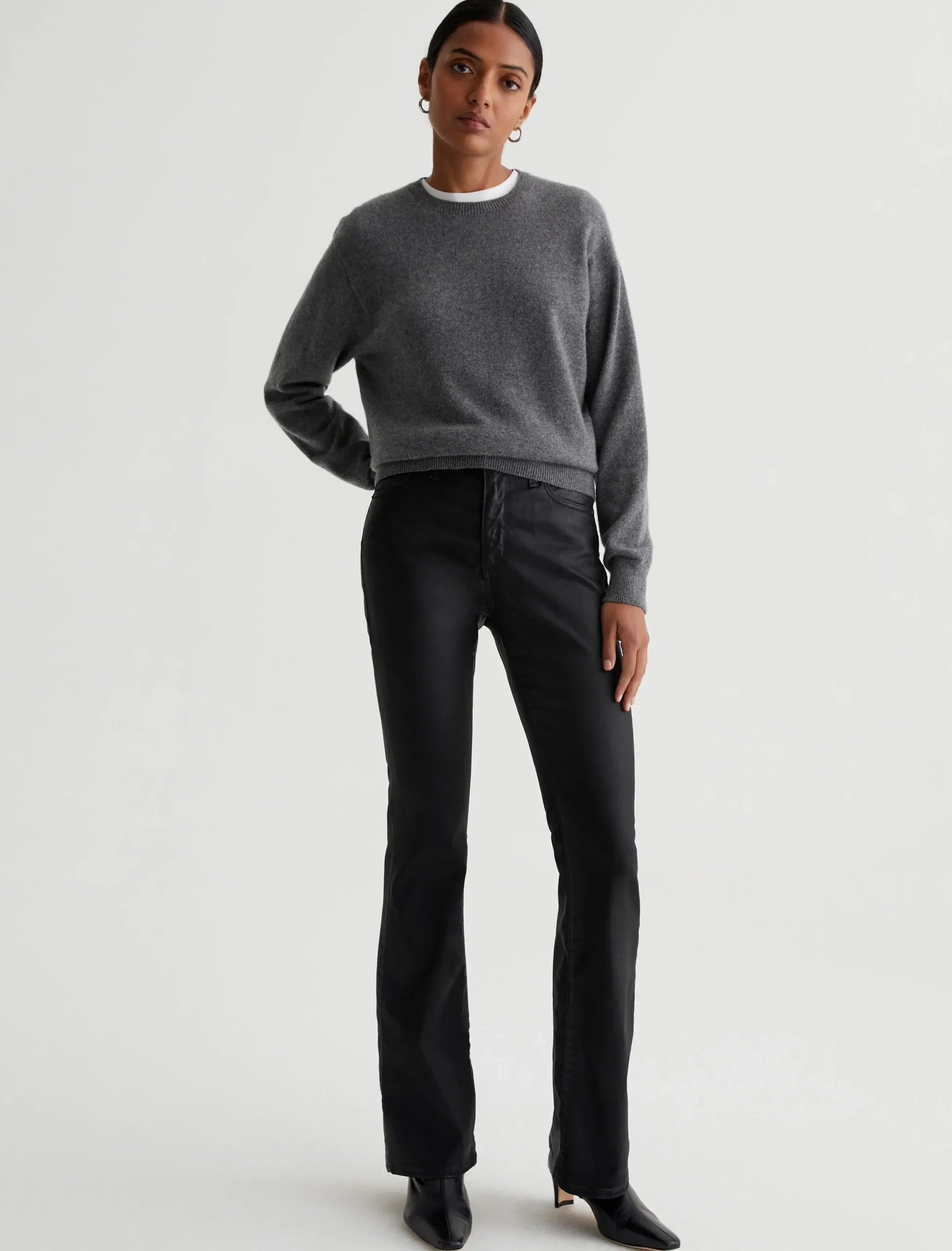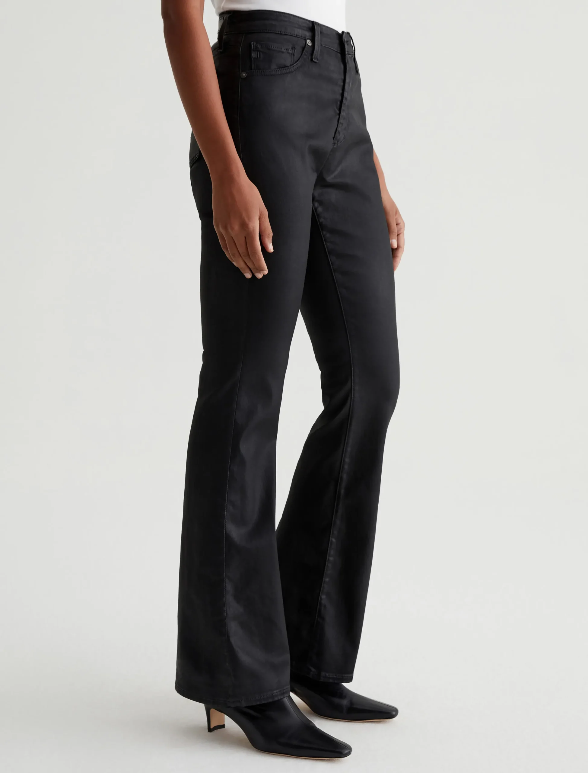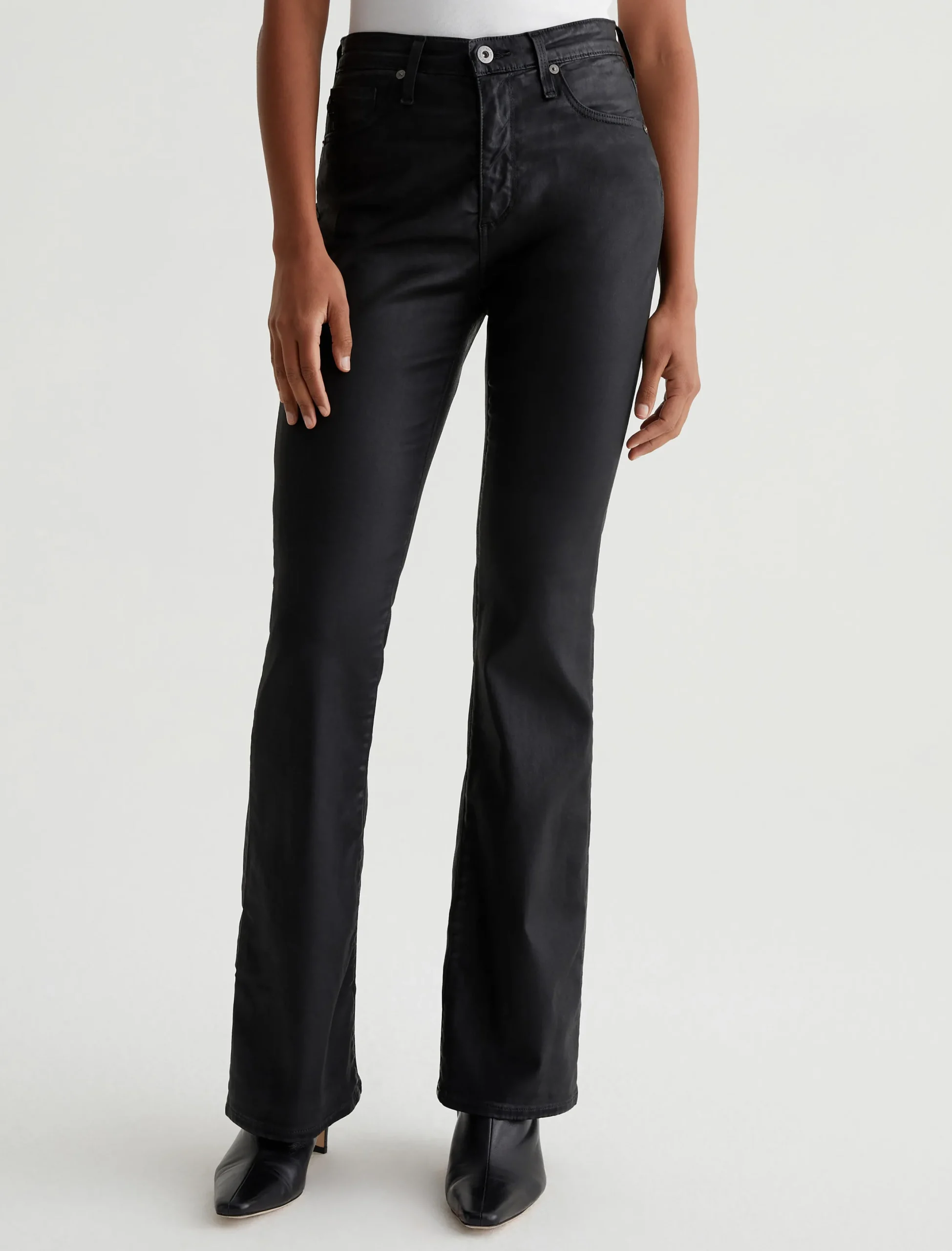 The Farrah Boot features a flattering bootcut silhouette in rich black with a glossed leatherette finish. Made from 7.8 oz. Luscious Super Stretch Sateen, the style has a mid-rise waist and a skinny fit through the legs before opening into subtly flared hems.