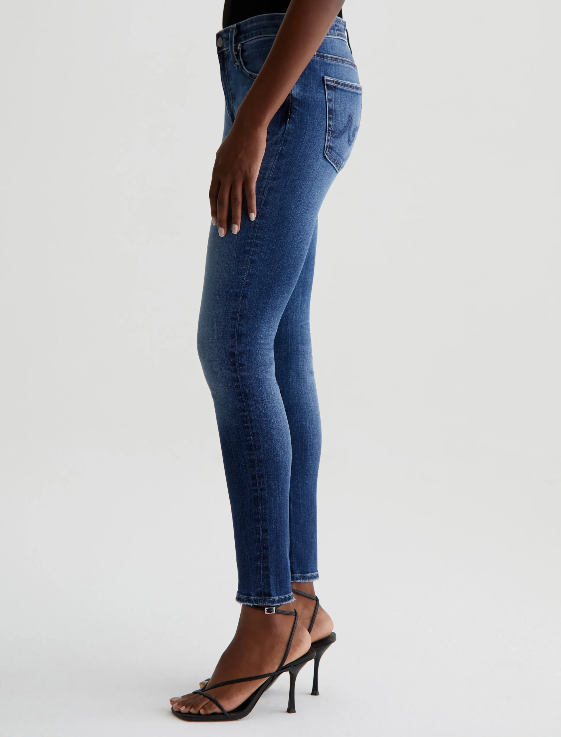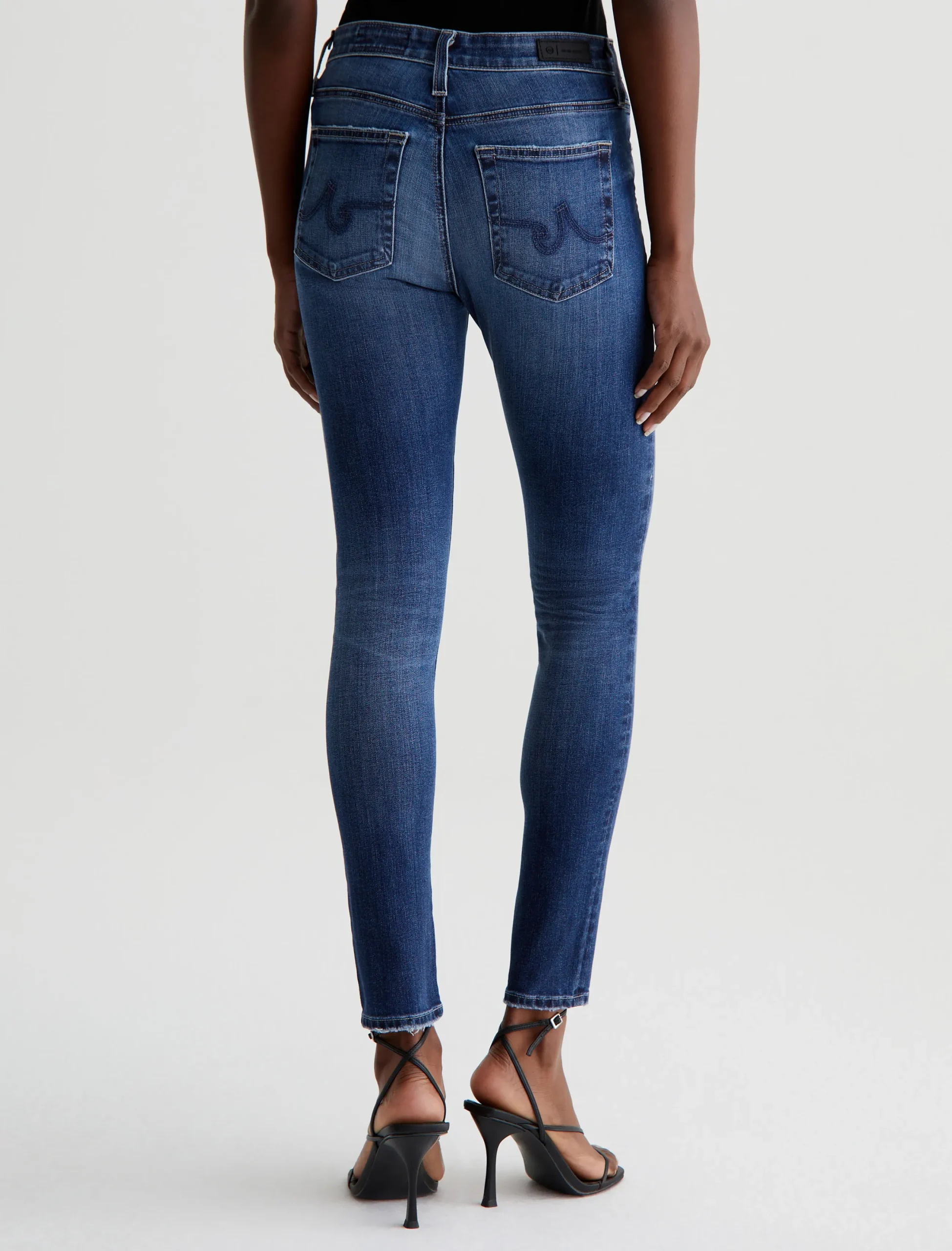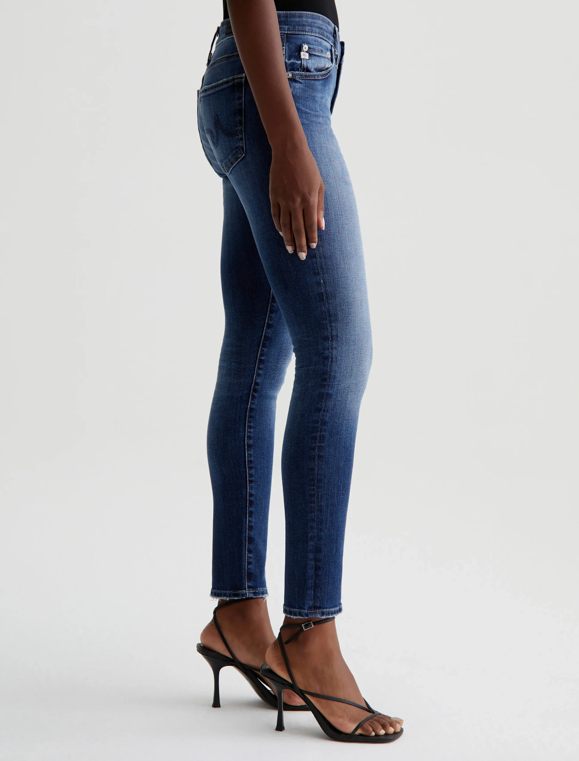 The Farrah Skinny Ankle jeans have a streamlined silhouette in an 11-year dark wash with fading, softened pocket edges, and subtle wear at the hems. Cropped to the ankle, these women’s mid-rise skinny jeans are cut from 10 oz. Rouge Advanced Stretch Denim that hugs the figure and keeps its shape beautifully.