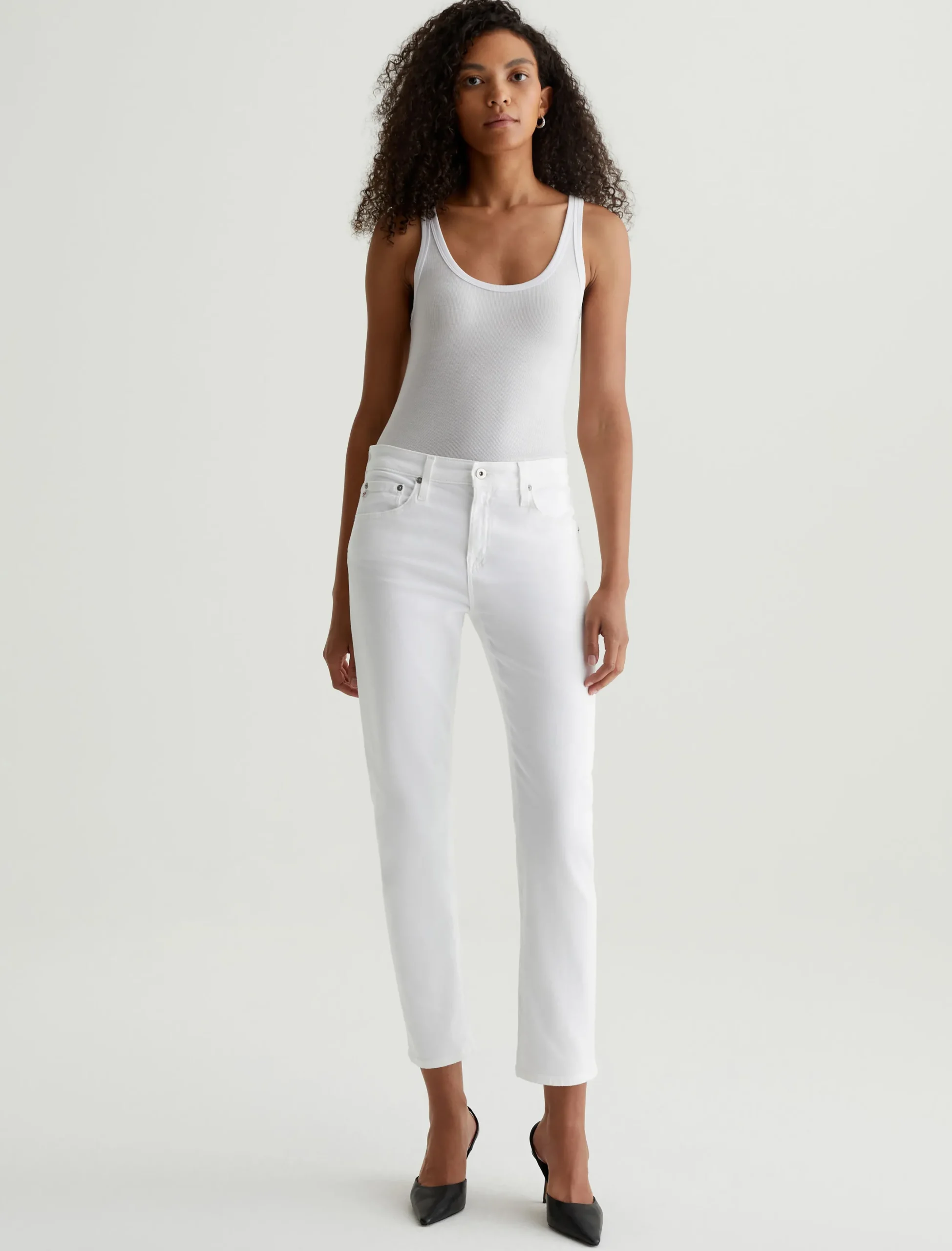 The Jaxon Tank for women features a fitted silhouette with a scoop neckline and slim straps in a racer-inspired shape. An instant go-to in bright white, this women’s tank top has self-binding details for a clean, timeless aesthetic that’s versatile and easy to layer. It’s designed an eco-friendly 2×1 lyocell rib fabrication, offering soft and luxurious wider rib construction.