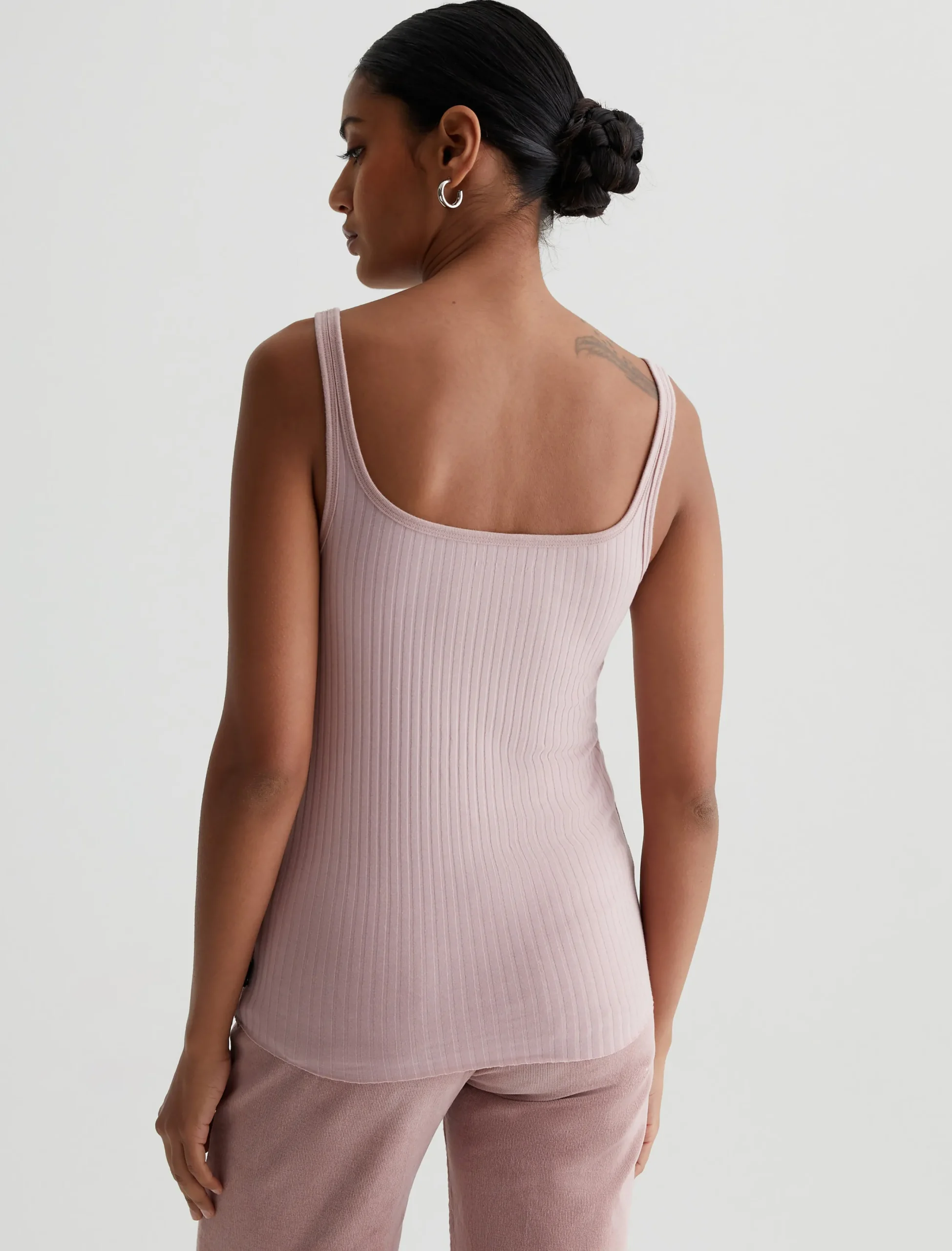 The Jenci Tank sits comfortably close to the body in a soft, stretch-blend rib knit. Featuring a blush-pink color, it’s cut for a slim fit and has a rounded square neckline with binding at the edges.