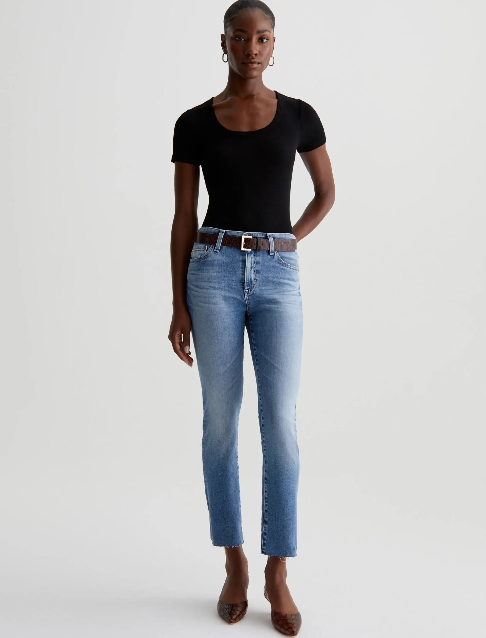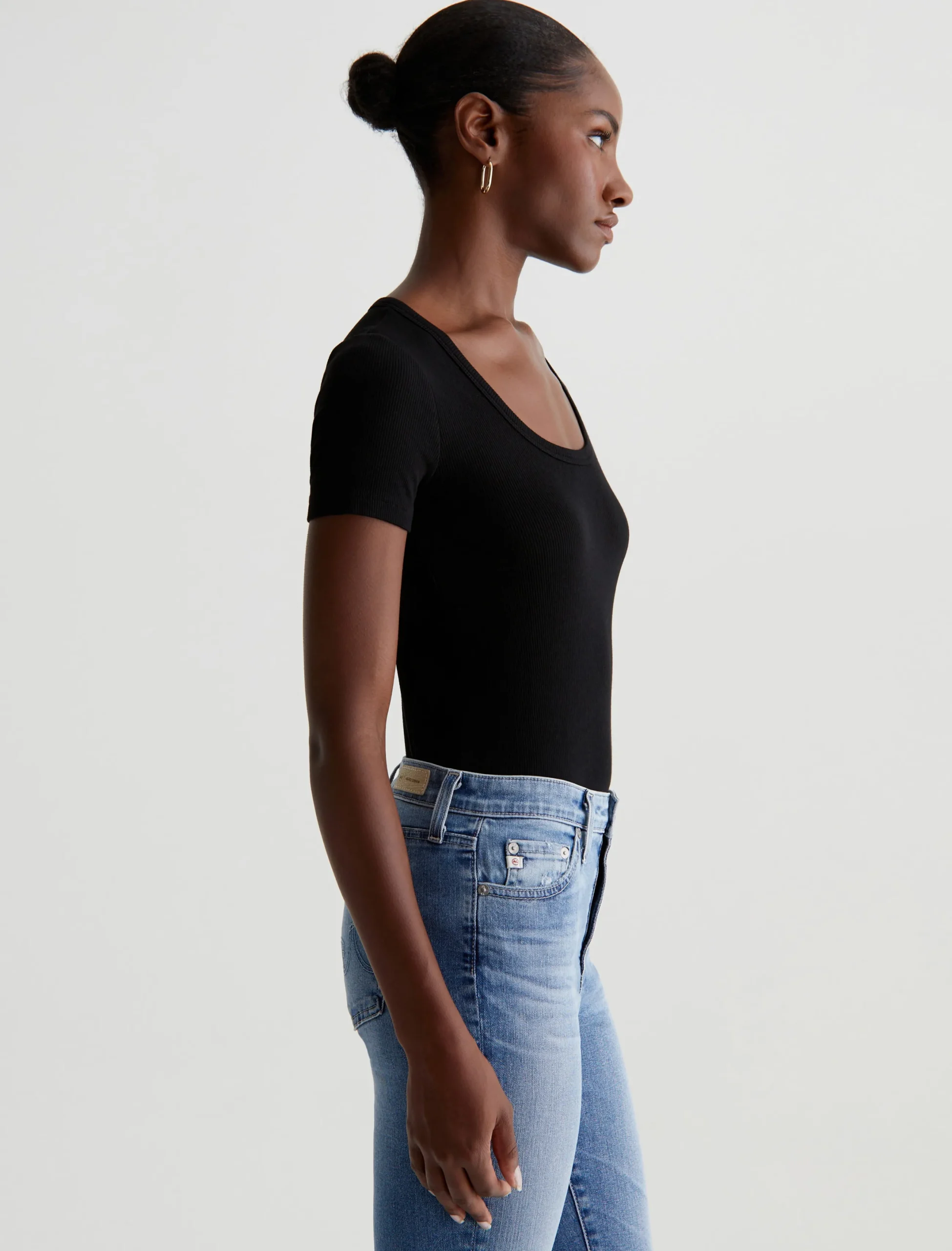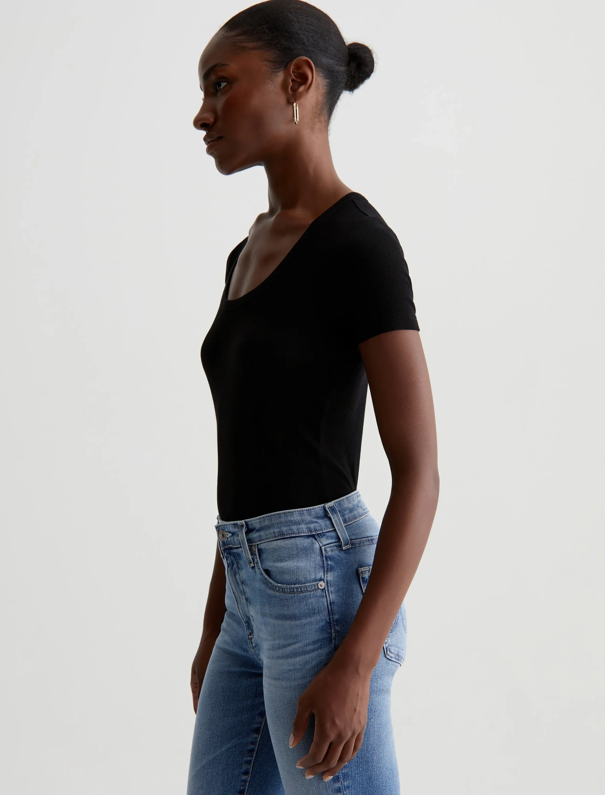 An effortless addition to your everyday wardrobe. Cut from a soft stretch-blend rib knit, our Jessie Top features a slim, body-tracing fit and a scoop neckline with thick binding. Done here in black, this short-sleeve T-shirt is perfect for layering from season to season.