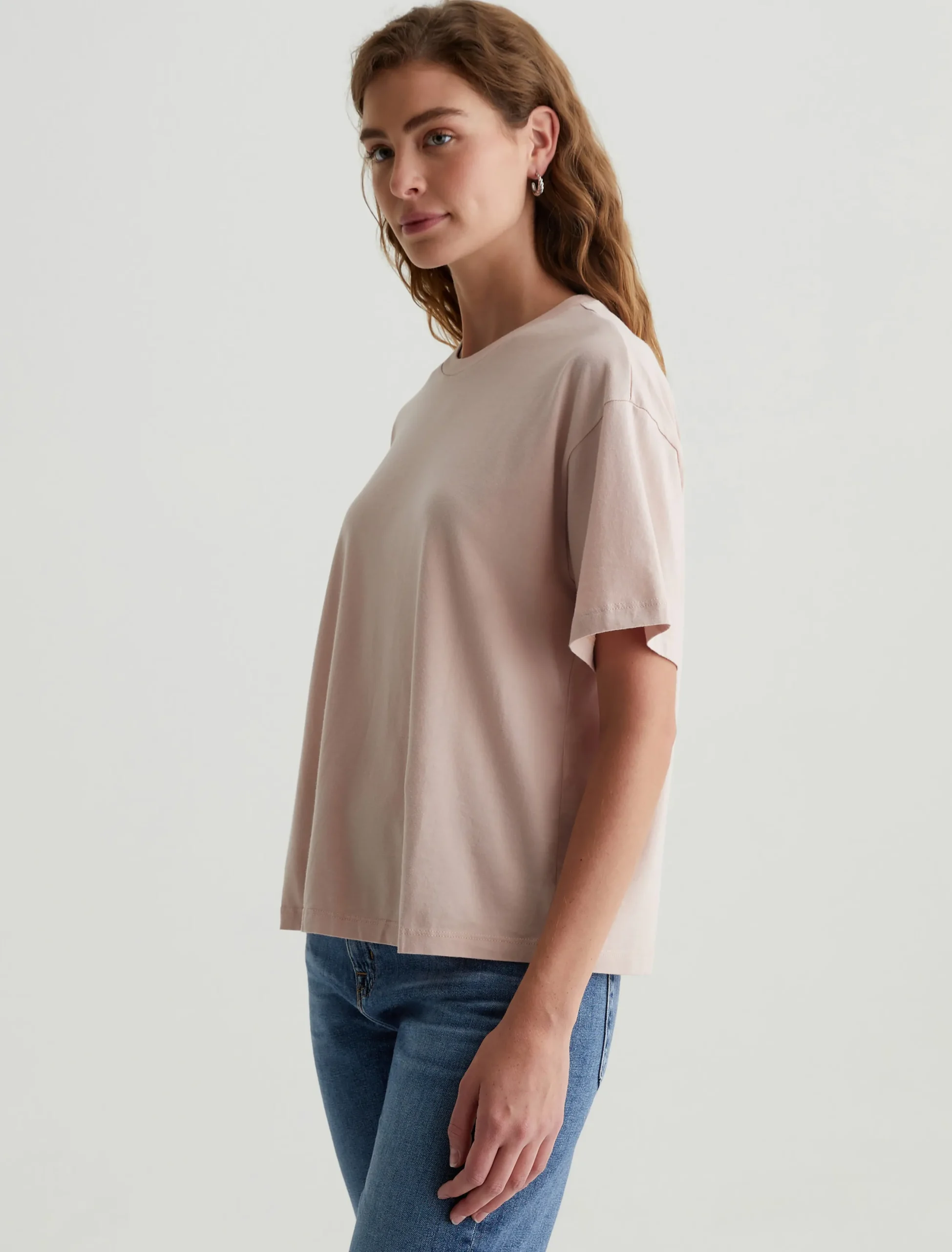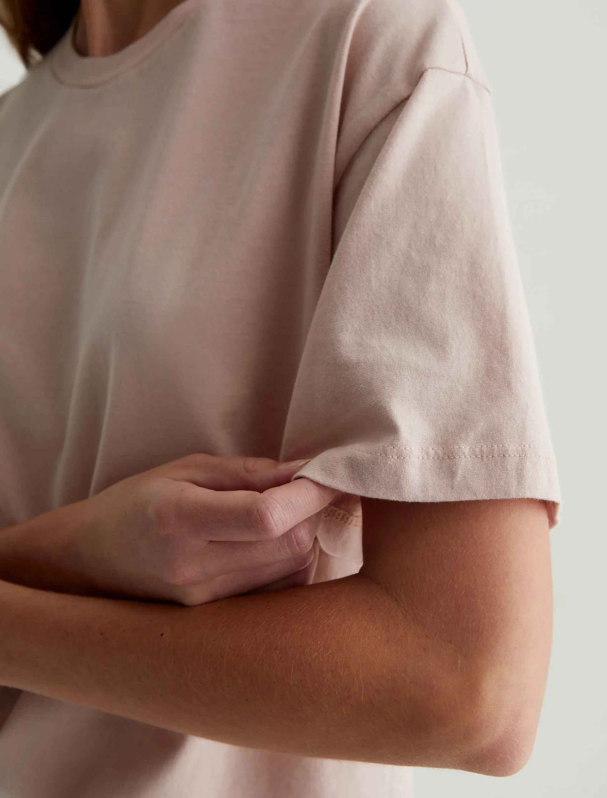 The Karter Ex-Boyfriend S/S Crew in vintage pink is our first introduction to a relaxed fit short sleeve crew. Drop shoulders creates a modern, oversized take on the “borrowed from your boyfriend” look. Our Jersey Knit offers a luxurious comfort that is unrivaled—knitted with both S-twist and Z-twist yarn to sustain longevity and stability, preventing unnecessary twisting and torquing. During the production process, the S-twist yarn is spun counter-clockwise creating a right-handed twill. The Z-twist yarn works in opposition, spinning clockwise for a left-handed twill. This opposition—when working together—yields a softer, more durable fabrication and gives strength to the yarn making it more difficult to pull apart. Designed in 100% Cotton.