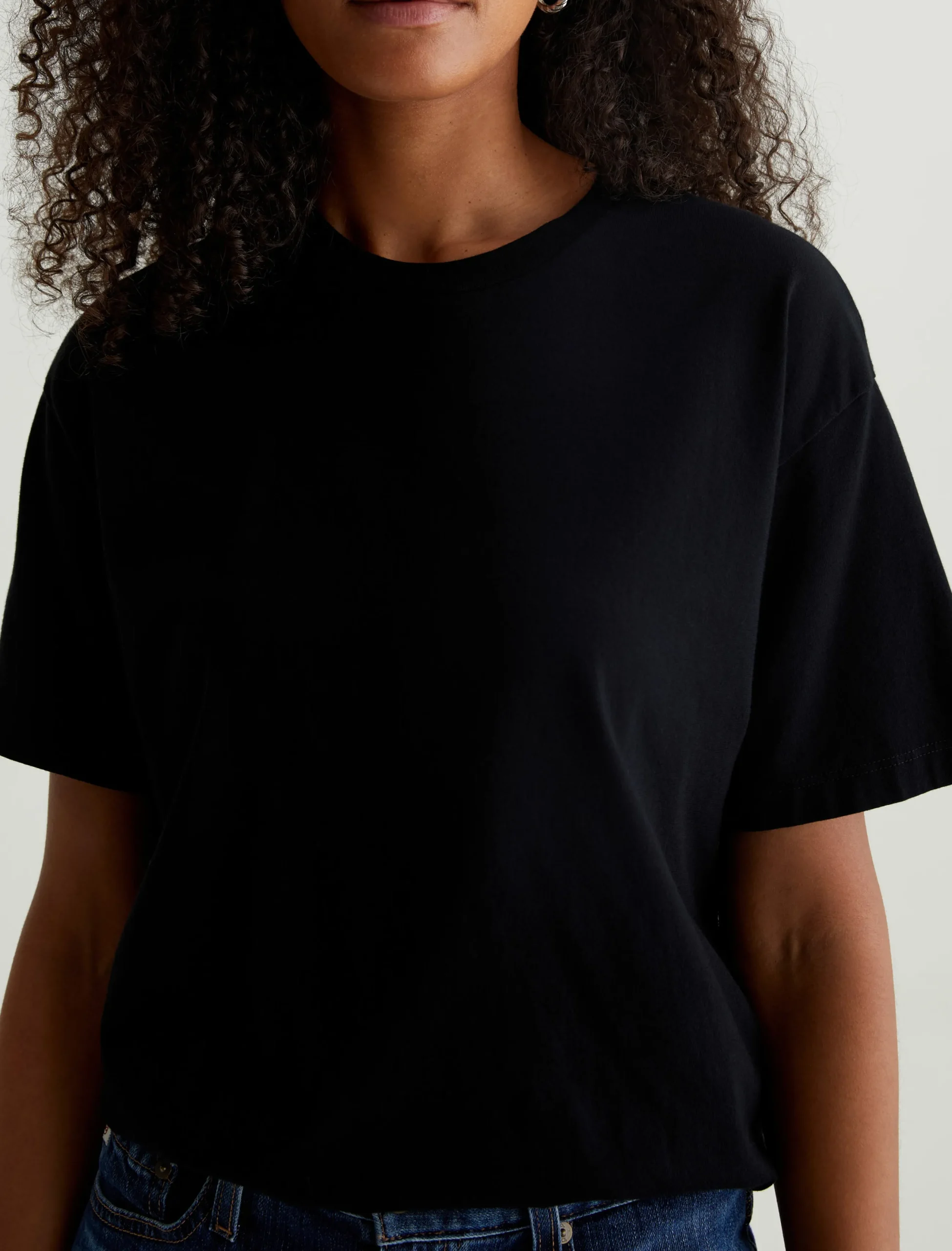 The Karter Ex-Boyfriend S/S Crew in black is our first introduction to a relaxed fit short sleeve crew. Drop shoulders creates a modern, oversized take on the “borrowed from your boyfriend” look. Our Jersey Knit offers a luxurious comfort that is unrivaled—knitted with both S-twist and Z-twist yarn to sustain longevity and stability, preventing unnecessary twisting and torquing. During the production process, the S-twist yarn is spun counter-clockwise creating a right-handed twill. The Z-twist yarn works in opposition, spinning clockwise for a left-handed twill. This opposition—when working together—yields a softer, more durable fabrication and gives strength to the yarn making it more difficult to pull apart. Designed in 100% Cotton.