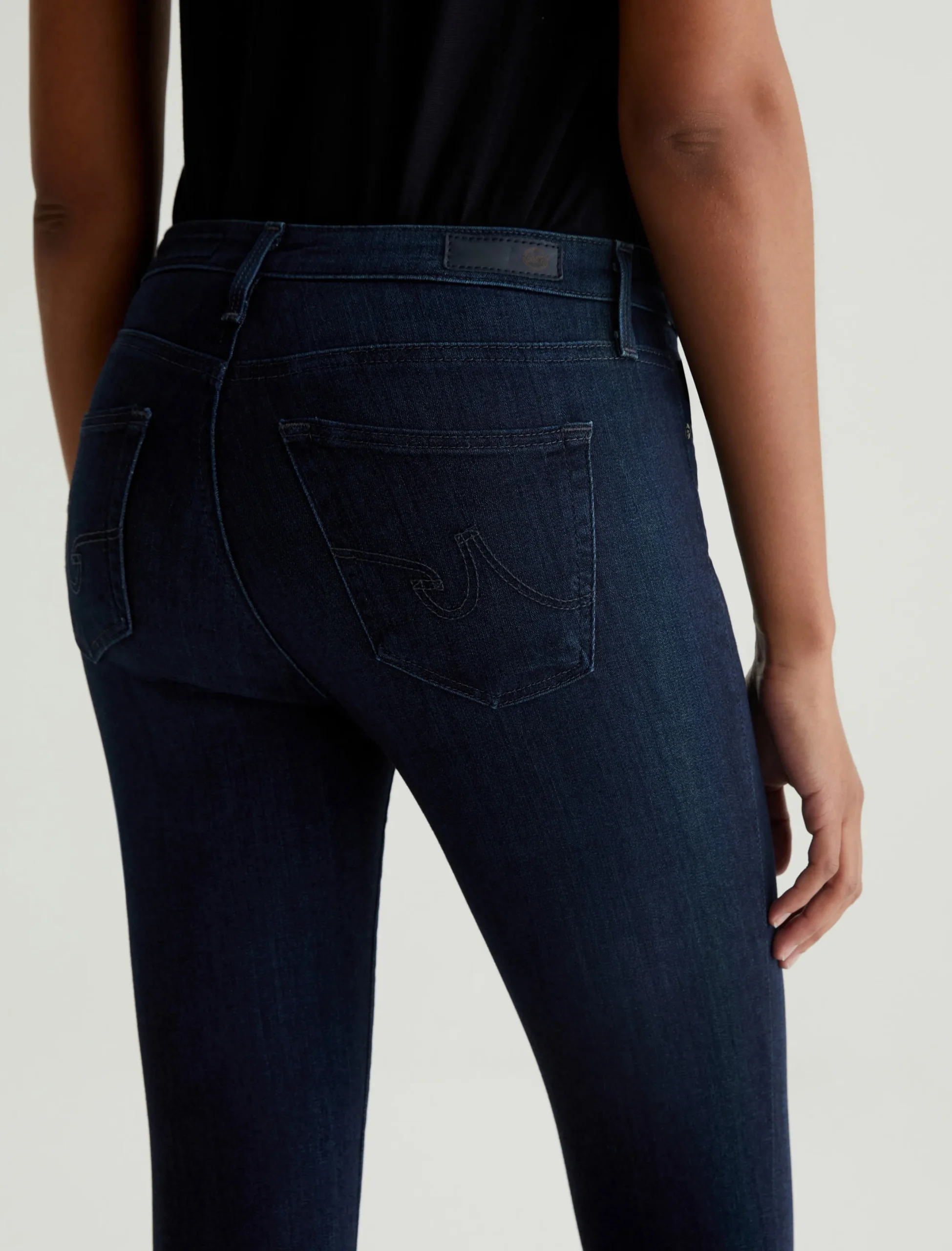 The Legging Ankle is a super skinny women’s jean featuring a dark blue wash with fading and whiskering. This sleek mid-rise silhouette contours the body from hip to hem and is cropped at the ankle. This women’s super skinny jean features 10.5 oz. Superior Stretch Denim for a flattering and comfortable fit.