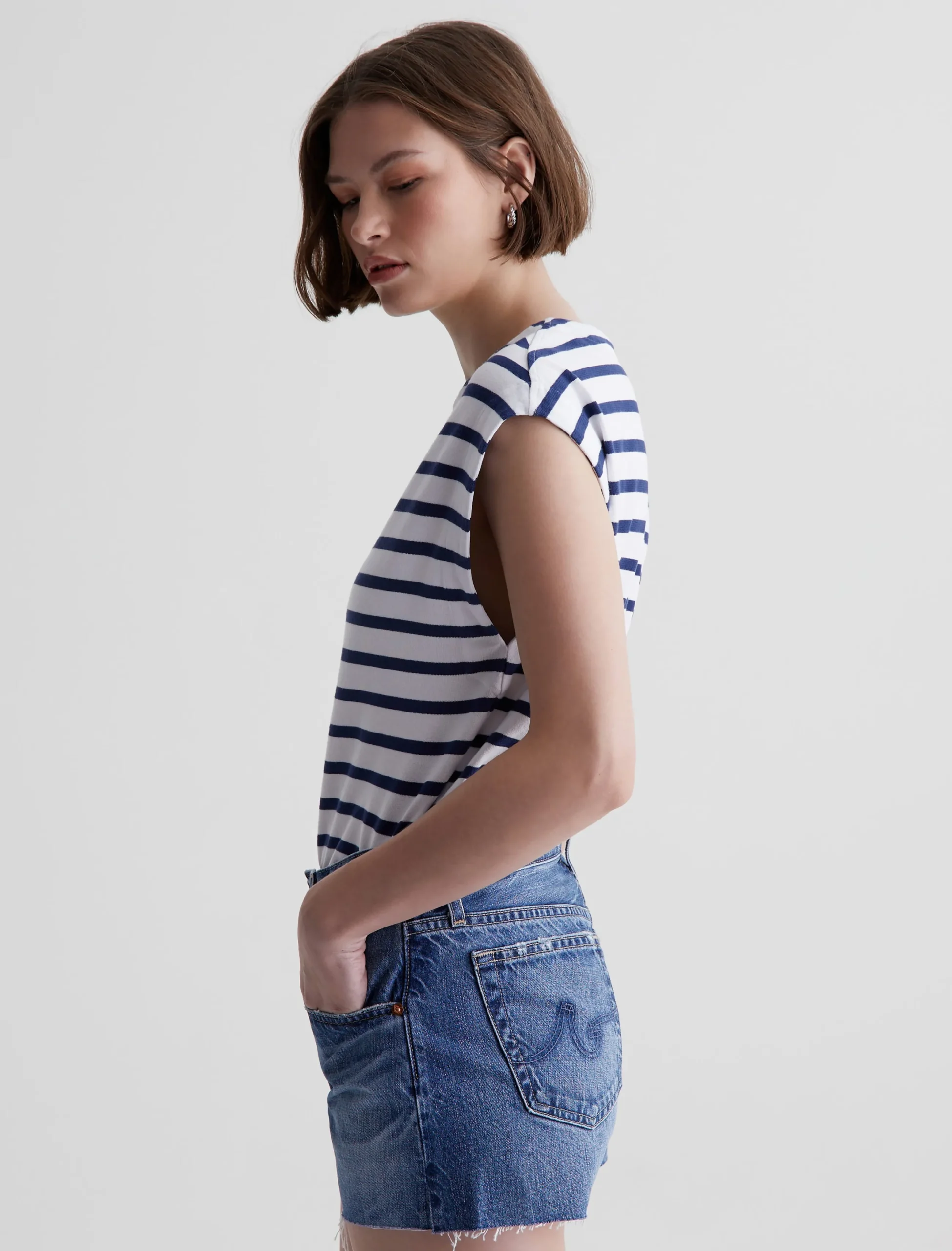 Crafted from striped cotton jersey, the Lyra muscle tank is designed with a crew neckline and a relaxed, easy shape. An effortless base layer to wear with denim, crisp white pants, or your favorite shorts.