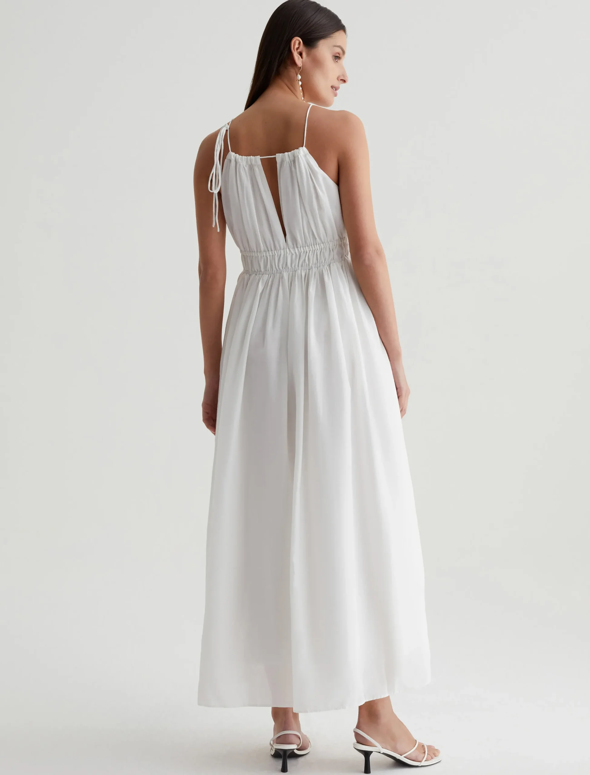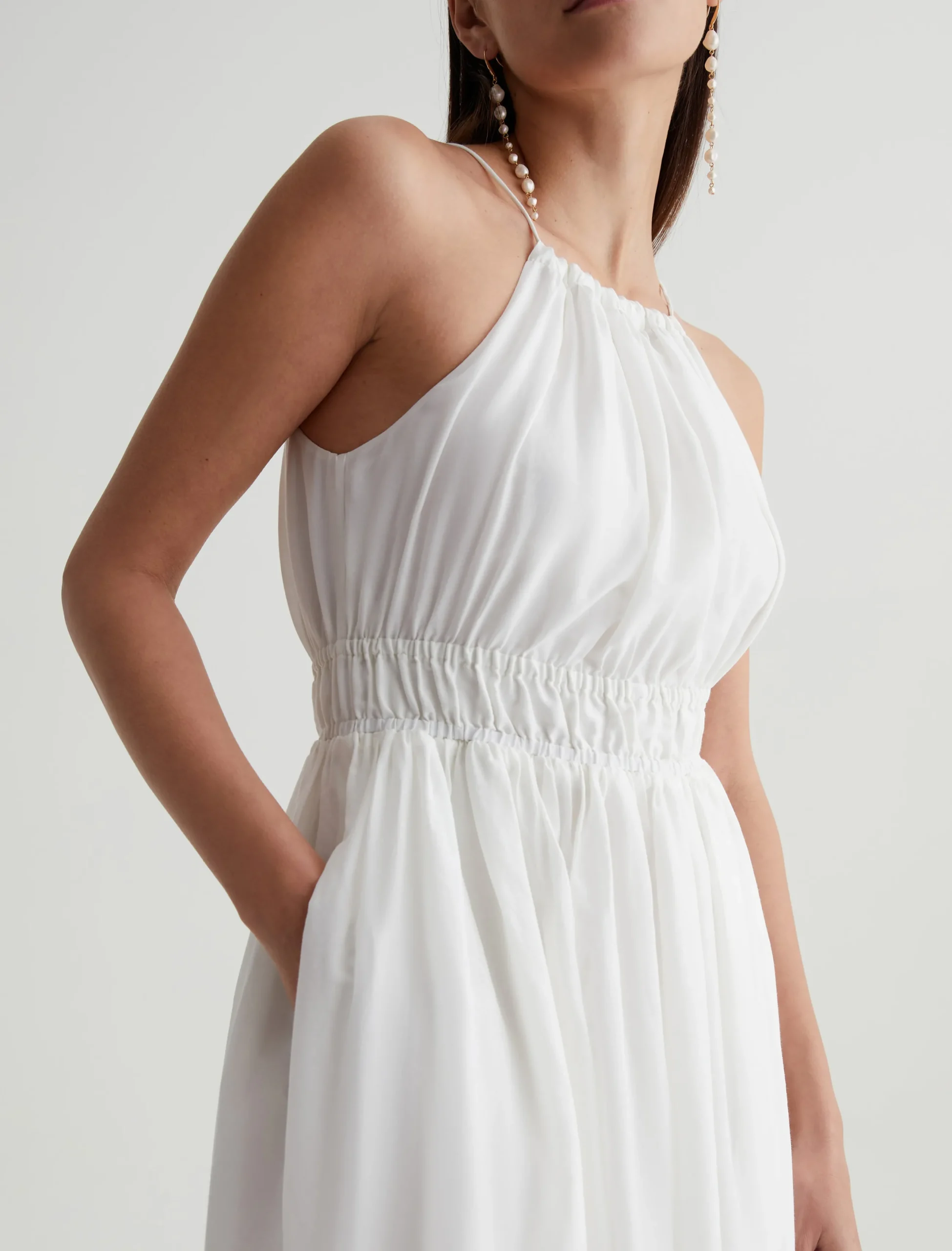 The Maelle Dress floats through the season in airy voile of cotton and silk. Flowy and feminine, this powder-white number features halter styling that’s threaded with dainty ties so you can adjust the neckline. It also has a comfortable shirred waist and hidden hip pockets before falling to a long, breezy skirt. Perfect for summer vacations, rooftop dinners, and celebratory occasions.