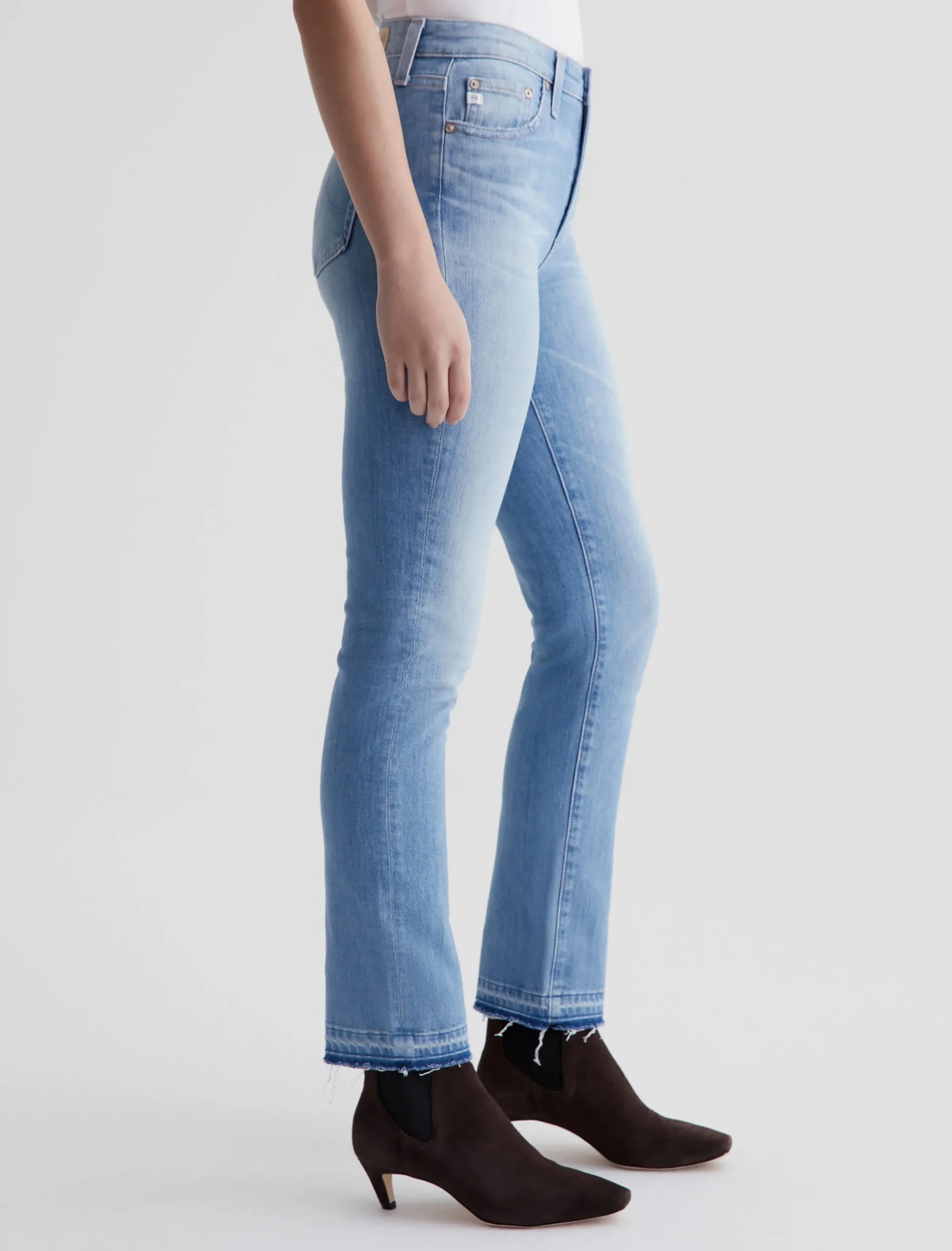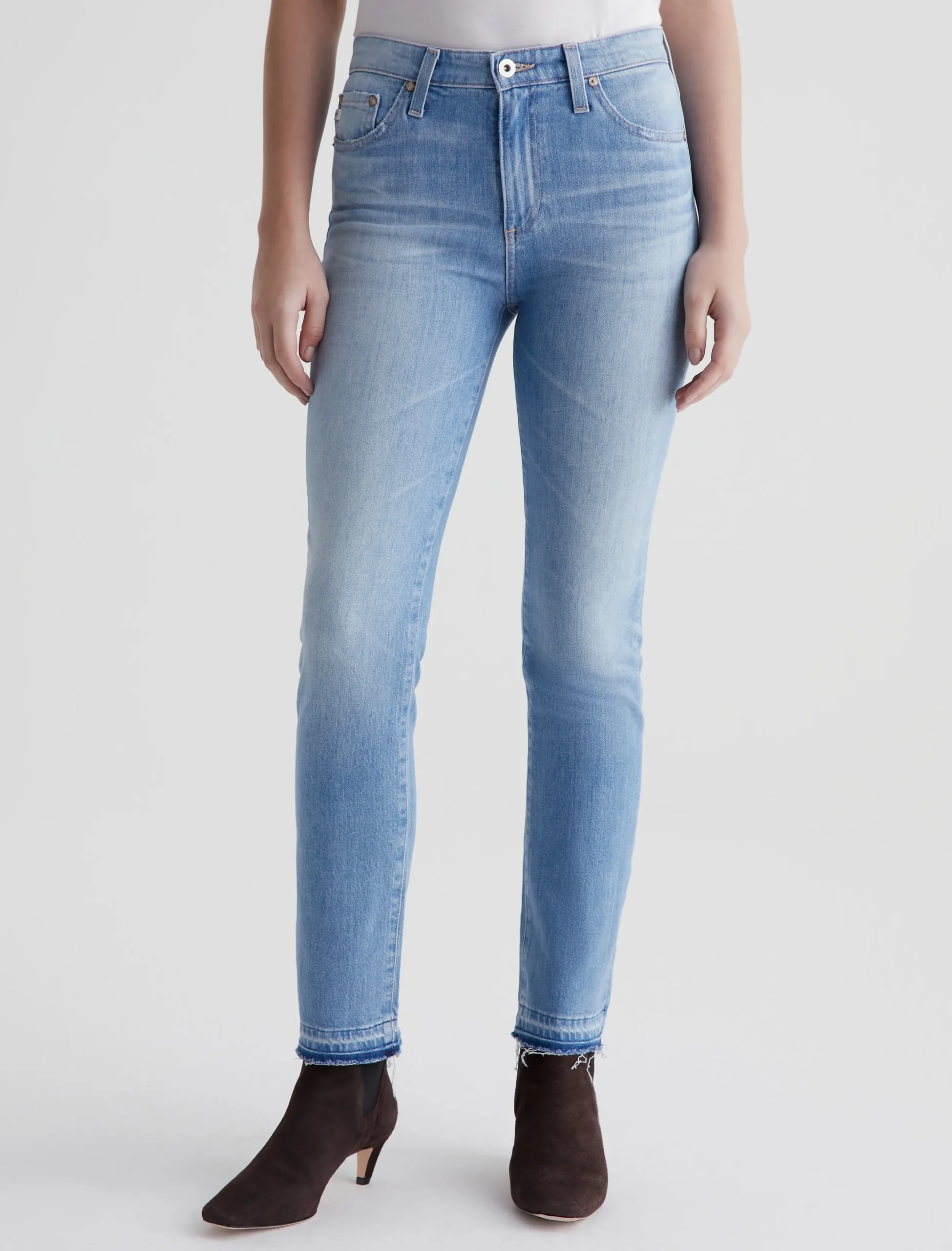 Mari is a mid-rise slim straight jean featuring a light, faded wash and let-down hems. Made from stretch-blend 11 oz. Journey Denim, these high-waisted jeans fit easy around the hips and have straight-leg silhouette that slims down at the leg openings.