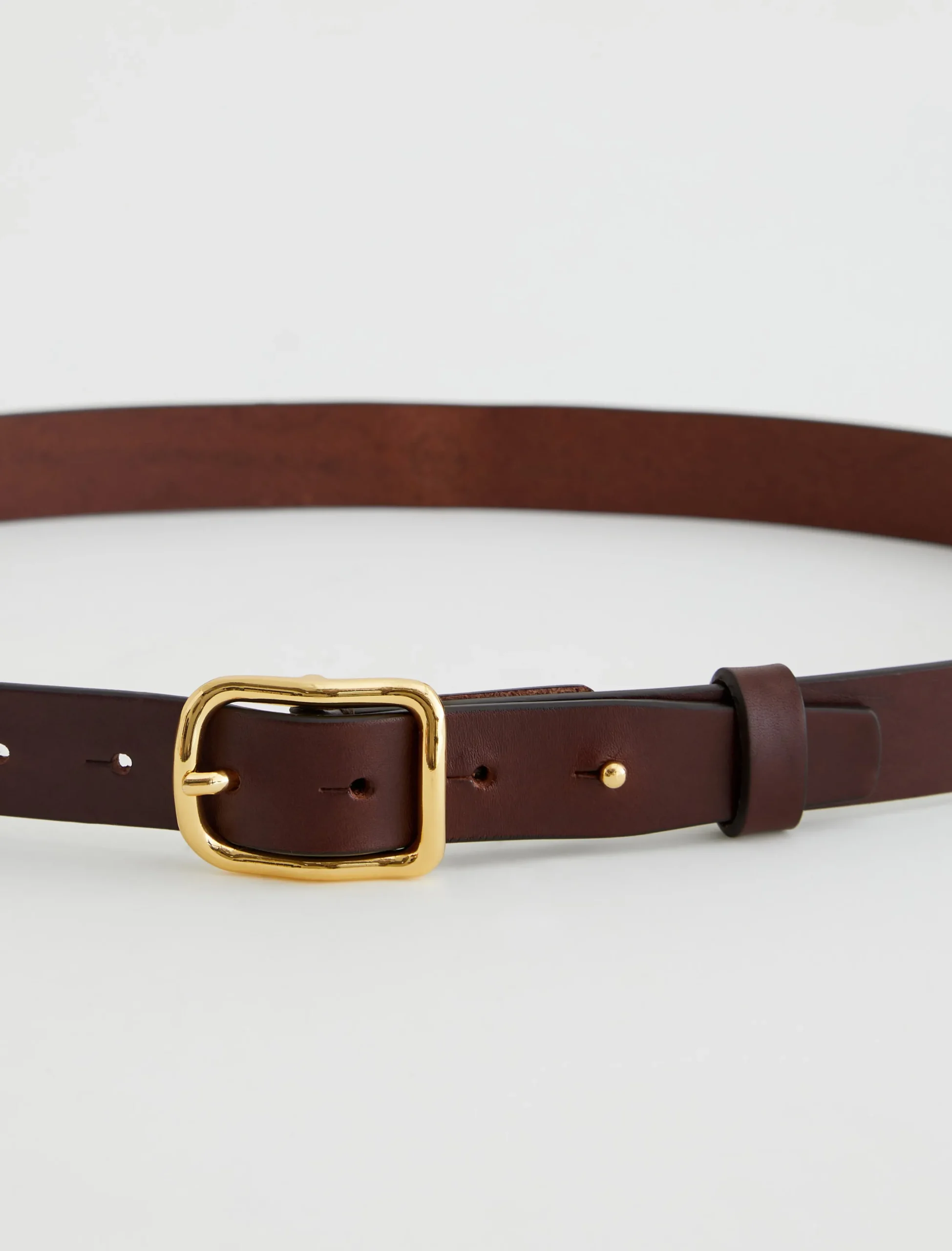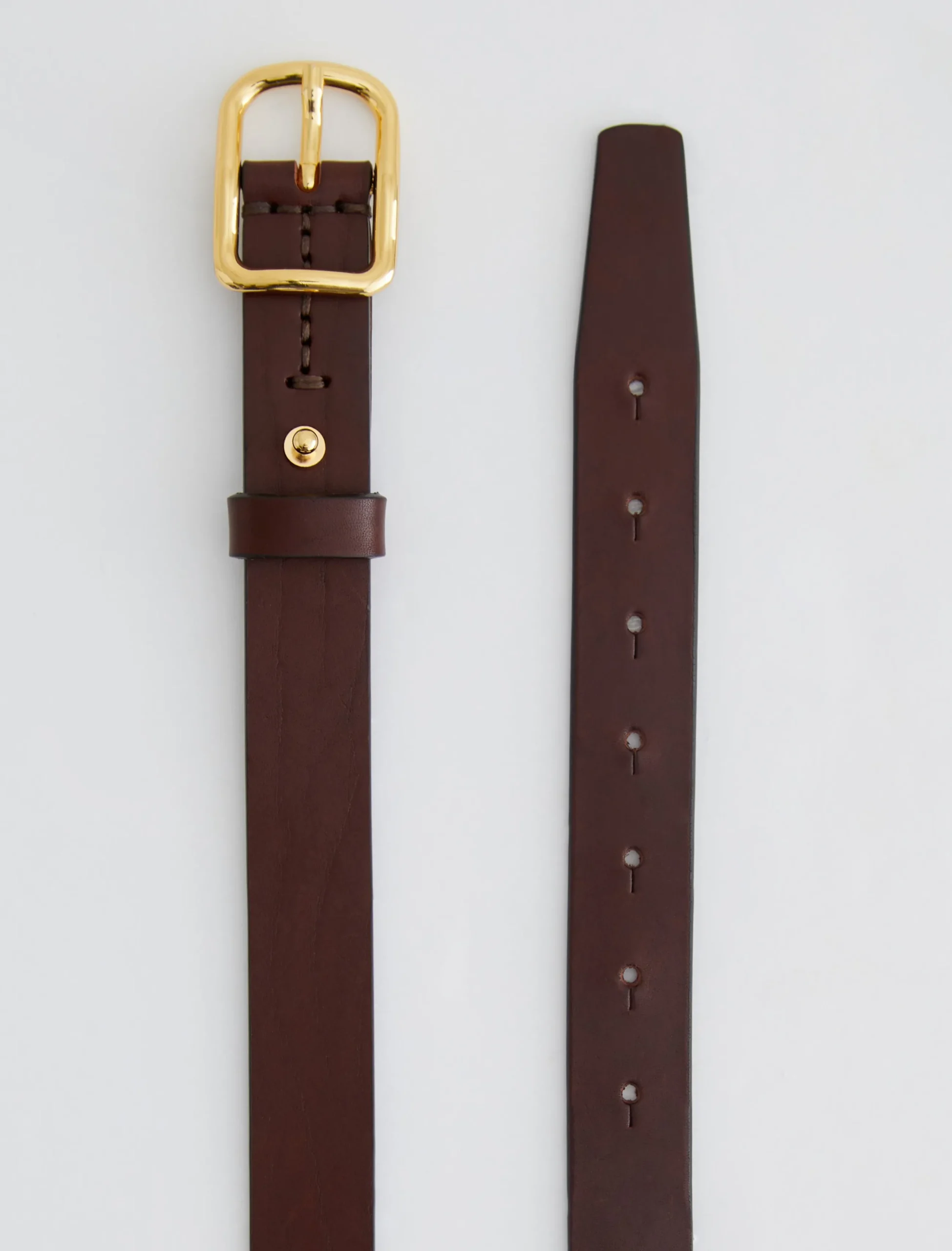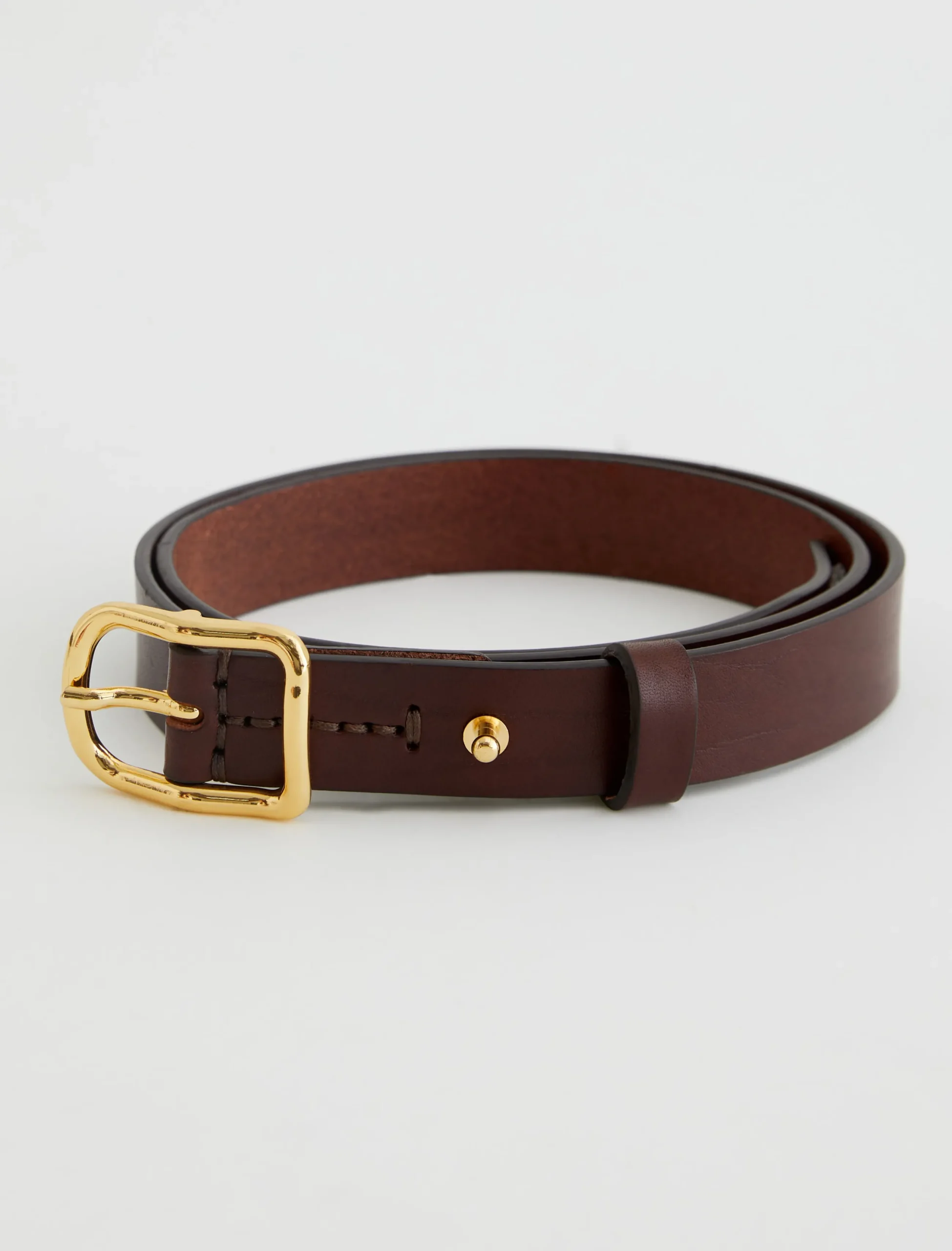 A slim style cut from supple Italian leather, the Marisol women’s belt is a timeless finishing touch to your outfits. It’s done here in brown and fastened by a gold-tone buckle with an anchored stud.