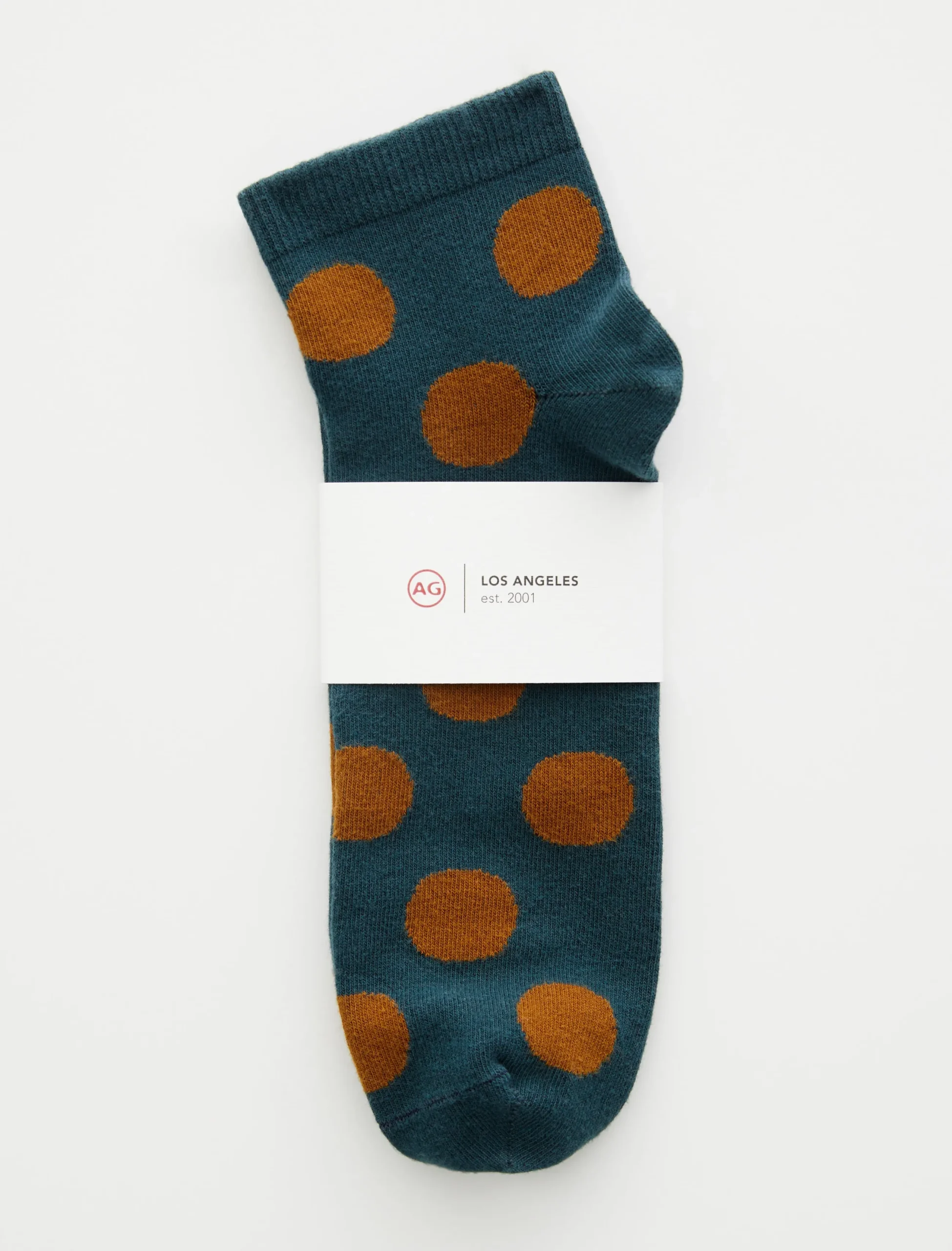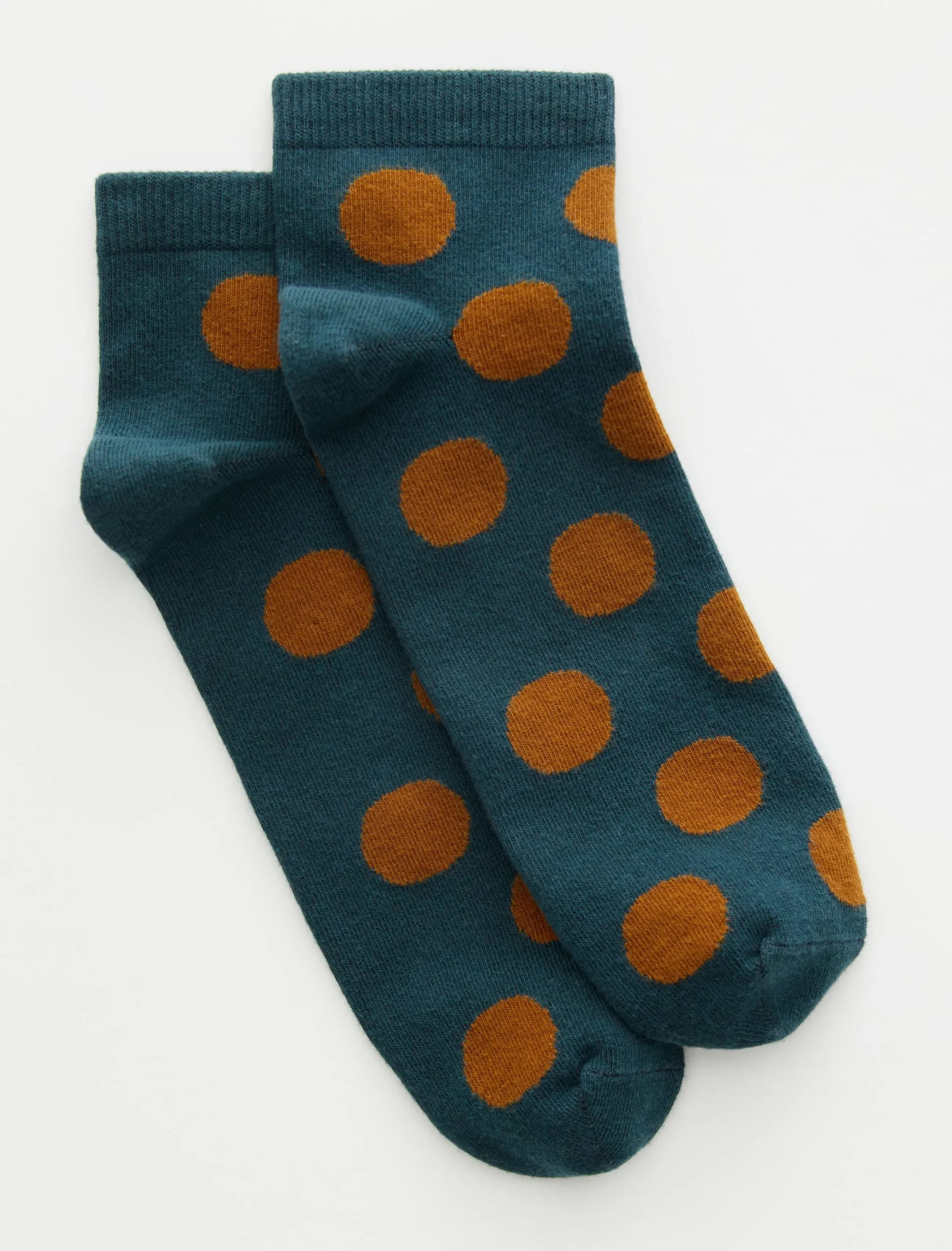 This sock is our classic one quarter sock. Featuring a dot pattern, this pair has been knitted from a comfortable cotton blend and ribbed through the ankles.