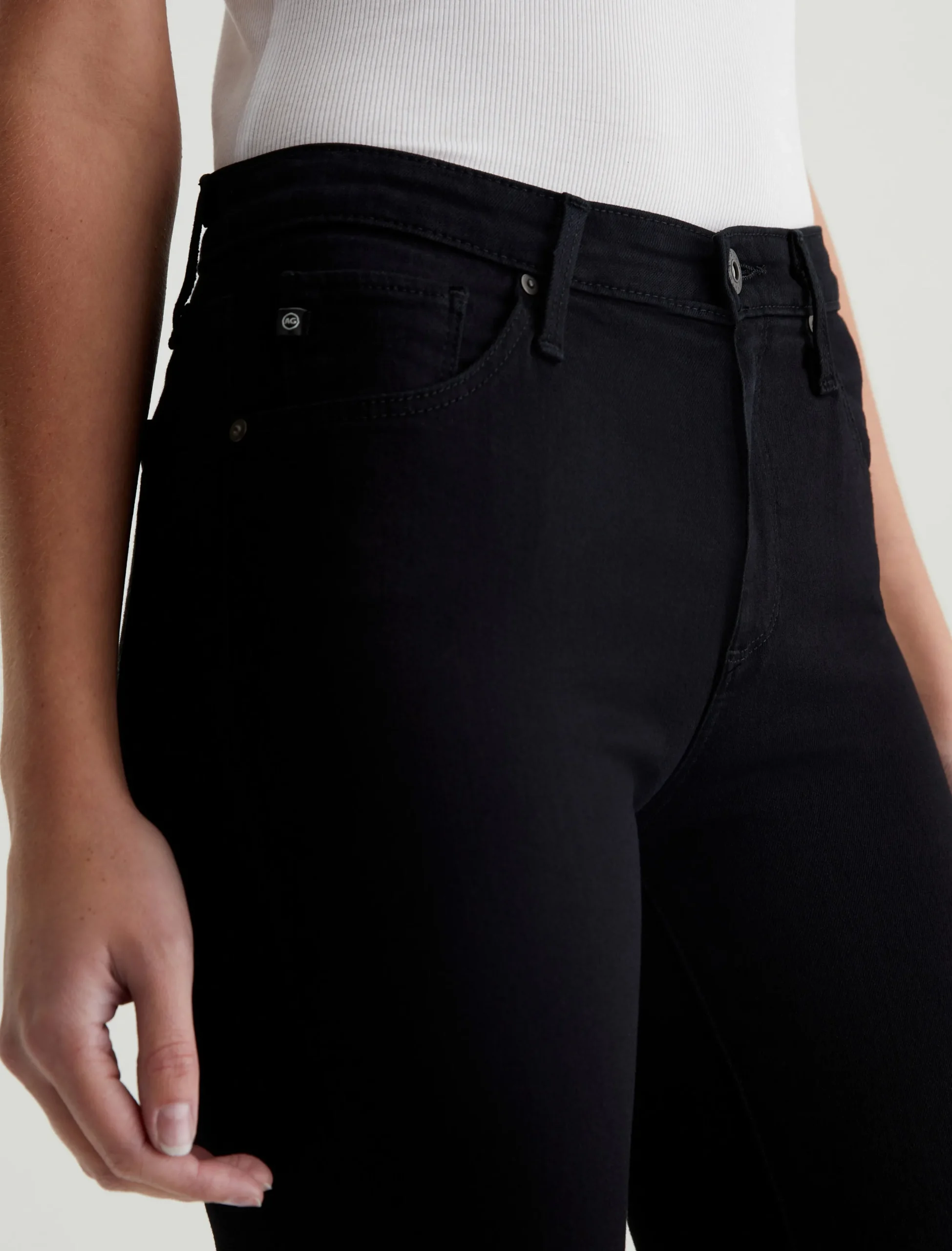 Prima is a mid-rise cigarette jean featuring a saturated black shade and tonal details. This jean has a fitted silhouette through the hips and slight tapering at the leg, designed in 10 oz. Superior Stretch Black Denim.